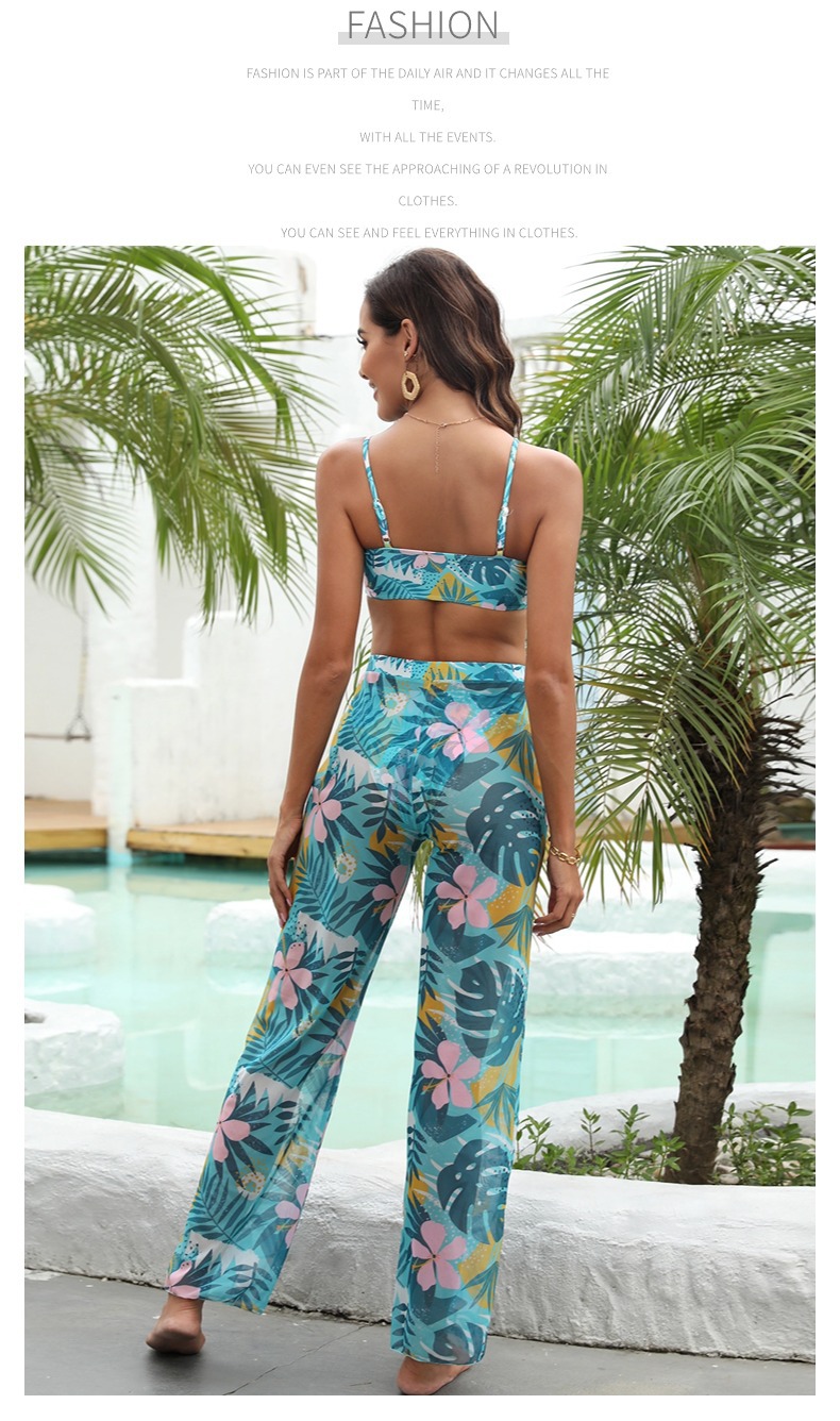 여성용 수영복, 튜브탑, 플랜트 프린트, 비키니 3피스, 여성용 스포츠 스타일, 고탄력, 편안함