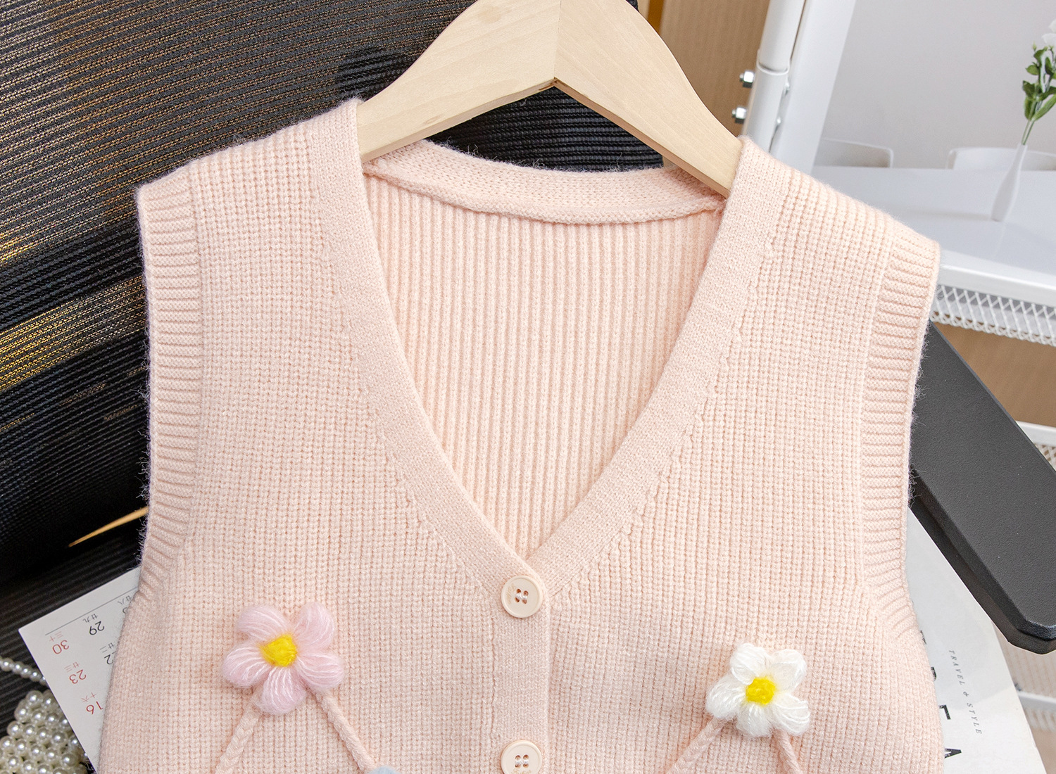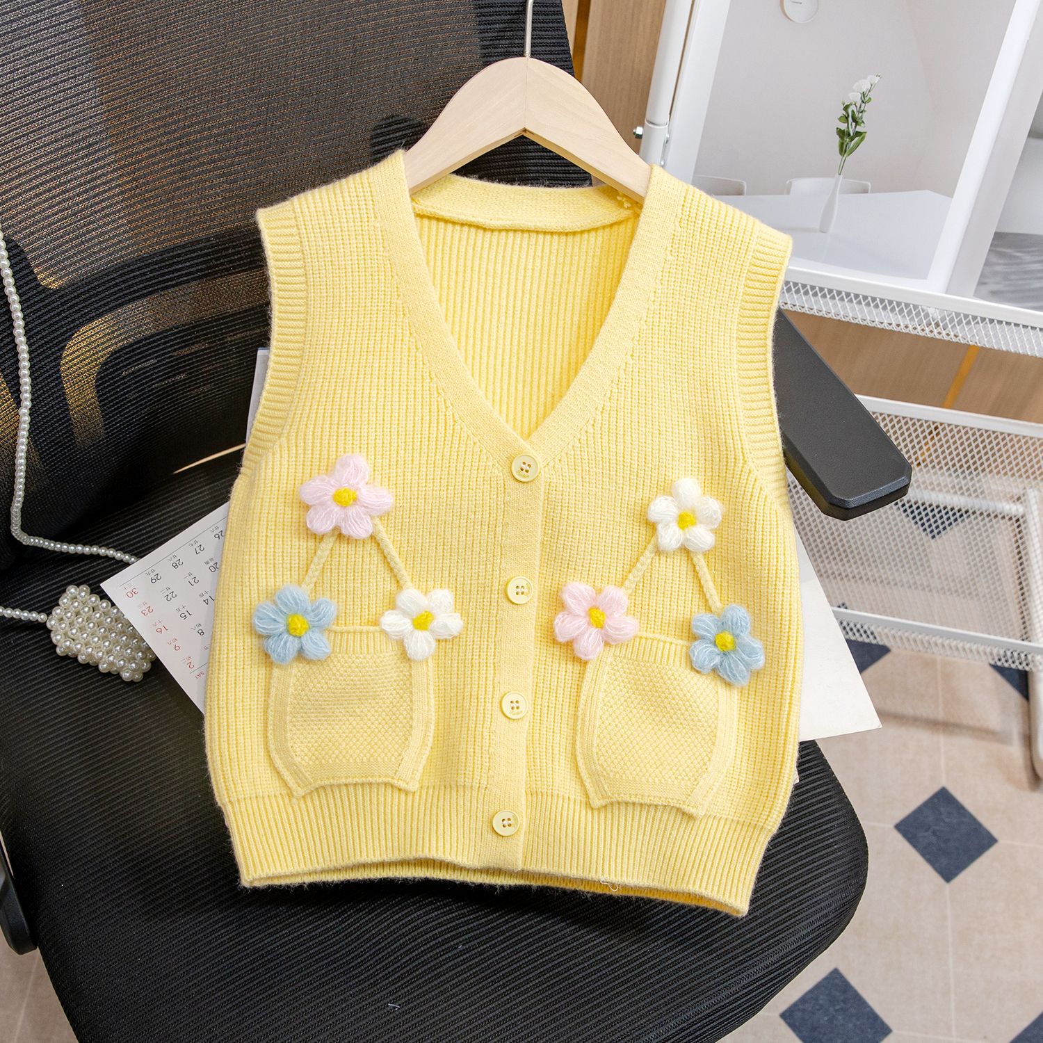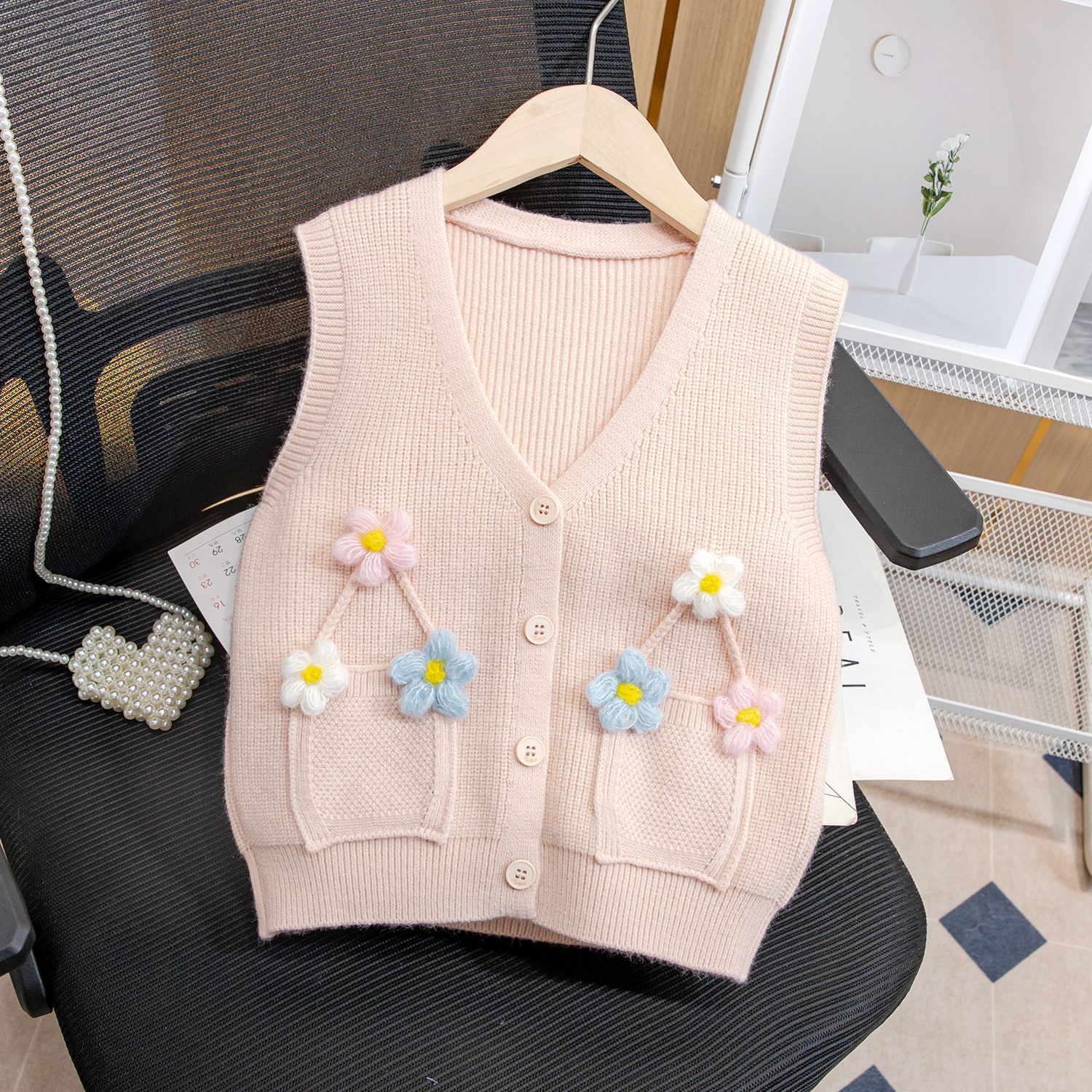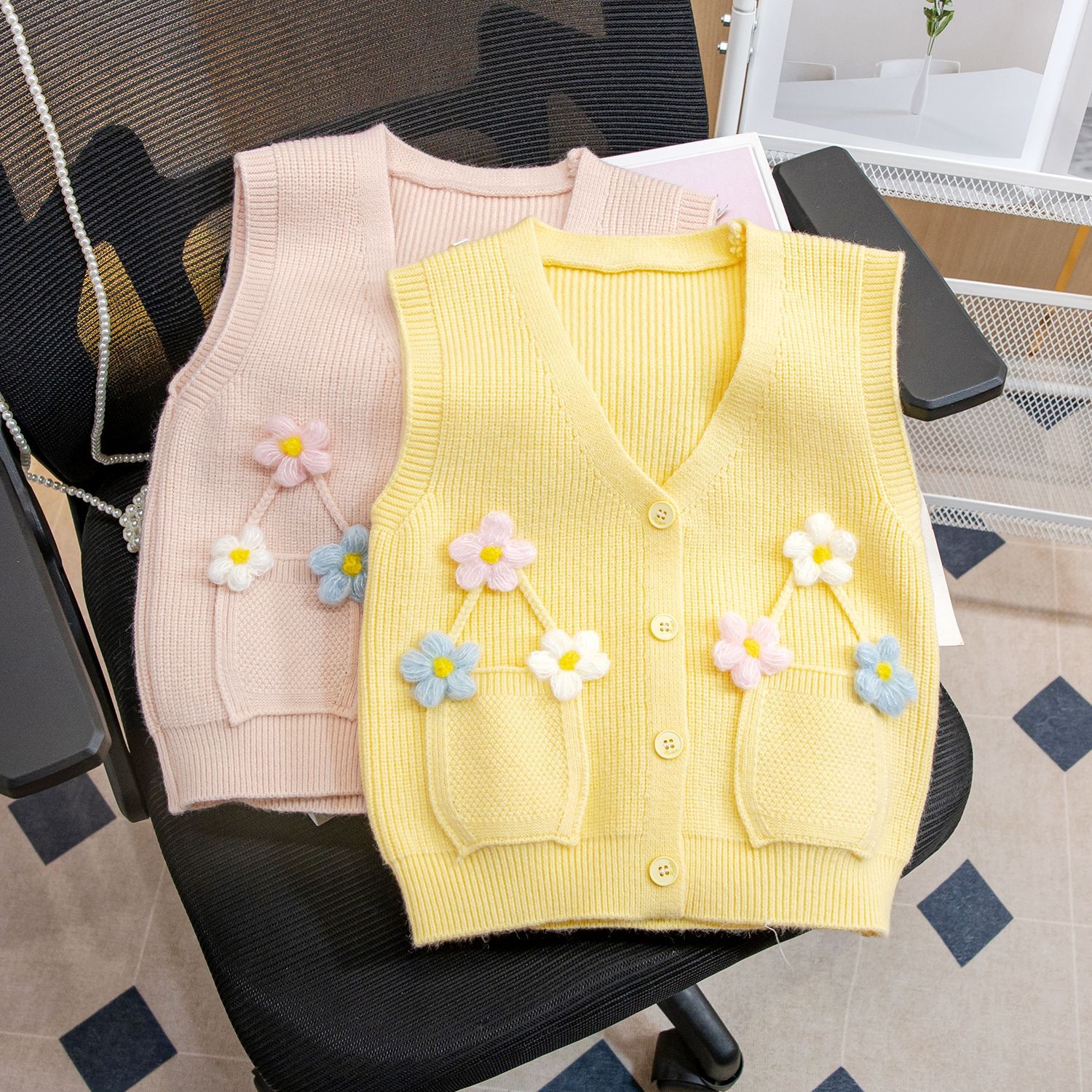어린이 가디건 조끼 여아 새로운 봄과 가을 의류 아기 소녀의 조끼 탑 입체 꽃 스웨터 유행스토어 가기