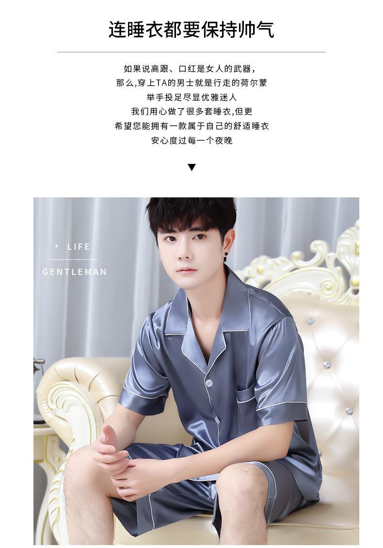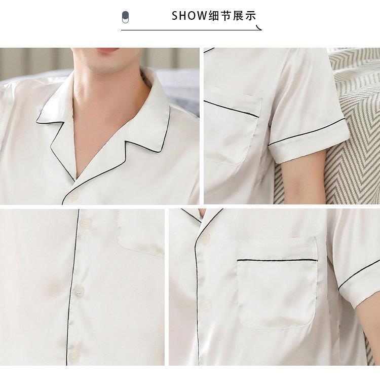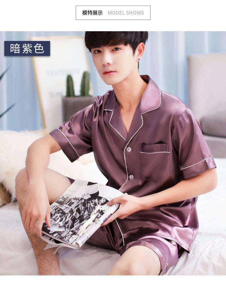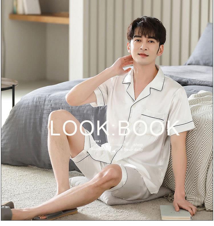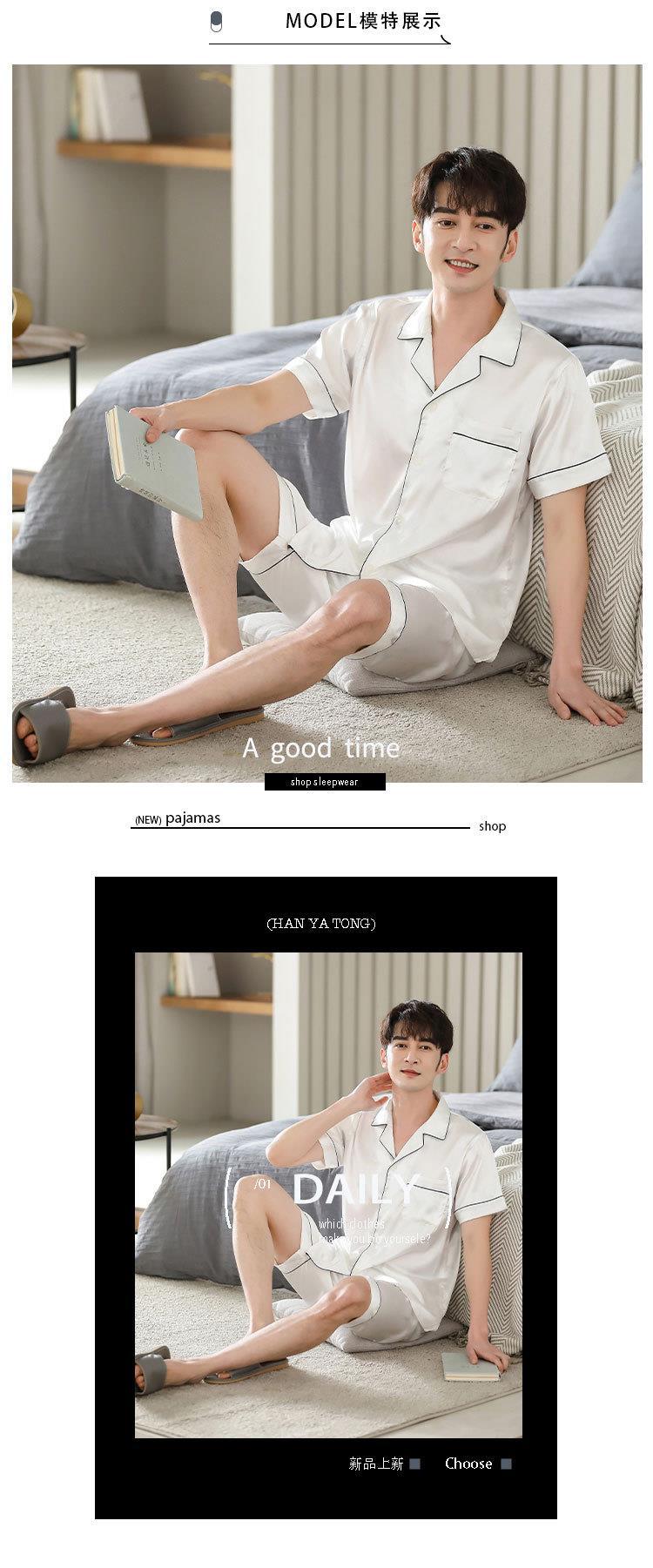 남자의 한국식 심플 실크 반팔 잠옷 여름 얇은 하이 퀄리티 슬릿 플러스 사이즈 청소년 세트스토어 가기