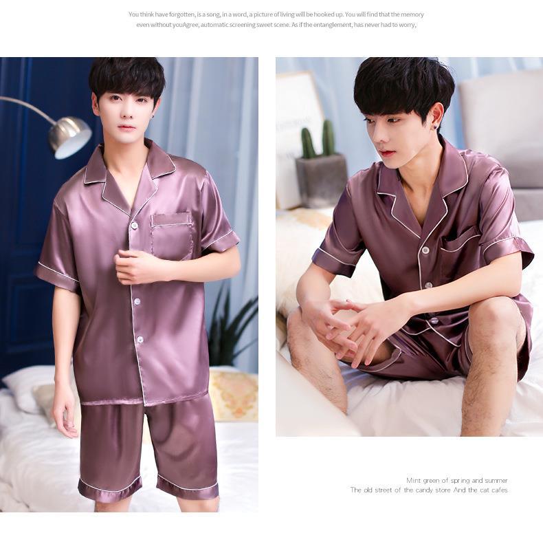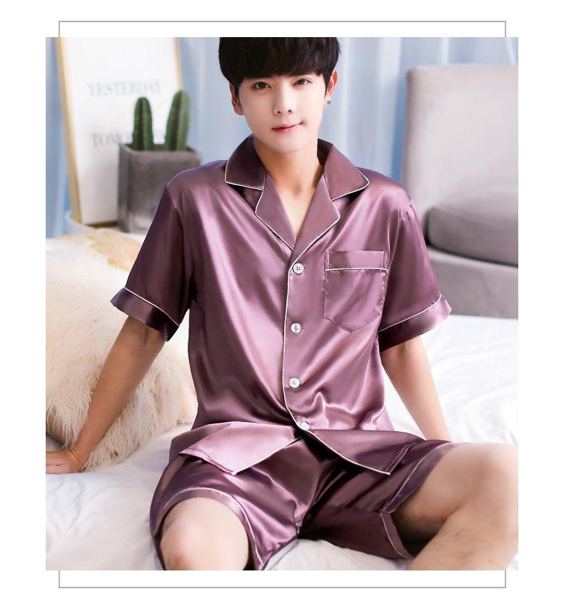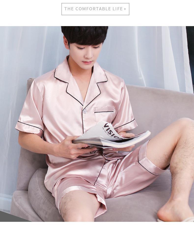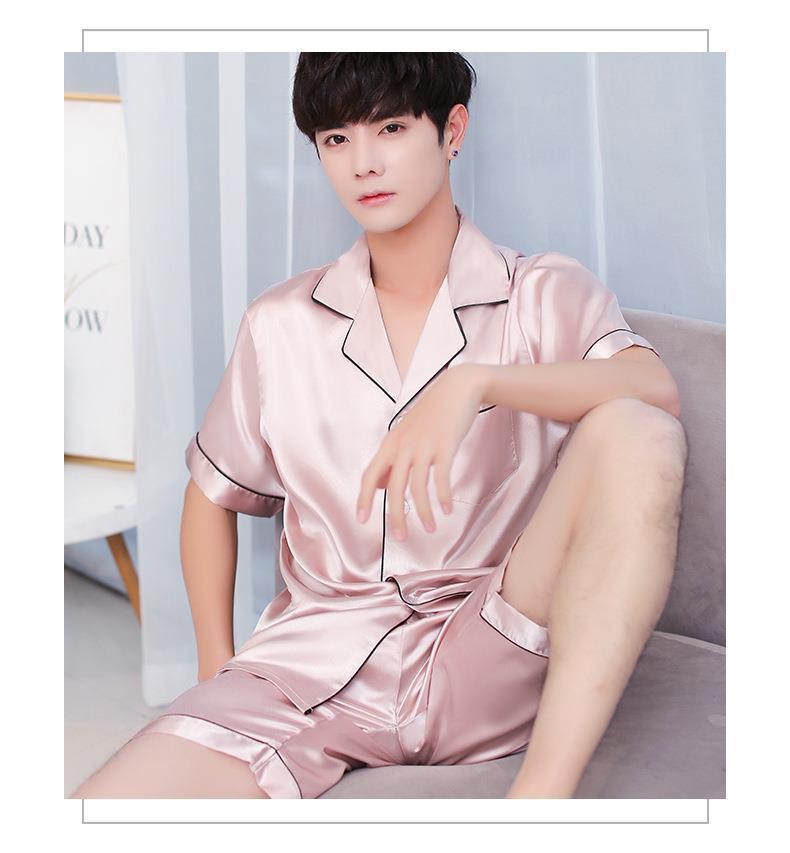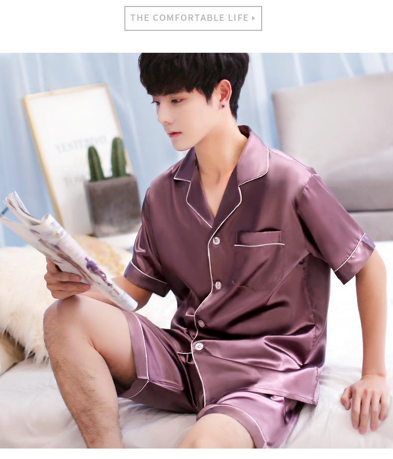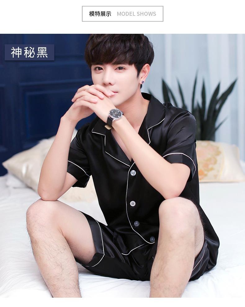 남자의 한국식 심플 실크 반팔 잠옷 여름 얇은 하이 퀄리티 슬릿 플러스 사이즈 청소년 세트스토어 가기