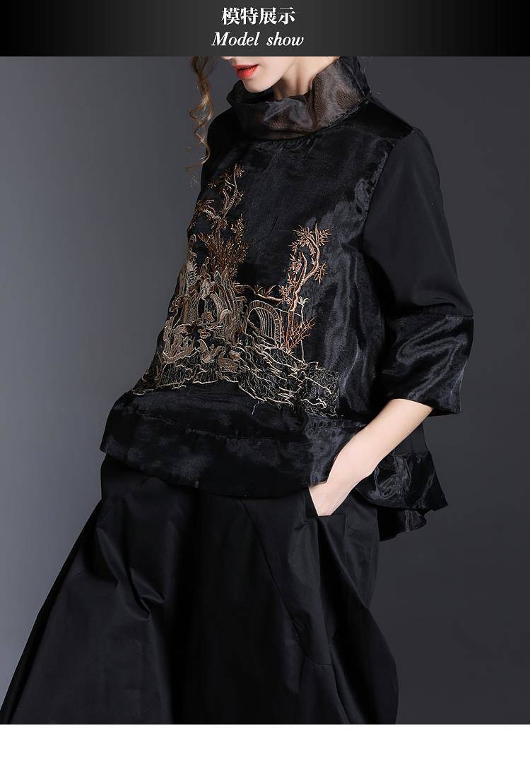 대외 무역 수출 이탈리아 꼬리 주문 원래 주문 철수 캐비닛 남은 주문 유럽 상품 organza 스탠드 칼라 수 놓은 쉬폰 셔츠 탑