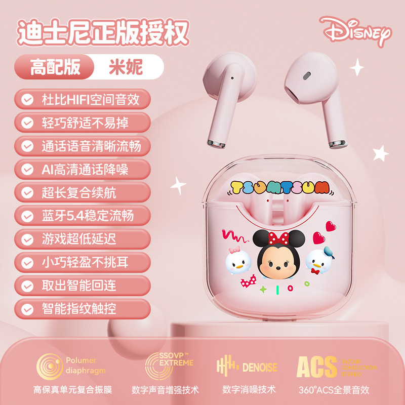 2025년 신형 디즈니 블루투스 이어폰, 매우 긴 배터리 수명, 멋진 디자인, 야외 스포츠 및 게임용 이어폰, 귀엽고 컴팩트함