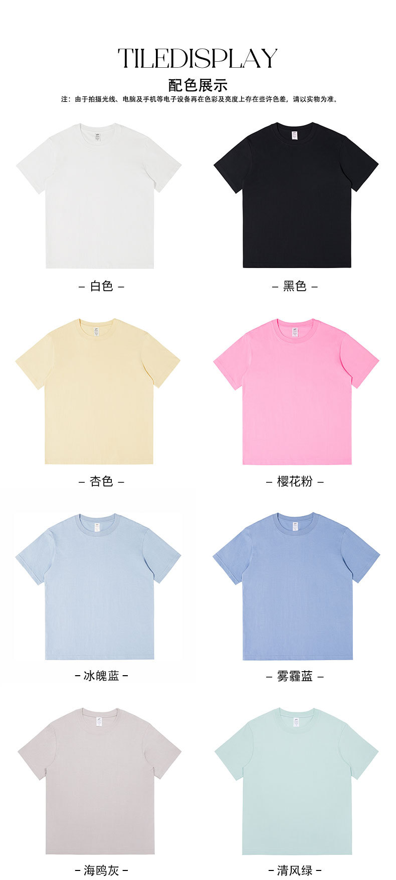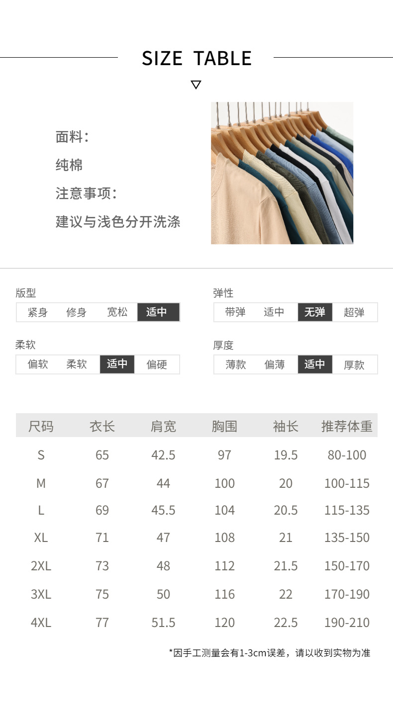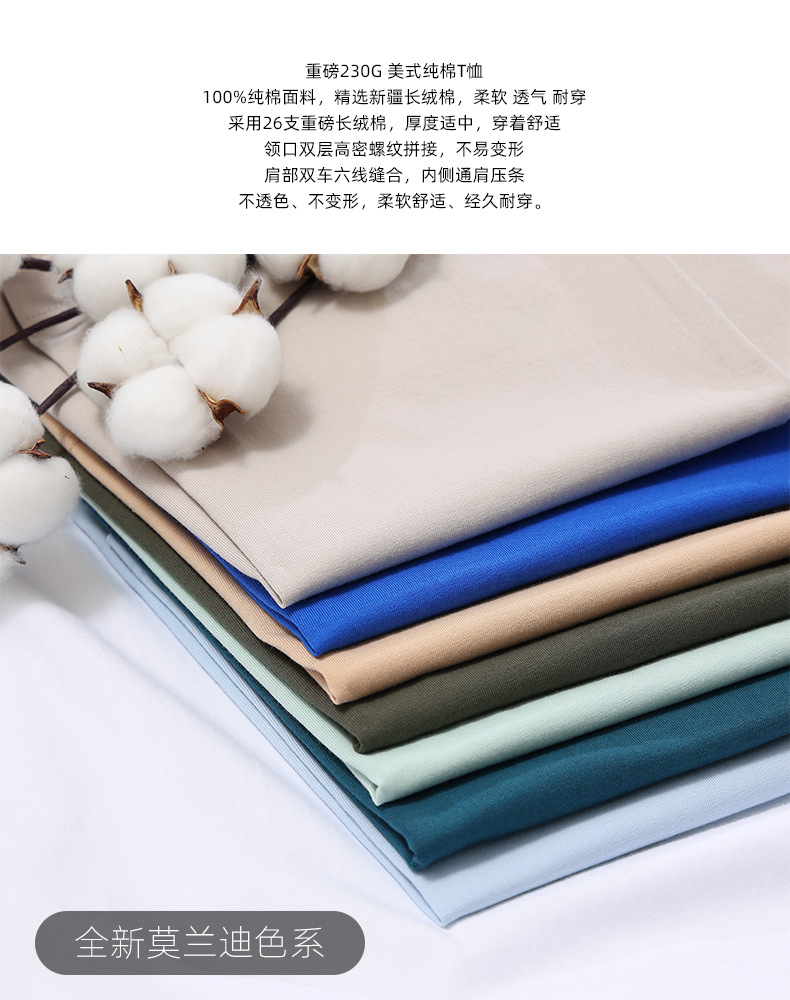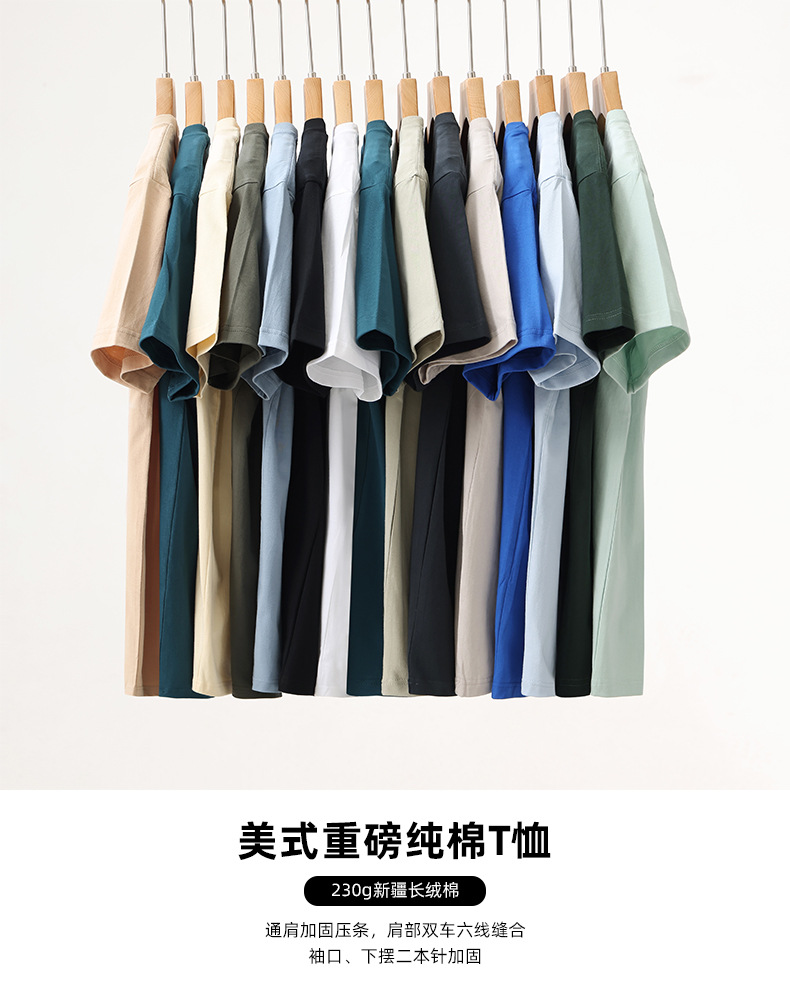 도매 230g 무거운면 반팔 티셔츠 남성용 라운드 넥 느슨한 조커 심플 퓨어 화이트 투 니들 조수 탑스토어 가기