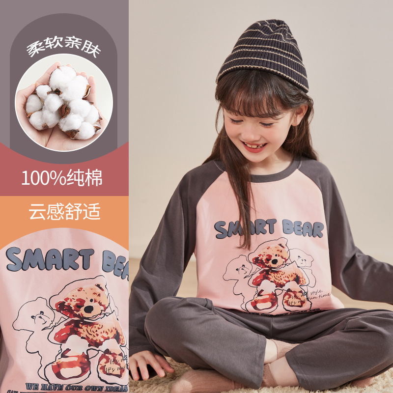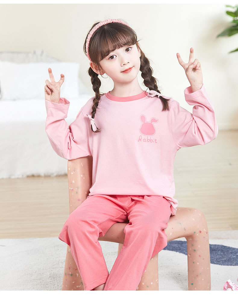 만화 토끼 소녀 잠옷 봄과 가을 클래스 순수한 면화 아동복 긴팔 어린이 가정 옷 세트 어린이를위한 에어컨 옷스토어 가기