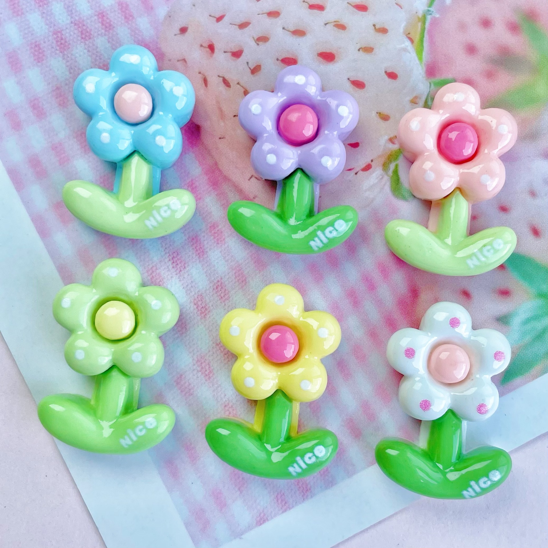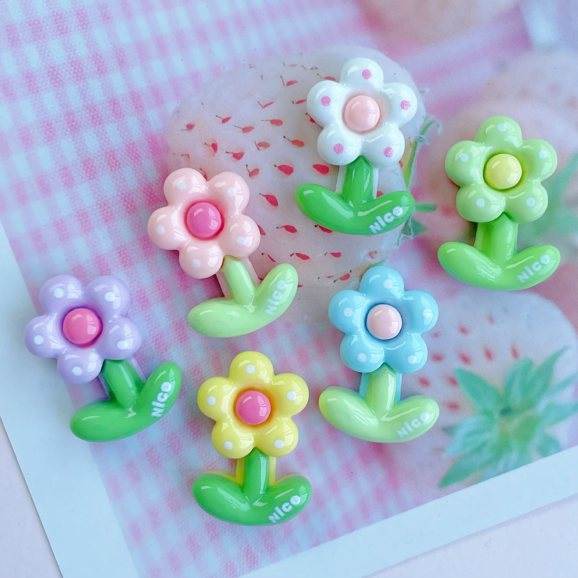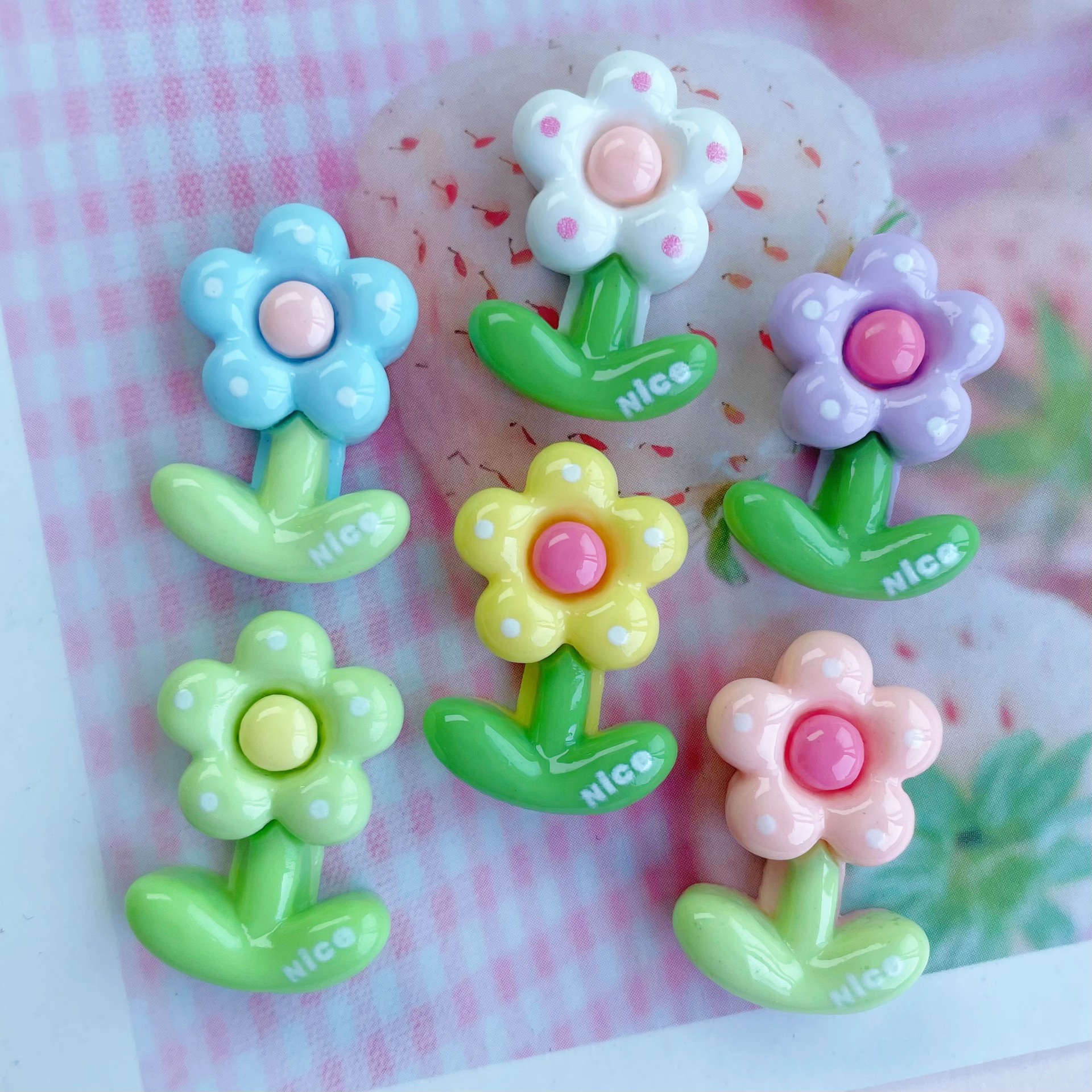 밝은 도트 꽃 수지 DIY 액세서리 크림 젤 전화 케이스 머리핀 영어 좋은 작은 꽃 물 컵 패치스토어 가기