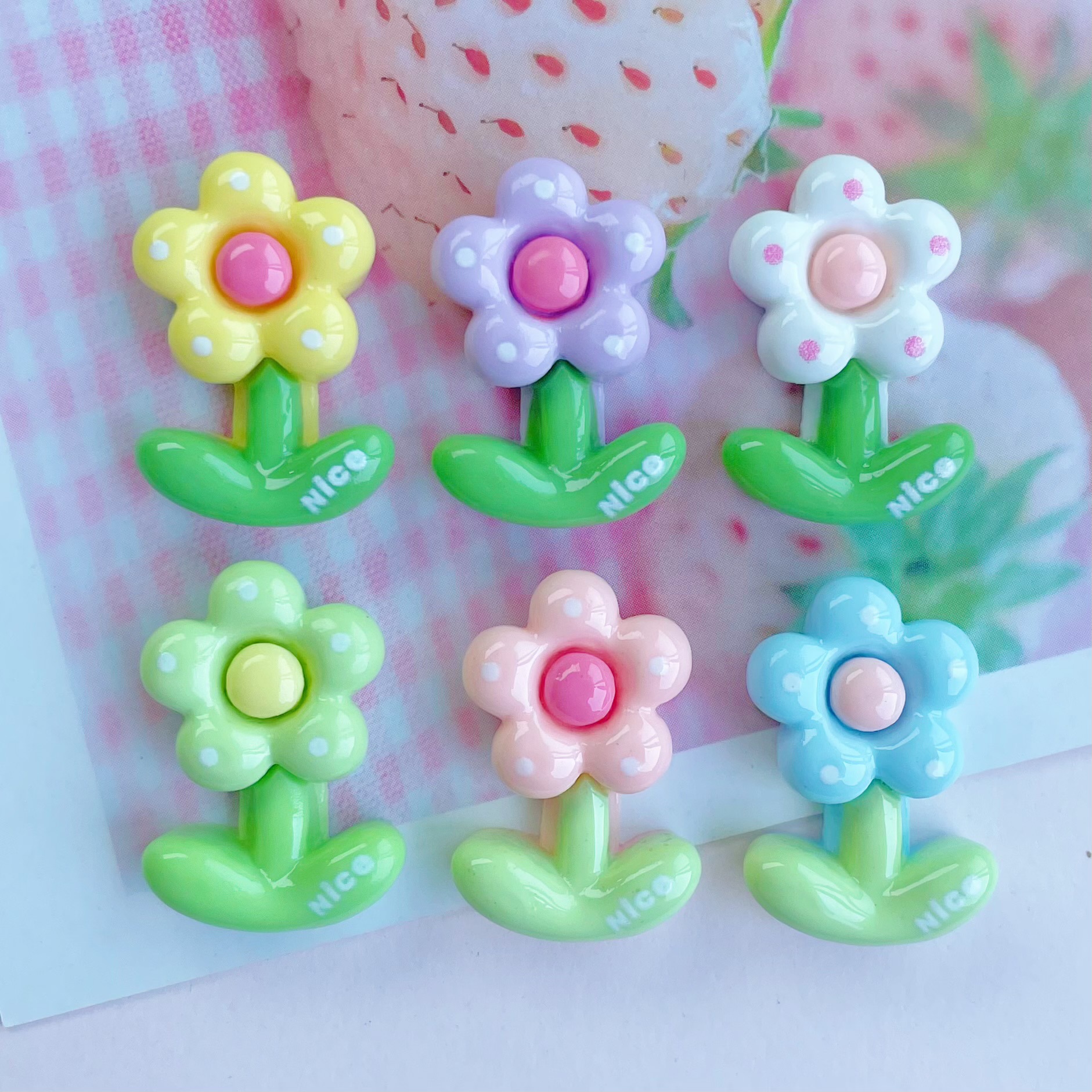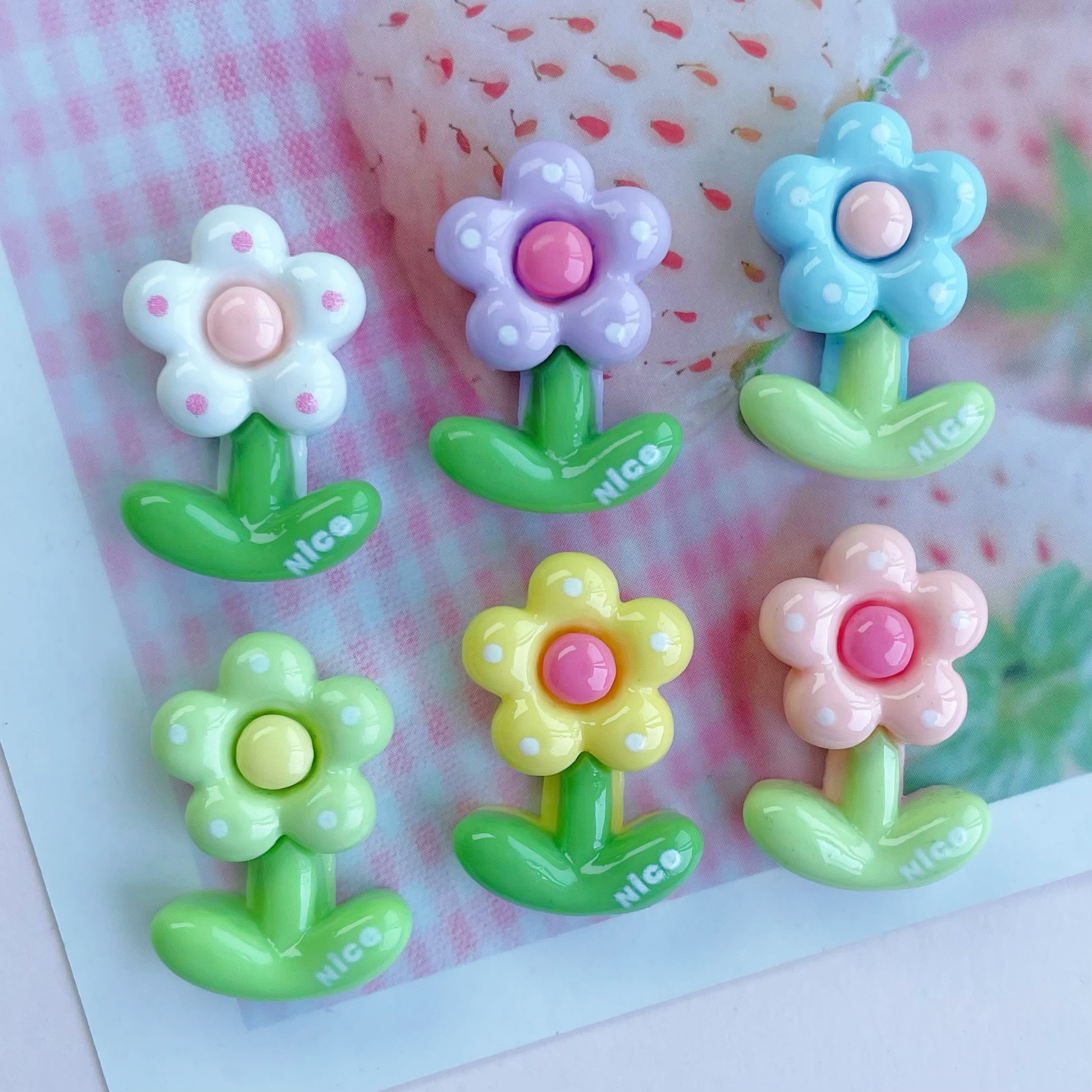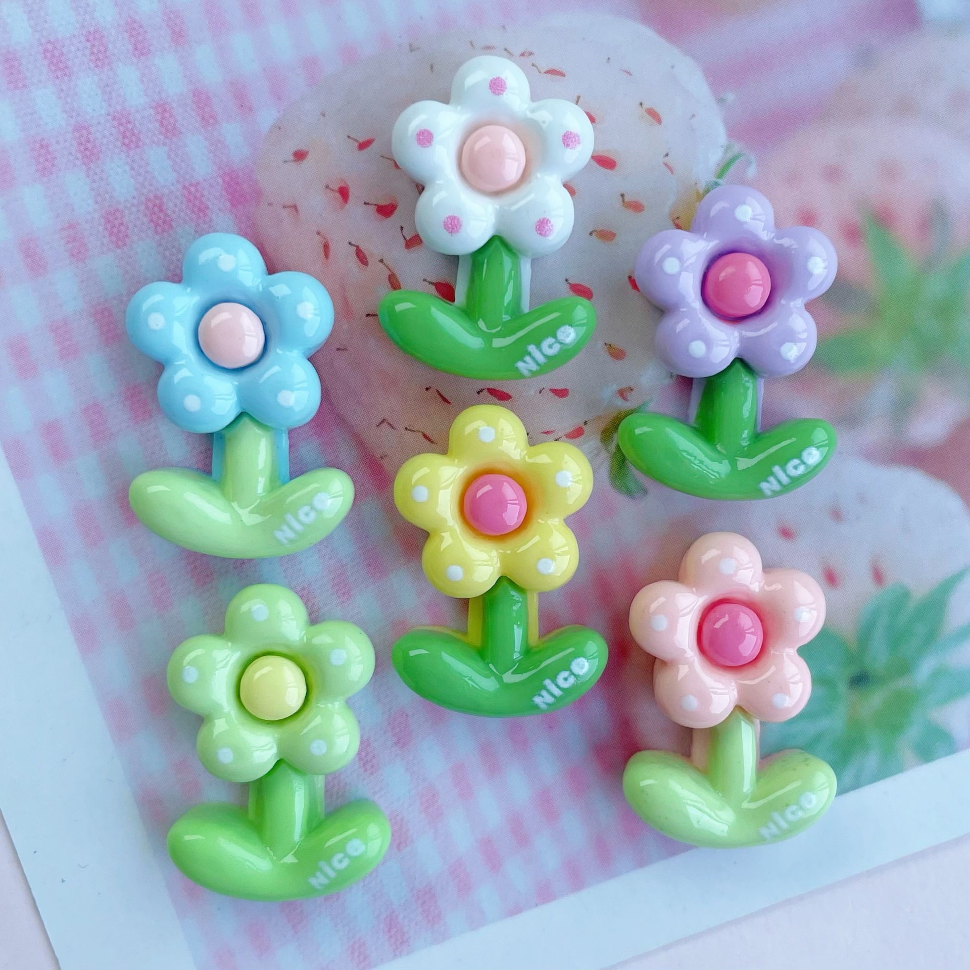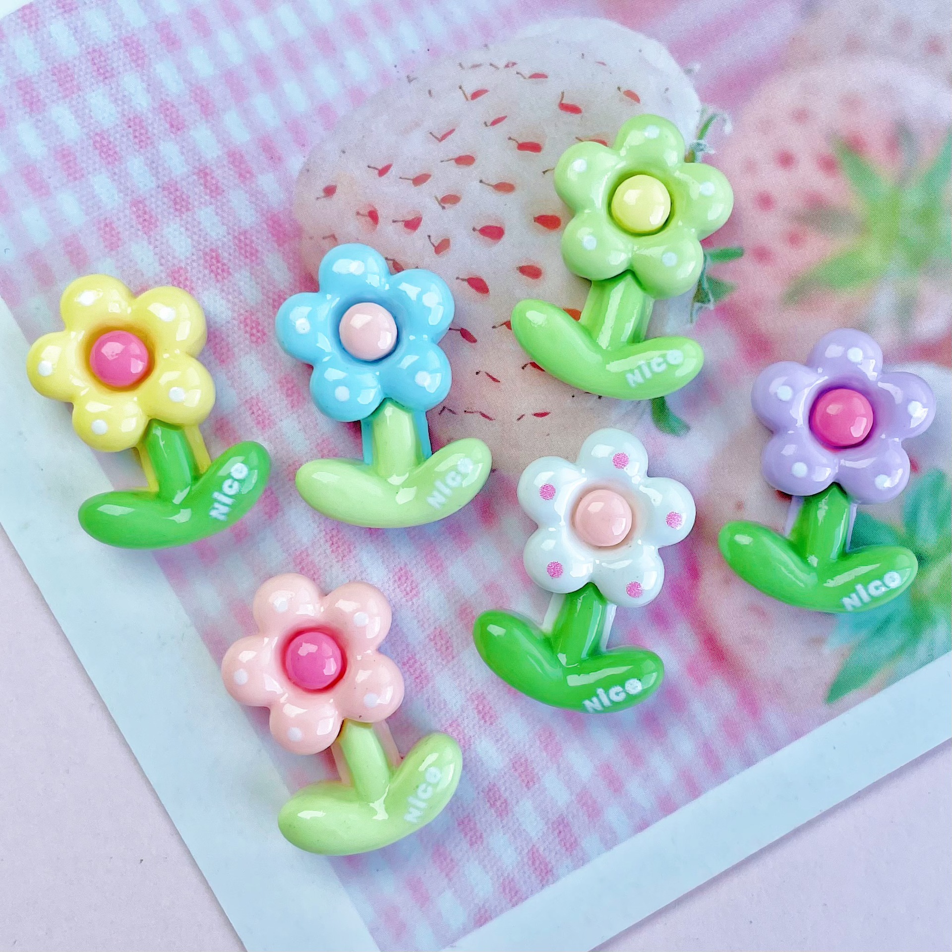 밝은 도트 꽃 수지 DIY 액세서리 크림 젤 전화 케이스 머리핀 영어 좋은 작은 꽃 물 컵 패치스토어 가기