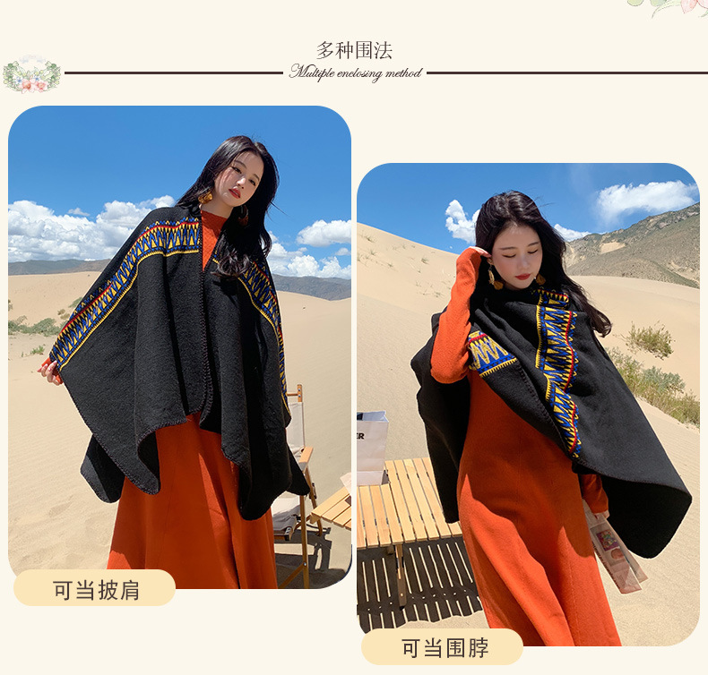 레저 여행 레트로 에스닉 스타일 숄 사막 사진 여행 바람을 입고 편안한 통기성 따뜻한 스카프 망토