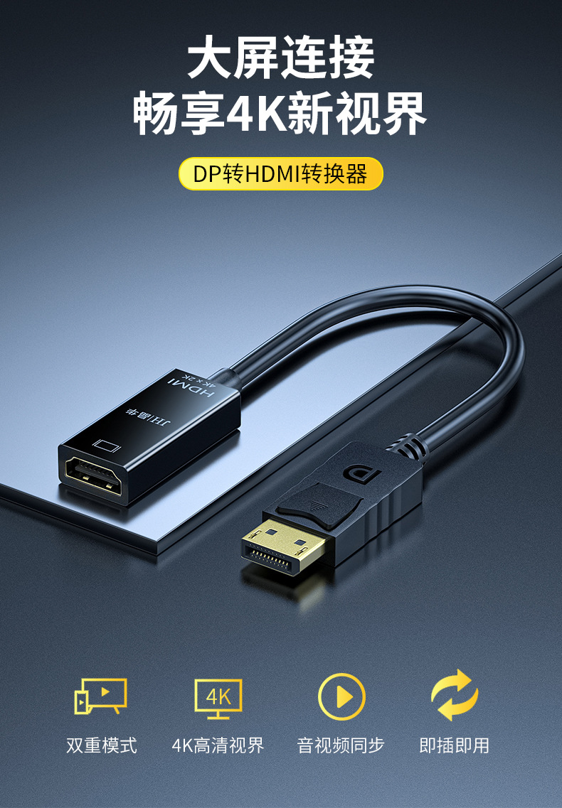 HDMI 변환기에 DP 재고 HDMI 여성 HD 라인 변환기 DP 블랙 4K 컴퓨터 HD 변환기스토어 가기