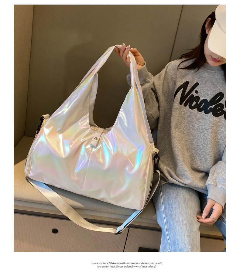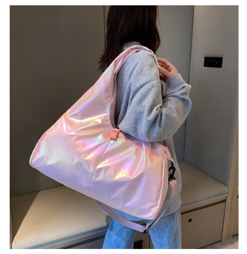새로운 여행 가방 어깨 패션 여성용 체육관 가방 광택 핸드백 대용량 크로스 바디 수하물 가방 간단한 여성 가방