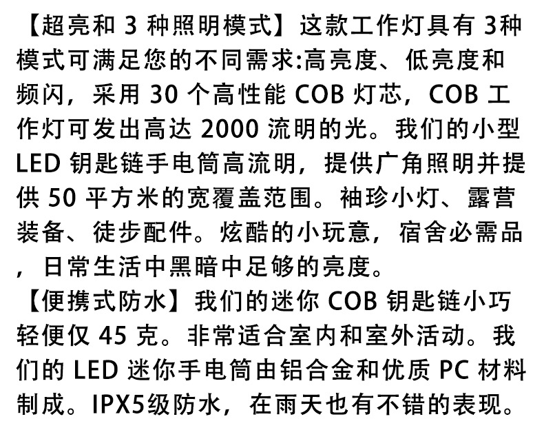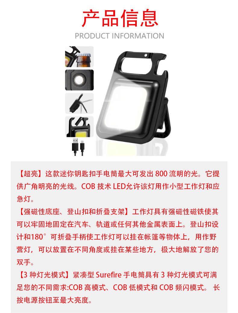 Led 손전등 다기능 휴대용 키 체인 빛 개암 나무 열매 작업 빛 야외 캠핑 조명 자기 검사 등스토어 가기