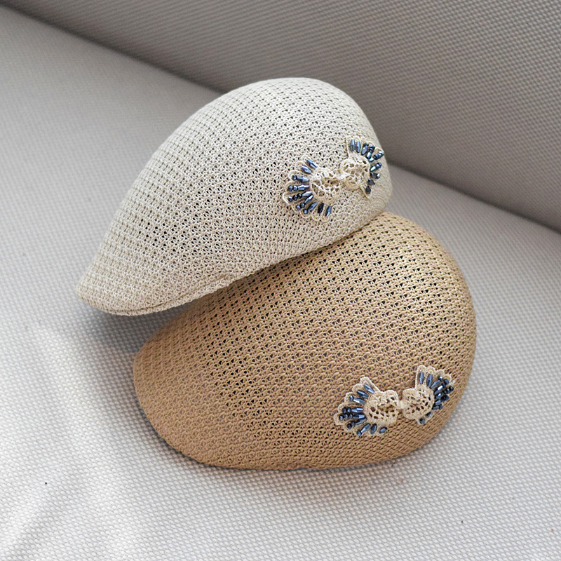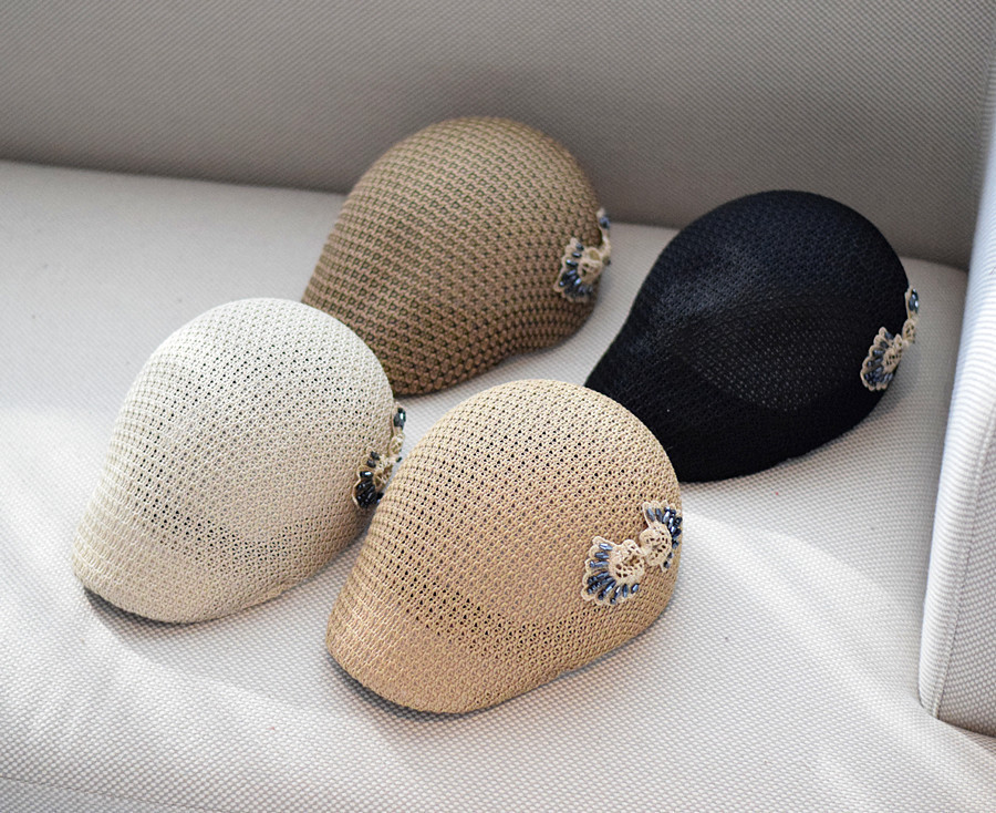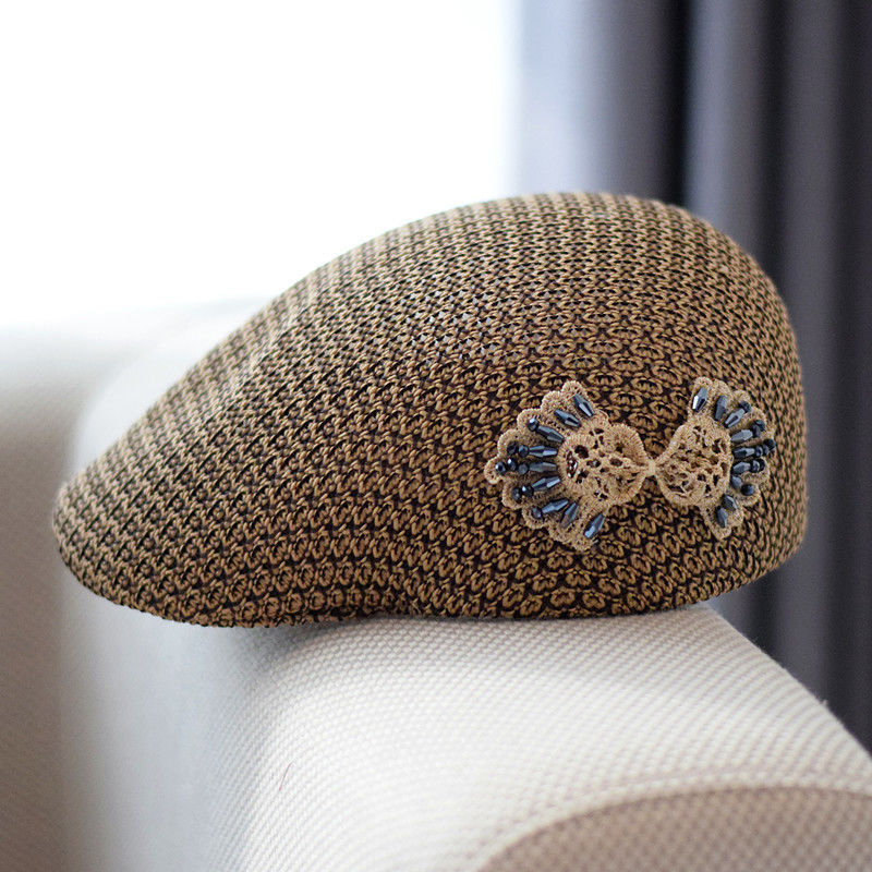 여름 베레모 얇은 모자 2023 새로운 모자 밝은 다이아몬드 앞으로 모자 라인 석 플래시 다이아몬드 유명한 에스닉 스타일 트렌드스토어 가기