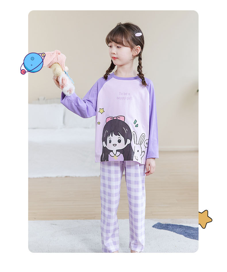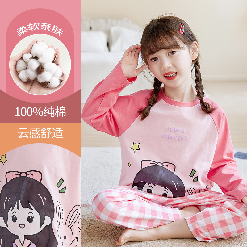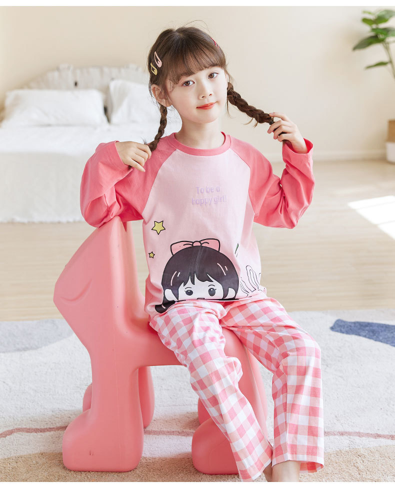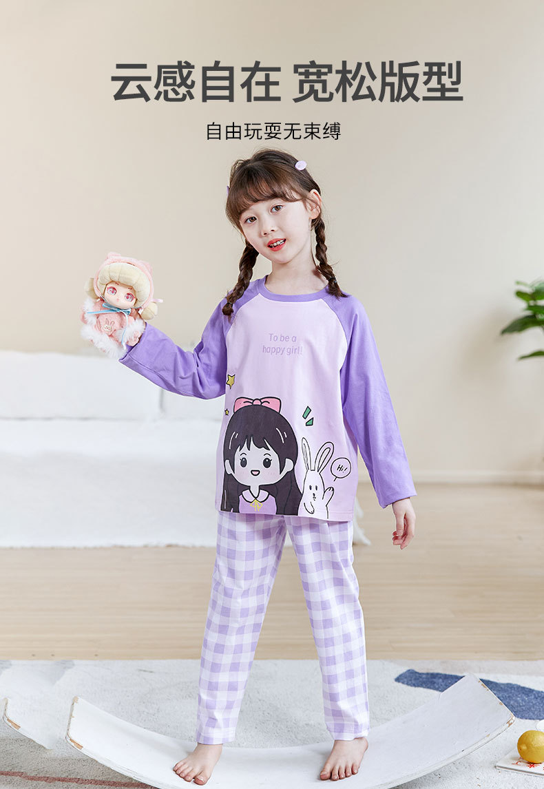 아동 의류 가정 의류 어린이 가을 옷 세트 카테고리 순면 잠옷 만화 소녀 인쇄 긴 소매 소녀 잠옷