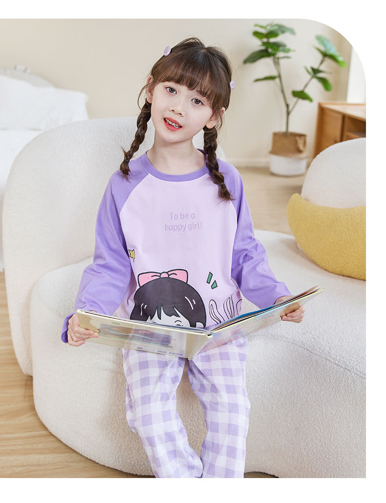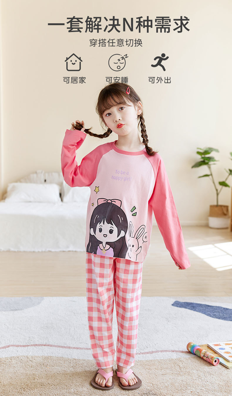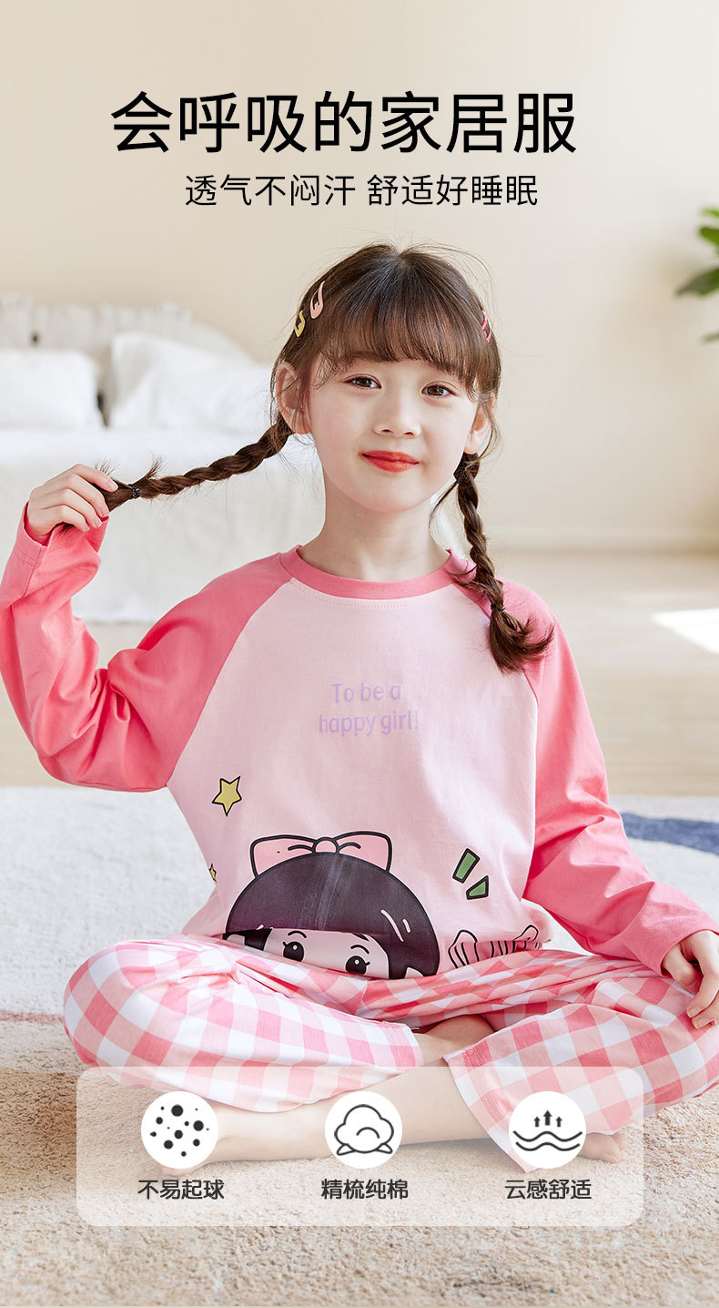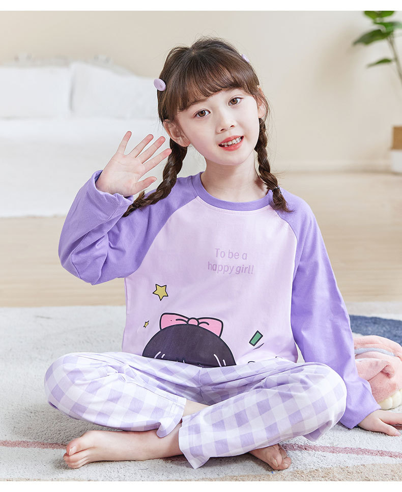 아동 의류 가정 의류 어린이 가을 옷 세트 카테고리 순면 잠옷 만화 소녀 인쇄 긴 소매 소녀 잠옷