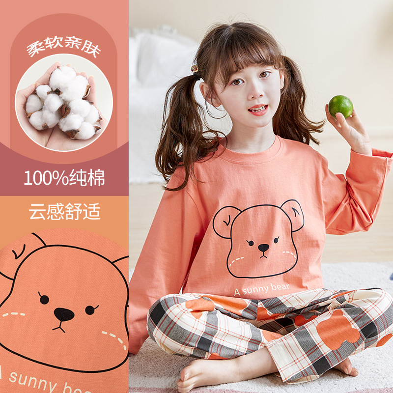 아동 의류 가정 의류 어린이 가을 옷 세트 카테고리 순면 잠옷 만화 소녀 인쇄 긴 소매 소녀 잠옷스토어 가기