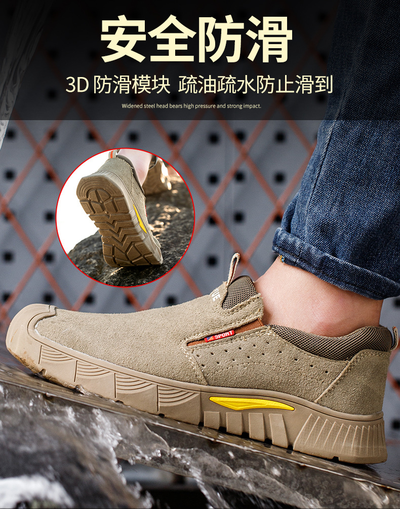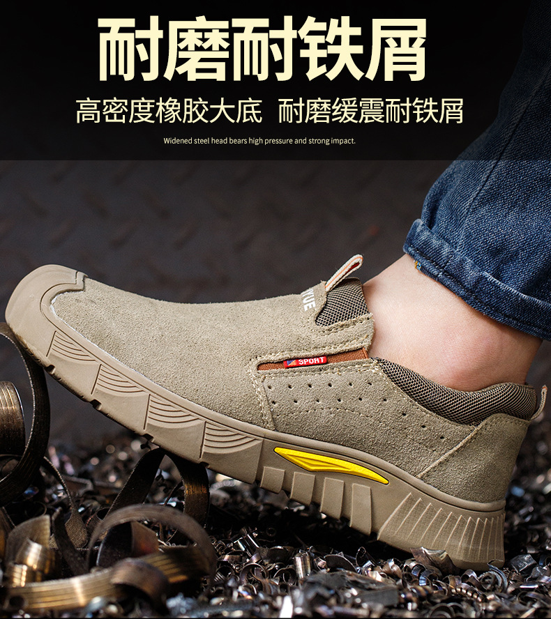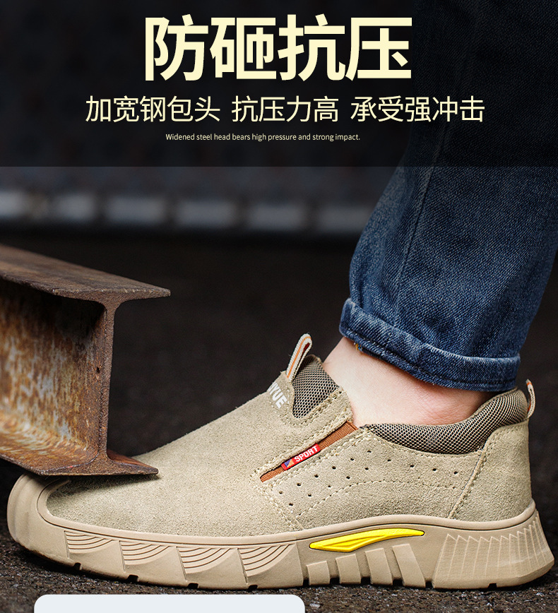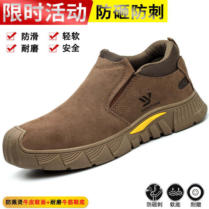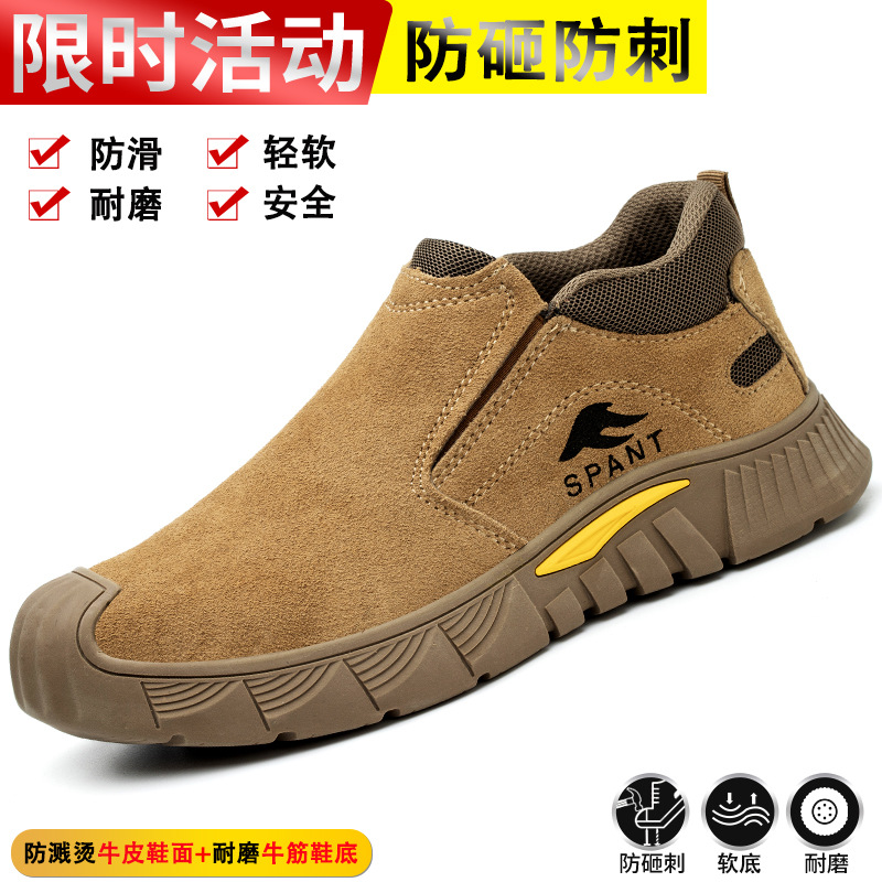노동 보호 신발 남성용 스매시 방지 및 펑크 방지 소 가죽 용접기 원 페달 미끄럼 방지 마모 방지 안전 작업 현장 신발 국경스토어 가기