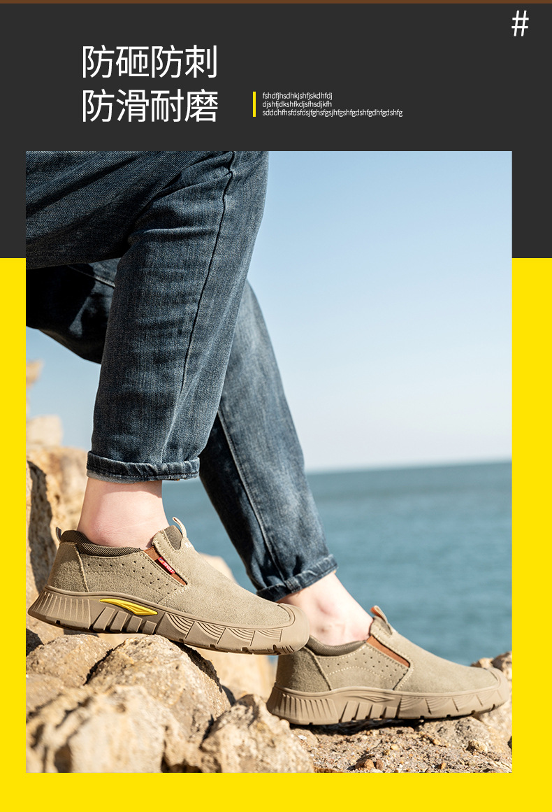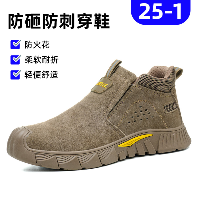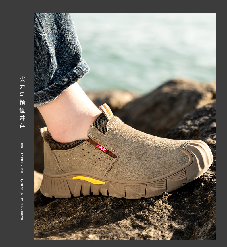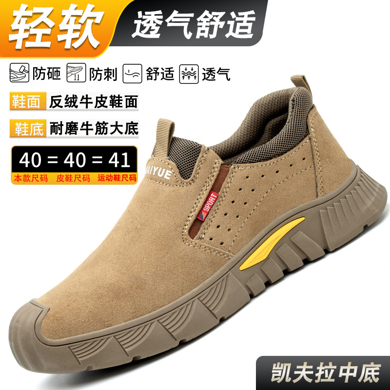 노동 보호 신발 남성용 스매시 방지 및 펑크 방지 소 가죽 용접기 원 페달 미끄럼 방지 마모 방지 안전 작업 현장 신발 국경스토어 가기