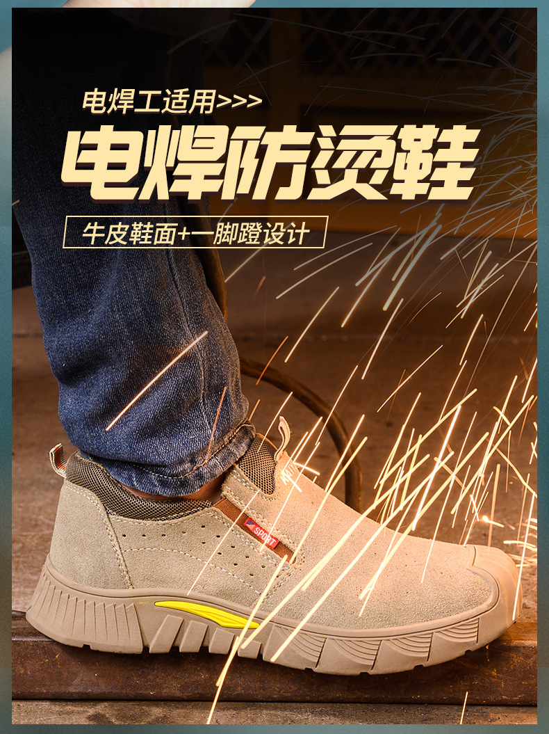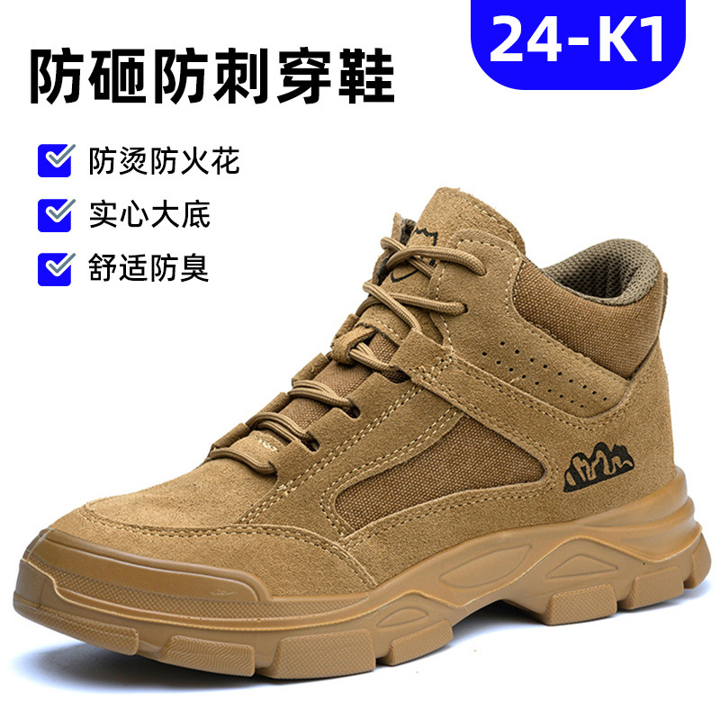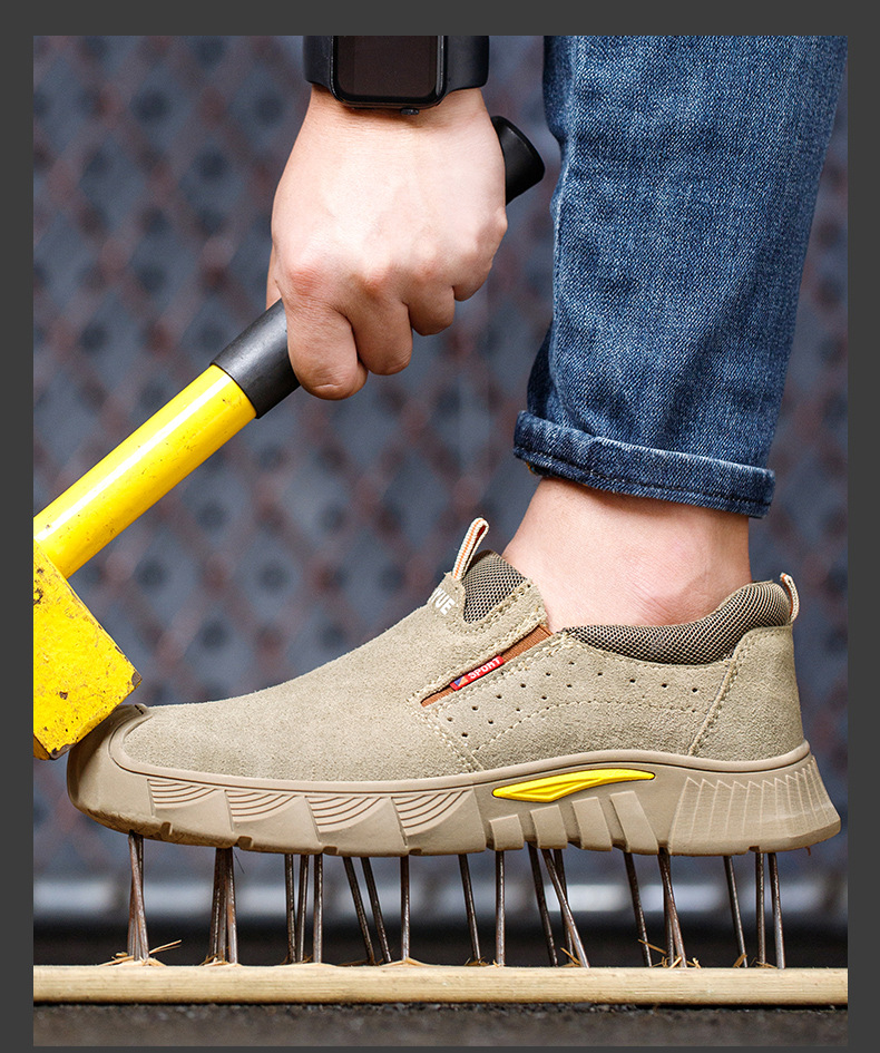 노동 보호 신발 남성용 스매시 방지 및 펑크 방지 소 가죽 용접기 원 페달 미끄럼 방지 마모 방지 안전 작업 현장 신발 국경