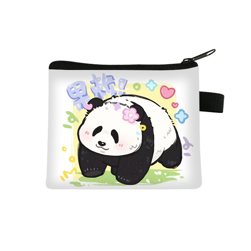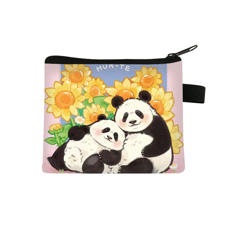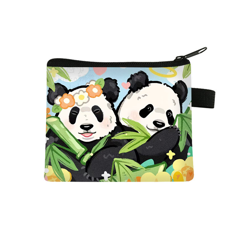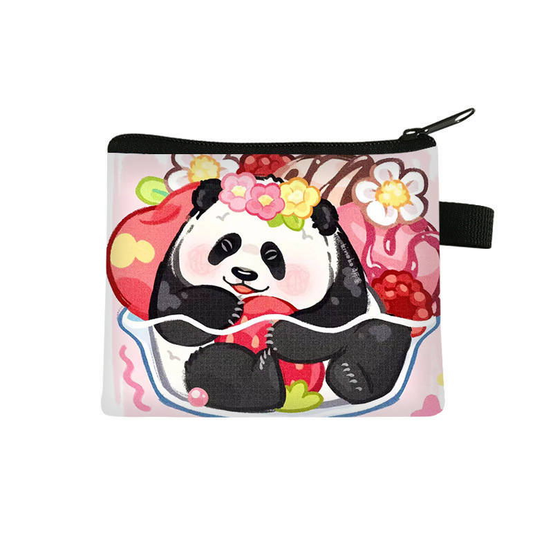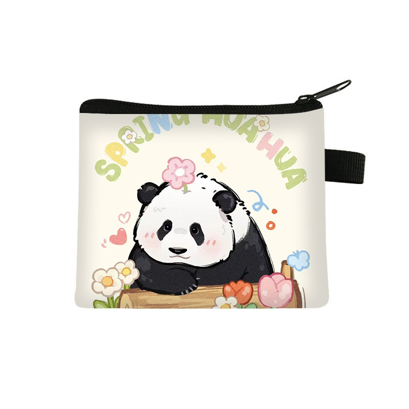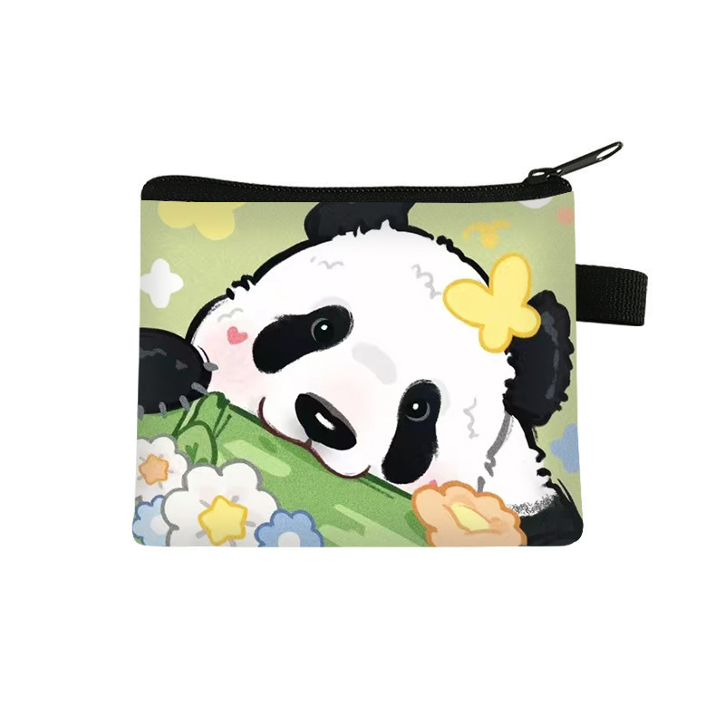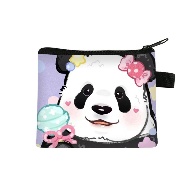 夏季新款熊猫花花周边可爱印花零钱包超轻卡通收纳包拉链卡包批发undefined