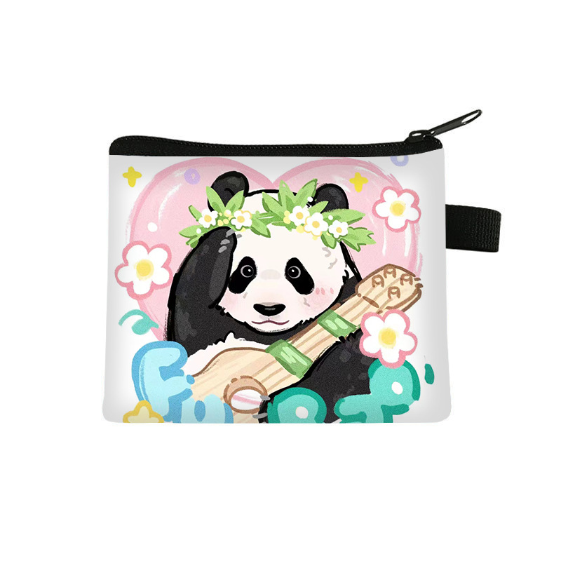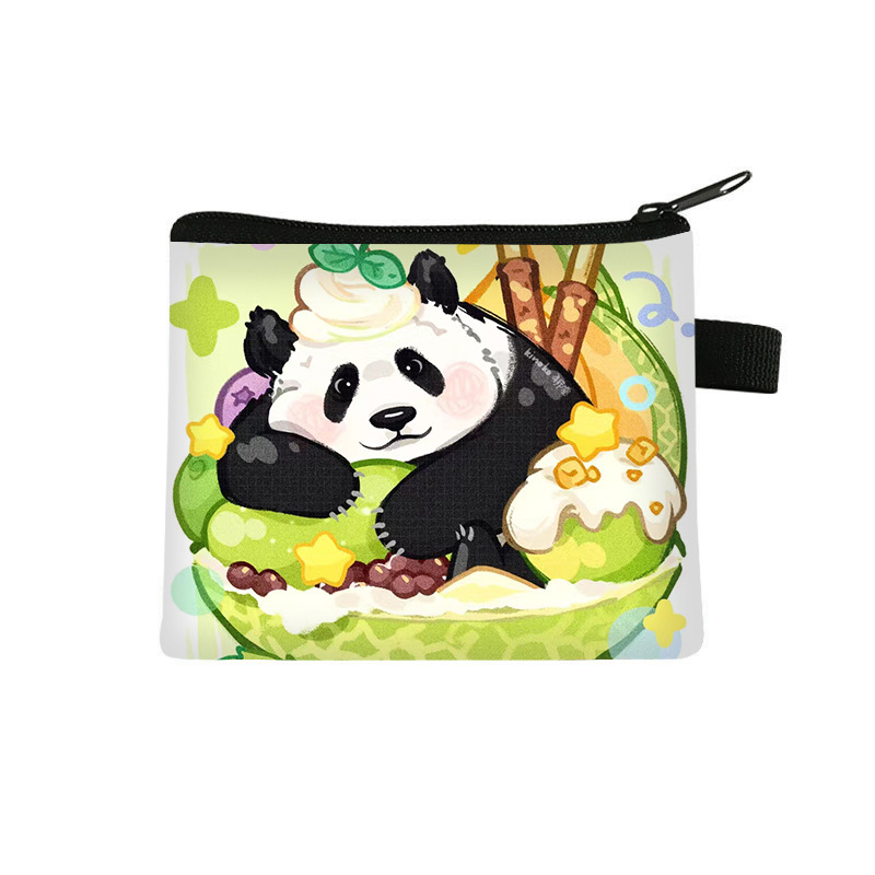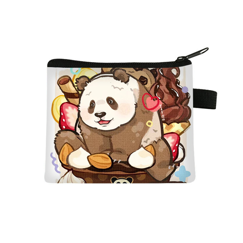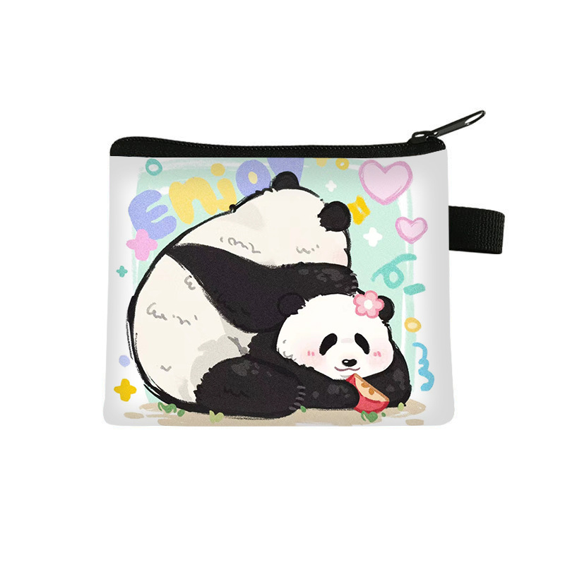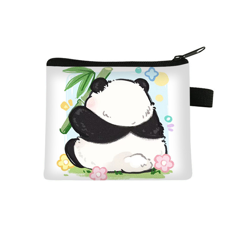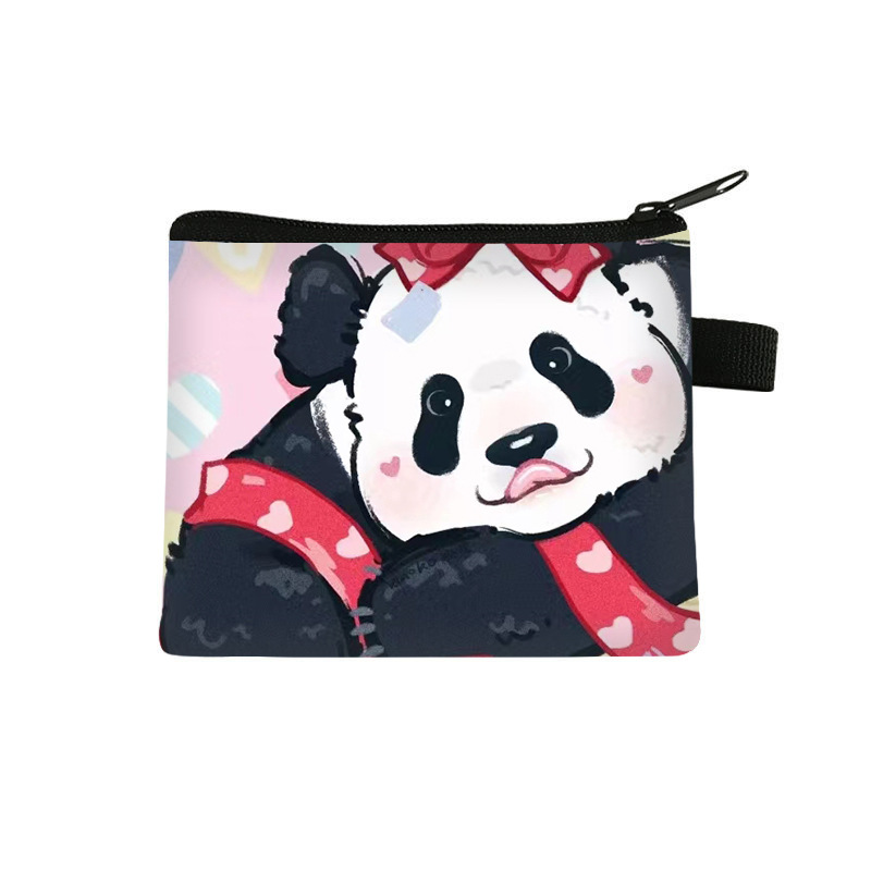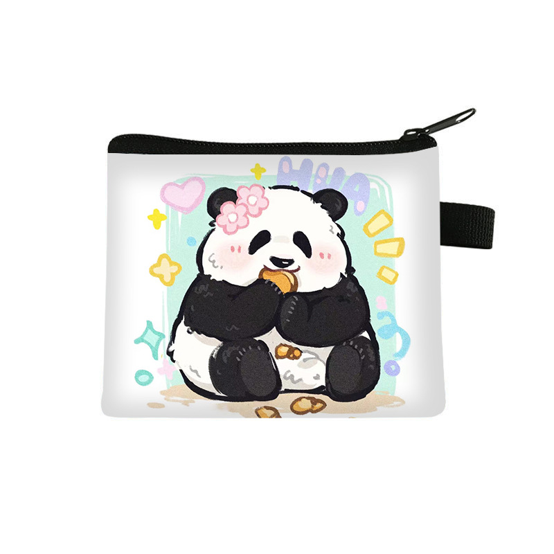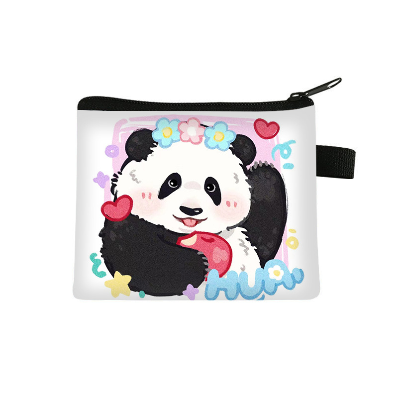 夏季新款熊猫花花周边可爱印花零钱包超轻卡通收纳包拉链卡包批发undefined