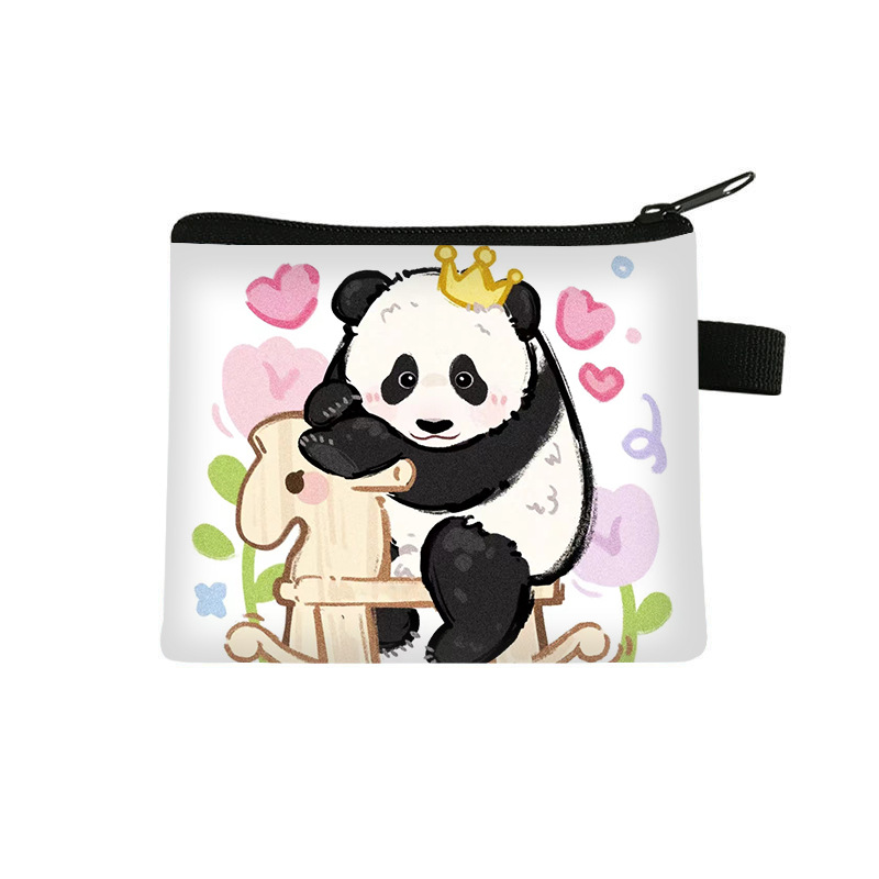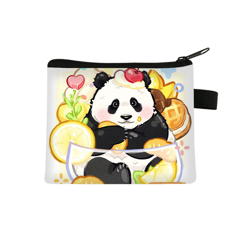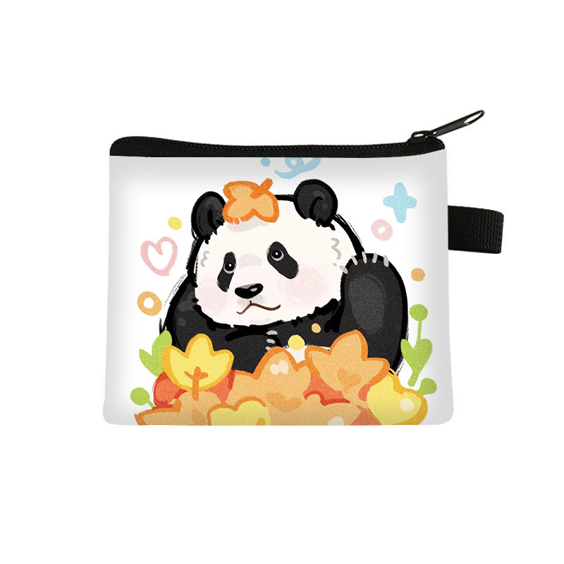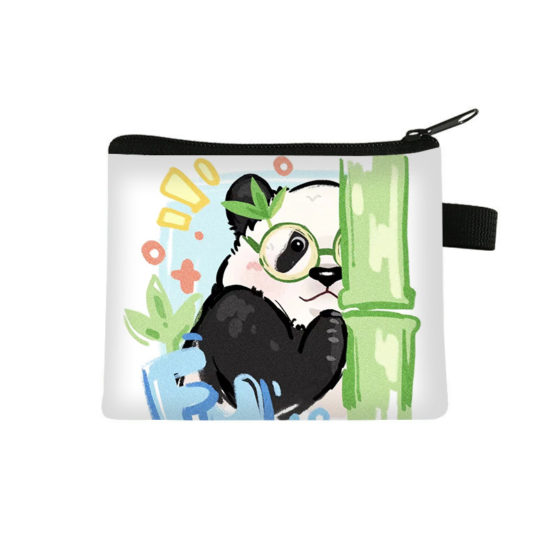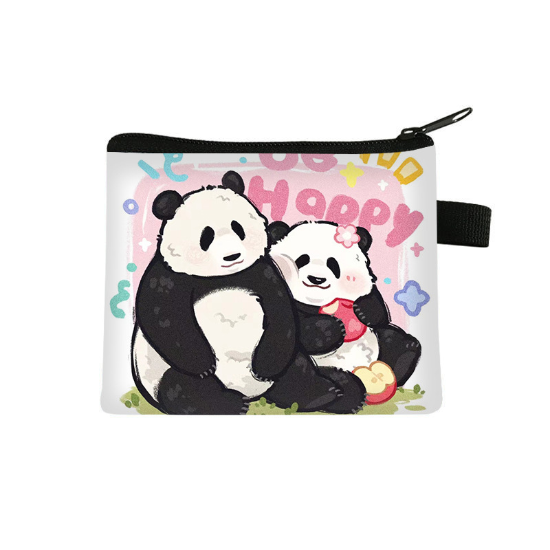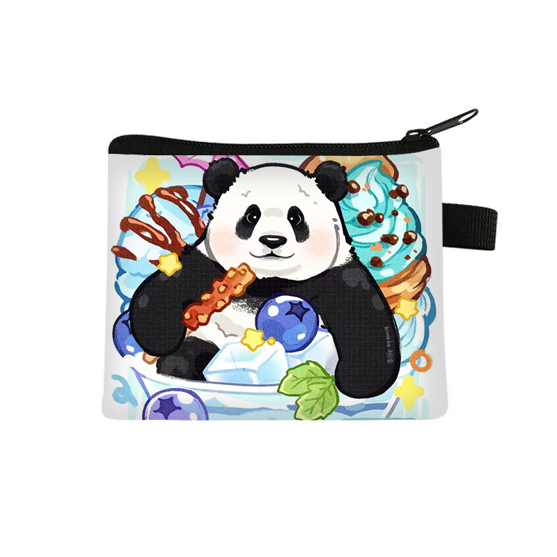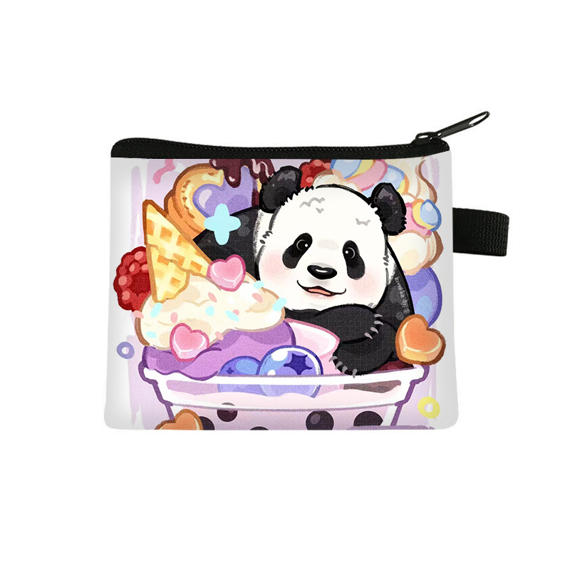 夏季新款熊猫花花周边可爱印花零钱包超轻卡通收纳包拉链卡包批发undefined