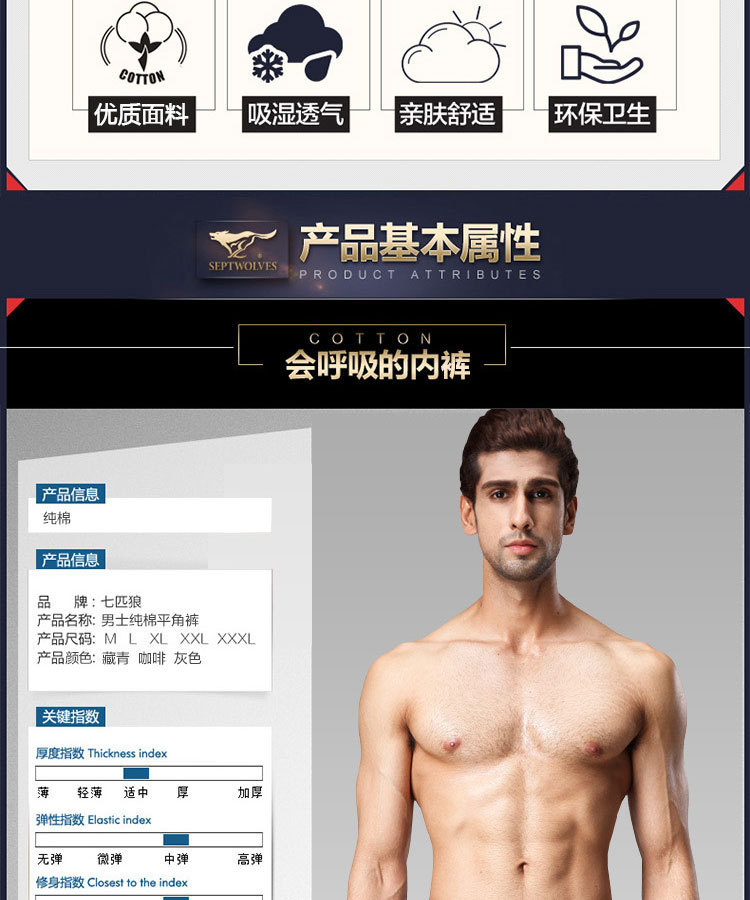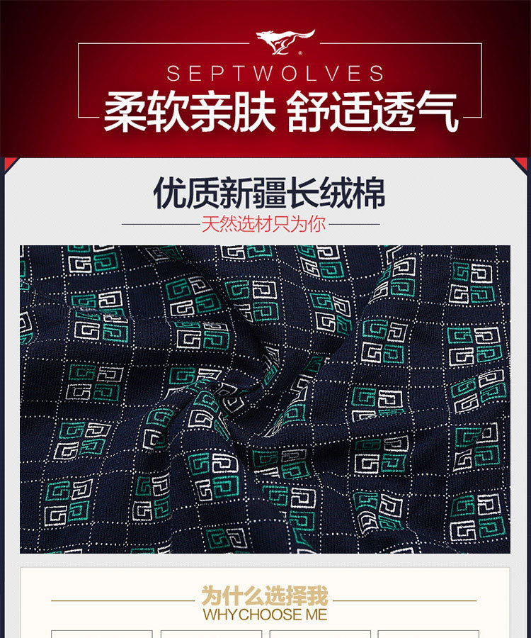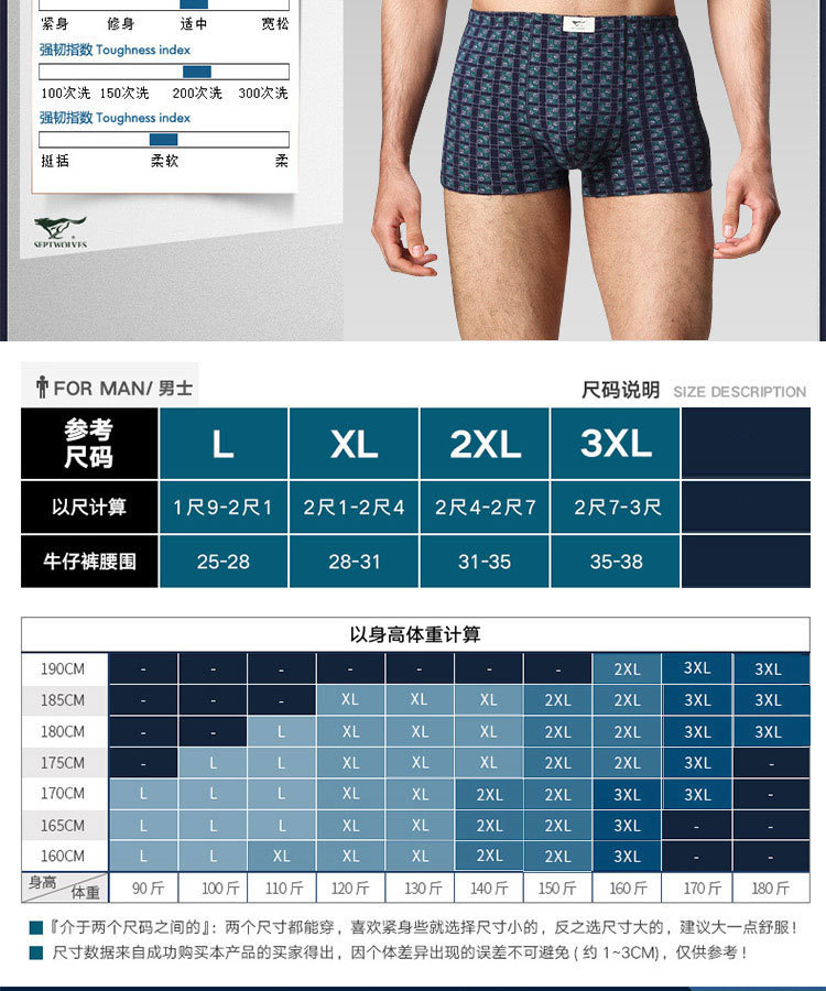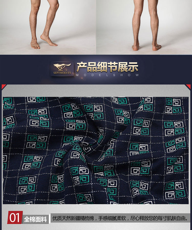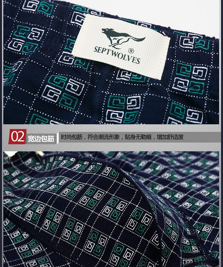 슈퍼마켓 정품 세븐울프 남성 속옷 프린트 중간 허리 높이 순면 사각팬티, 면 100% 사각팬티 2개입 박스 포장스토어 가기