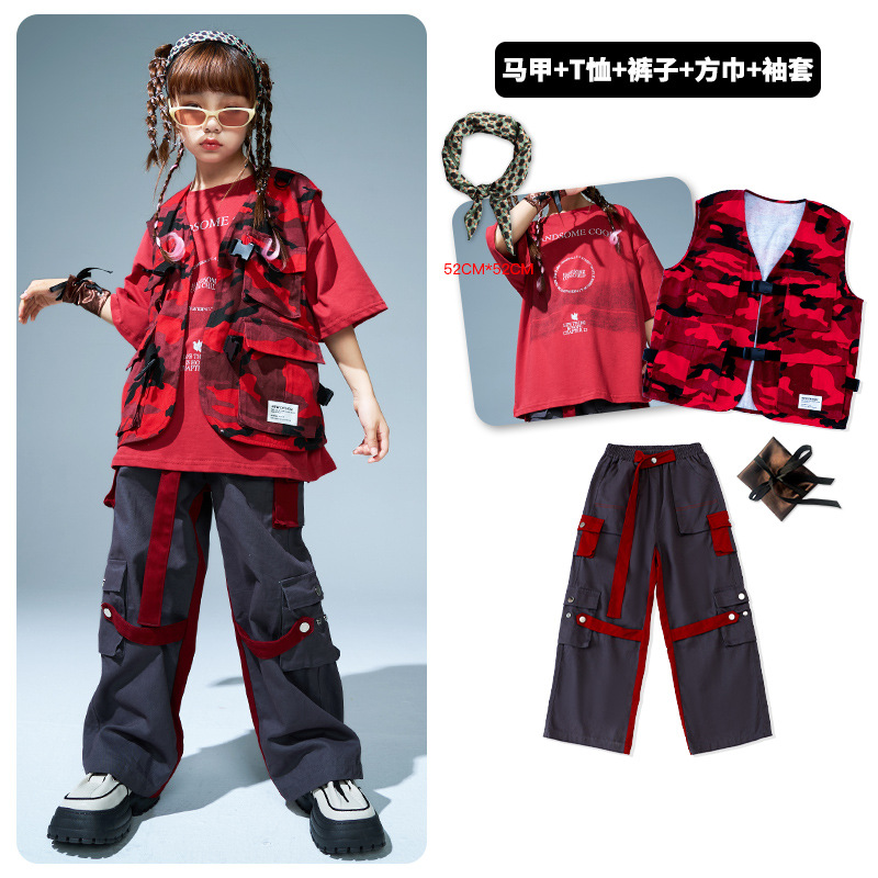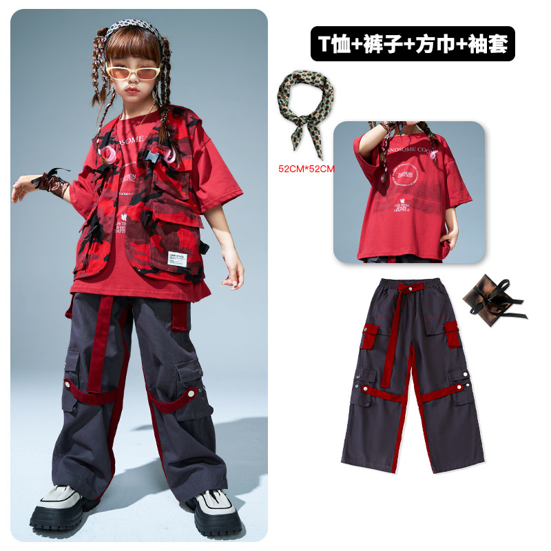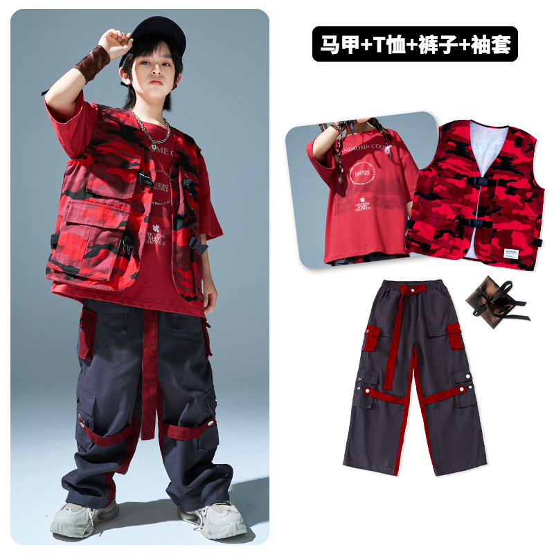 힙합 힙합 아동면 티셔츠 조끼 정장 어린이 힙합 패션 옷 소년 튀긴 거리 공연 옷 소녀