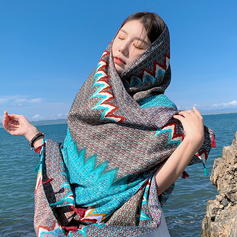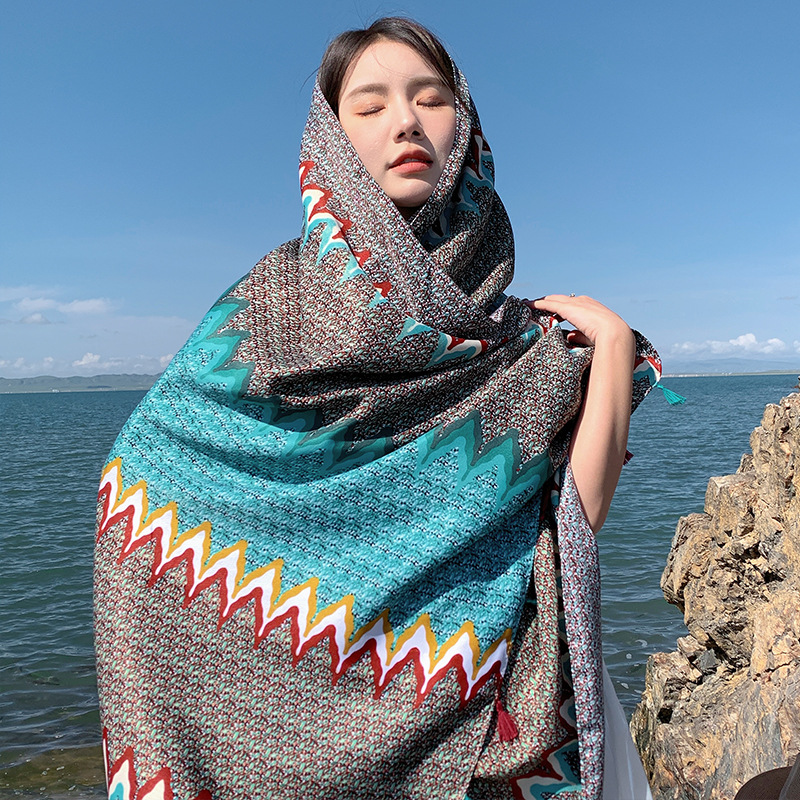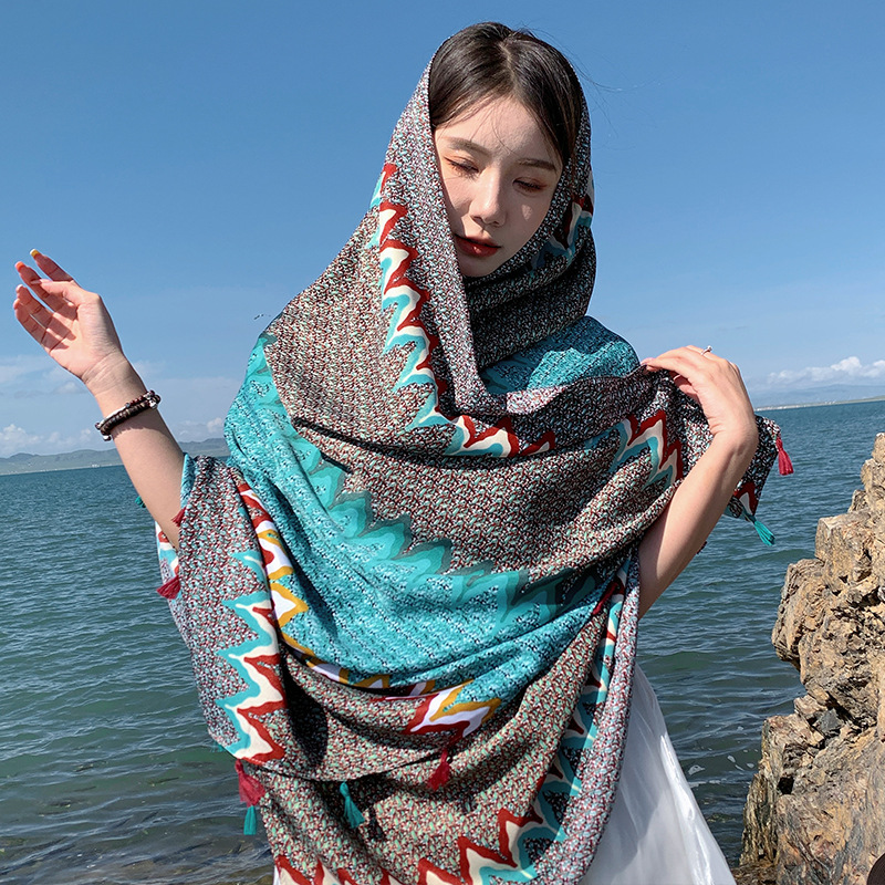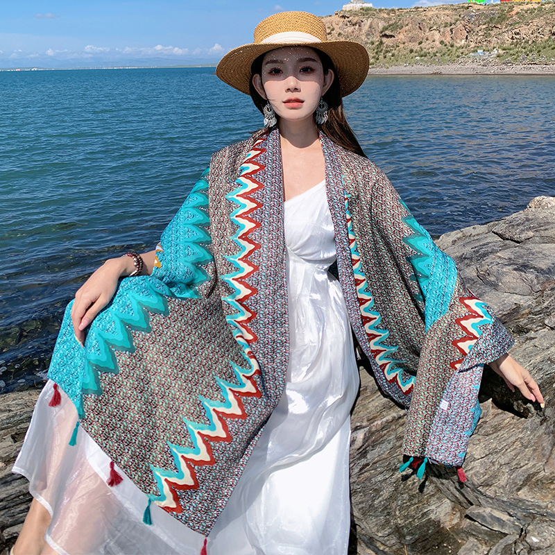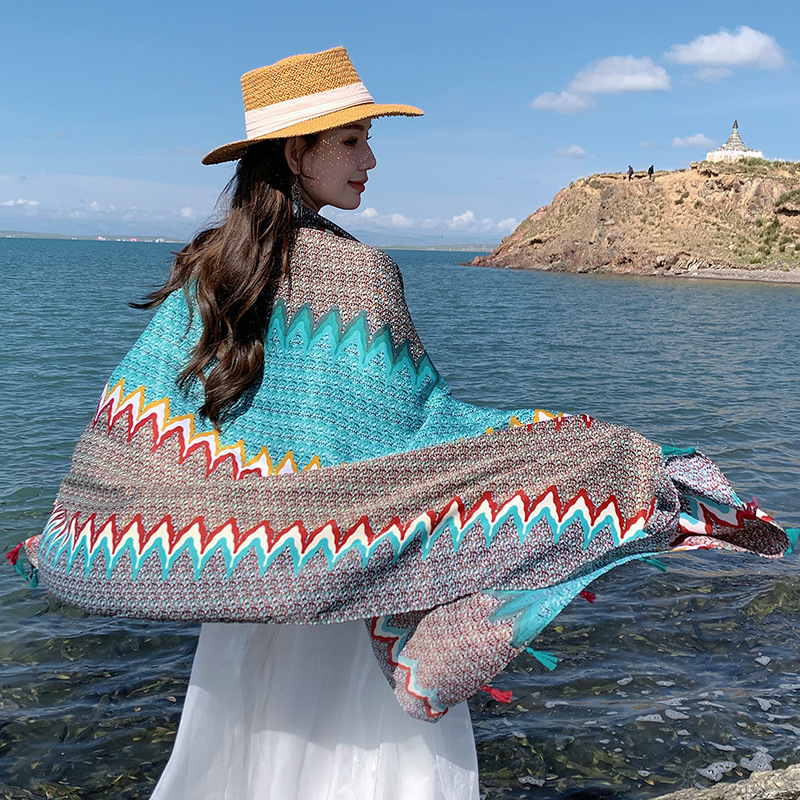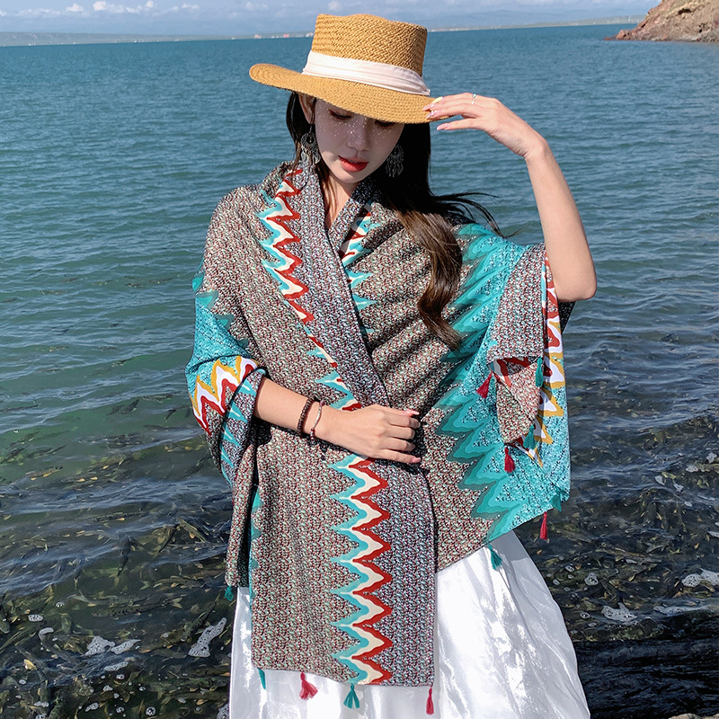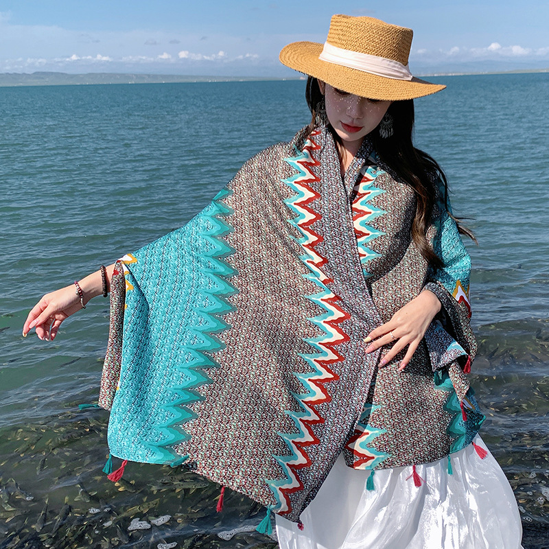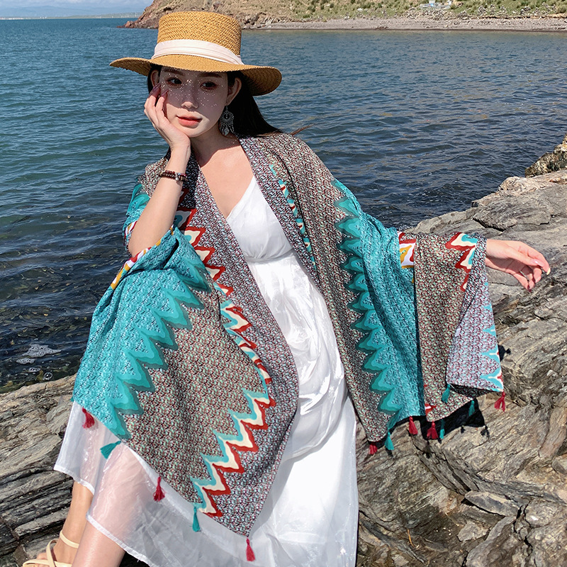 야외 해변 사진 휴가 에스닉 스타일 망토 캐주얼 통기성 편안한 스카프 대형 망토 여행 목도리