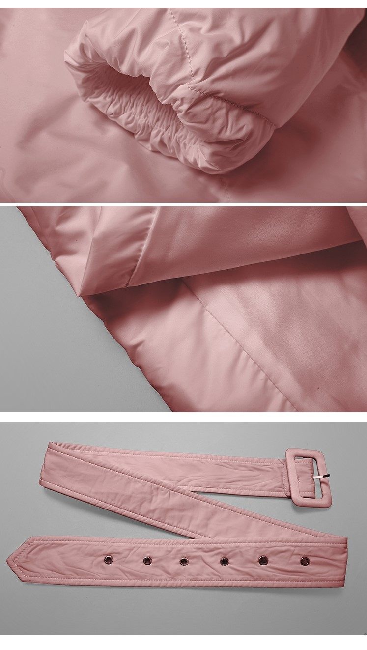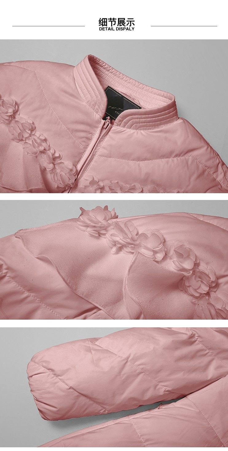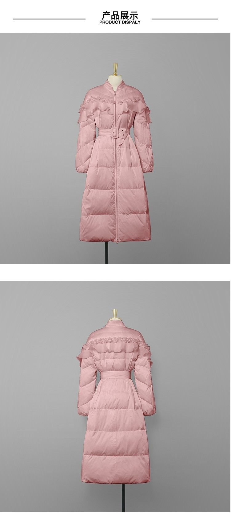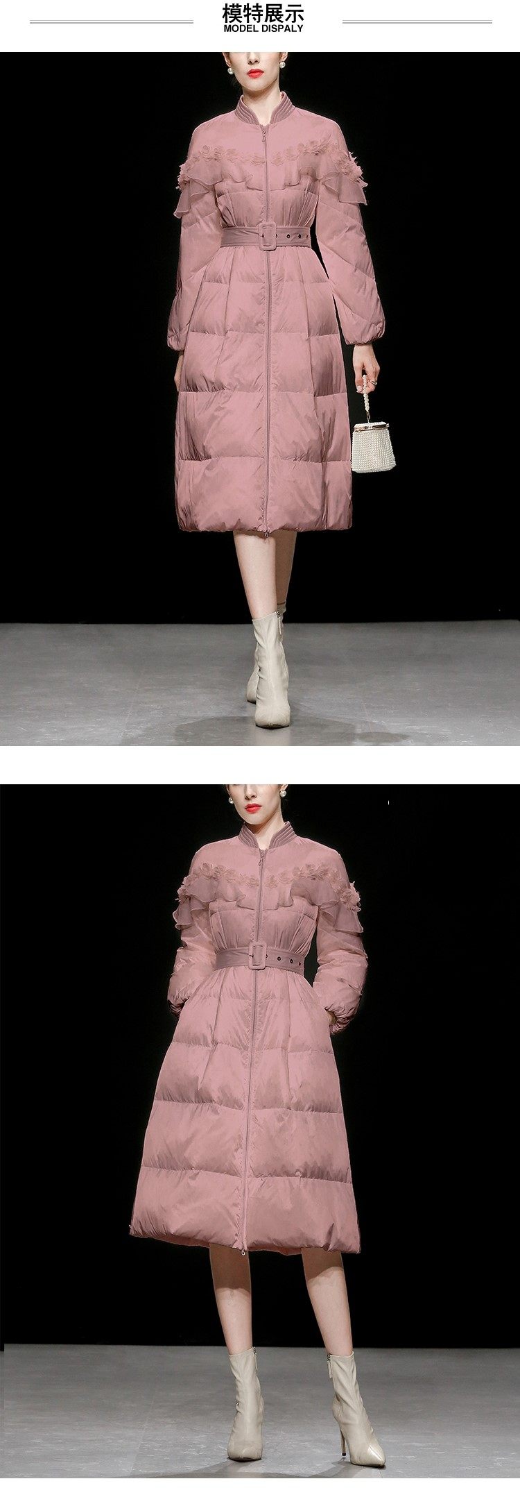 새로운 여자의 안개 핑크 스탠드 칼라 중간 길이 흰색 오리 다운 재킷 두꺼운 허리 위 무릎 재킷스토어 가기