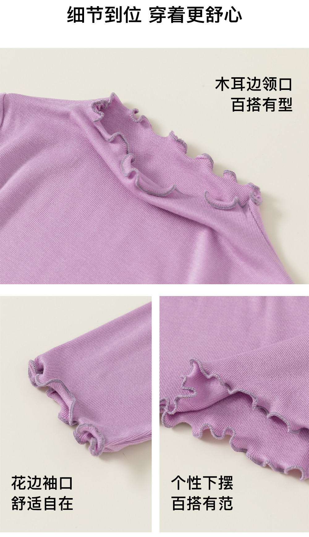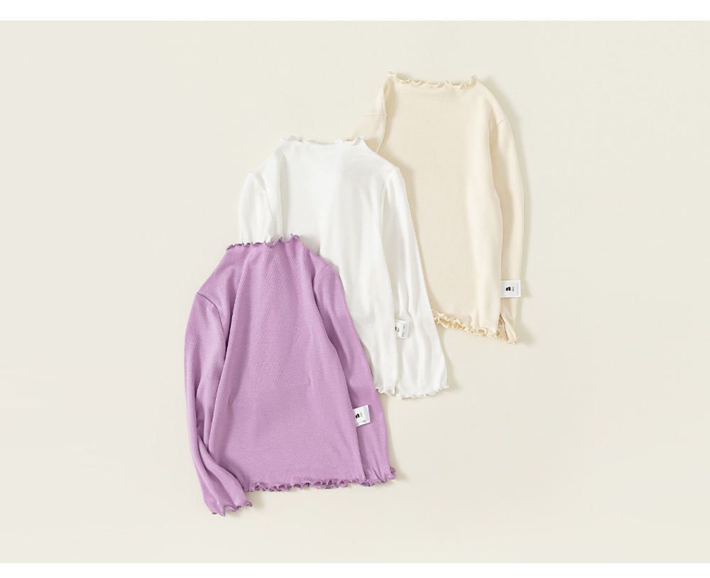 유바오 아동복 여아 티셔츠 봄 가을 무지 아동 이너웨어 만능 상의 러플 소매 아기 긴팔