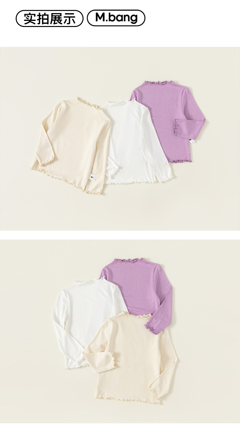 유바오 아동복 여아 티셔츠 봄 가을 무지 아동 이너웨어 만능 상의 러플 소매 아기 긴팔스토어 가기