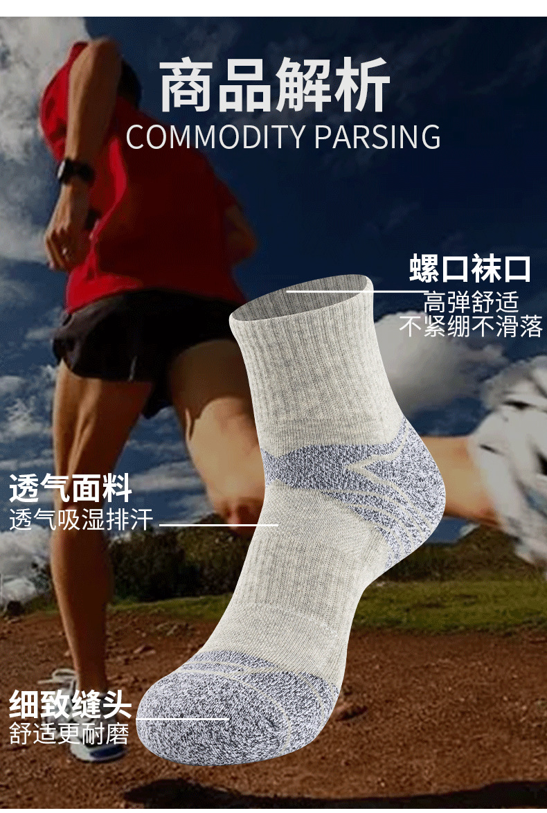 크로스보더 두꺼운 타월 양말 하이킹 양말 중간 길이 남성용 야외 스포츠 땀 흡수 통기성 미끄럼 방지 여성용 러닝 양말 제조업체 도매