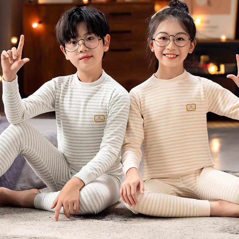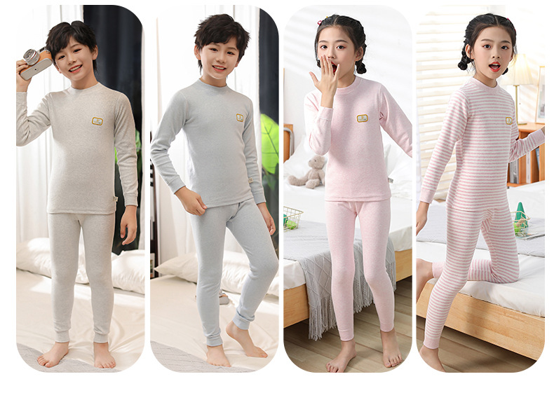 Shvelvet 색상 면 어린이 두꺼운 열 속옷 세트 면 남성과 여성의 나이가 많은 어린이 밀착 가을 옷 가을 바지 면 스웨터스토어 가기