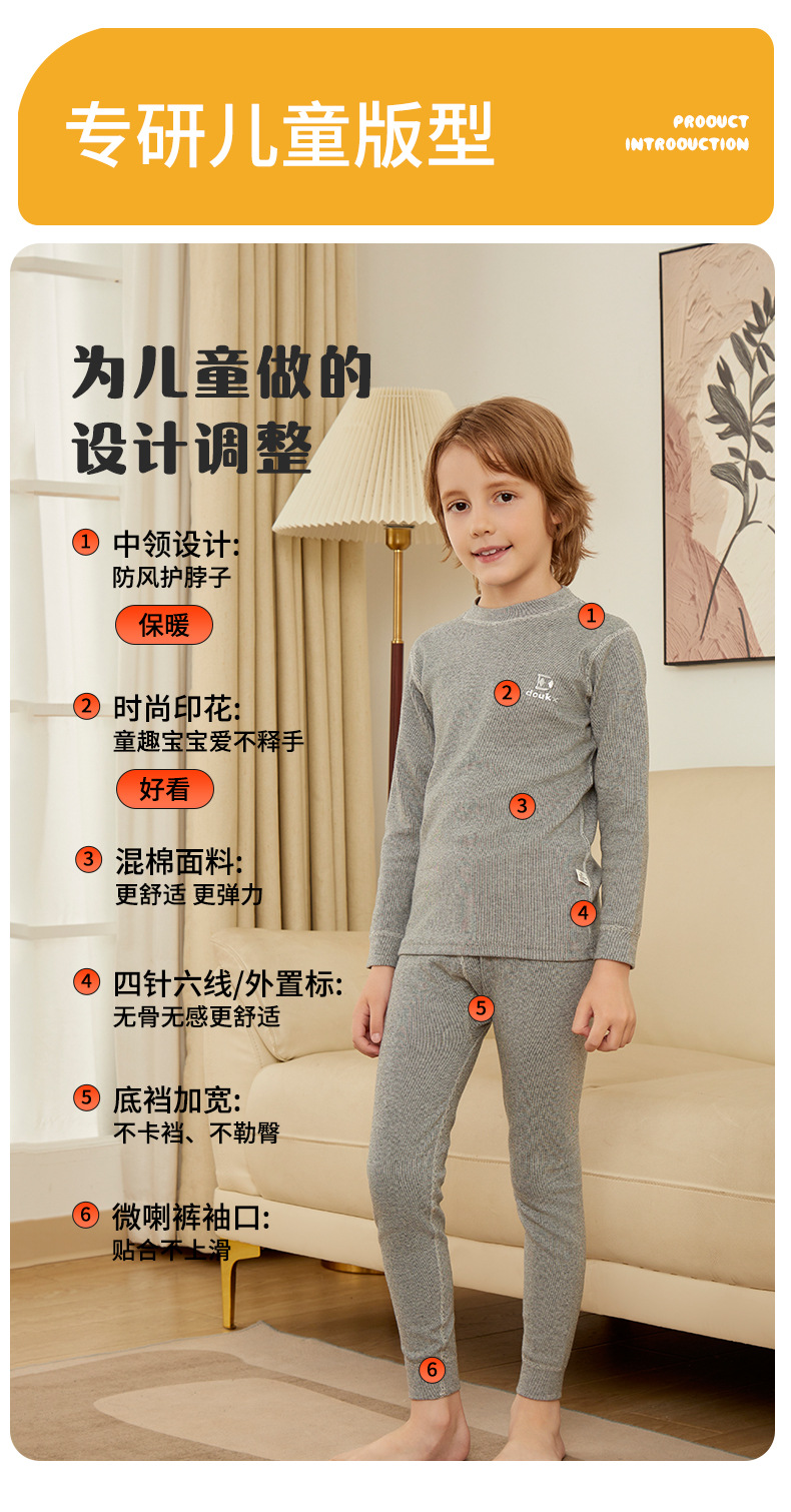 Shvelvet 색상 면 어린이 두꺼운 열 속옷 세트 면 남성과 여성의 나이가 많은 어린이 밀착 가을 옷 가을 바지 면 스웨터