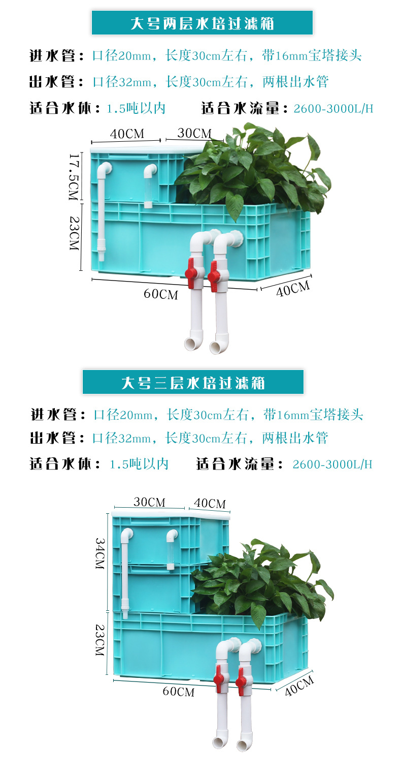 • 수경 중형 3 층 + 필터 재료 + 30W 워터 펌프