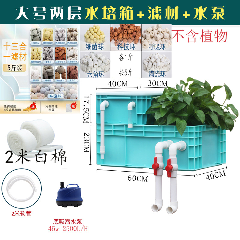 • 수경 매체 2 층 + 필터 재료 + 30W 워터 펌프