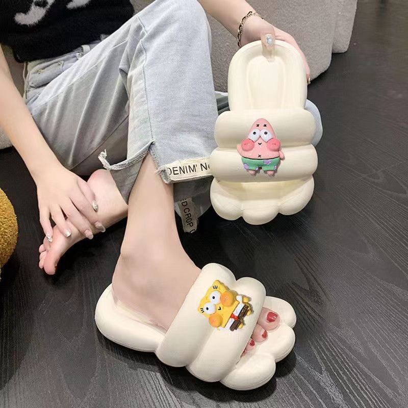 배설물 슬리퍼 여성의 새로운 실내 홈 귀여운 만화 두꺼운 단독 여름 커플 남성용 미끄럼 방지 샌들을 입을 수 있습니다스토어 가기