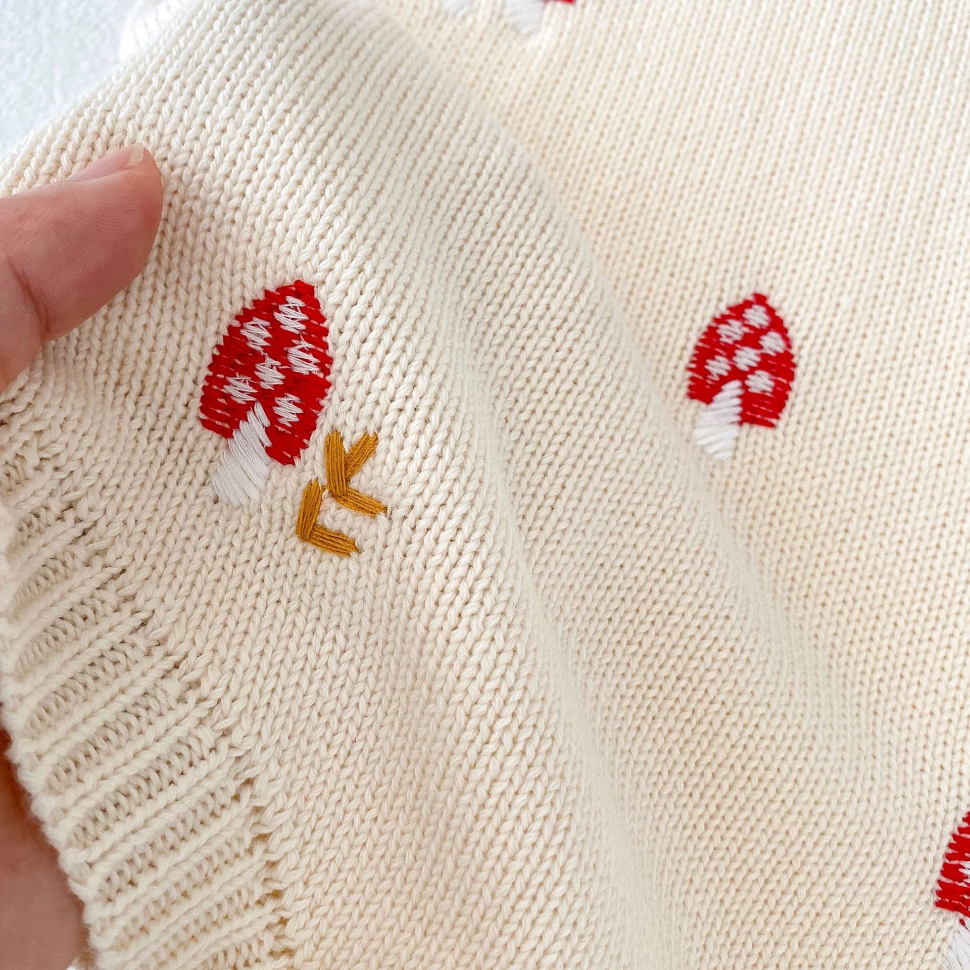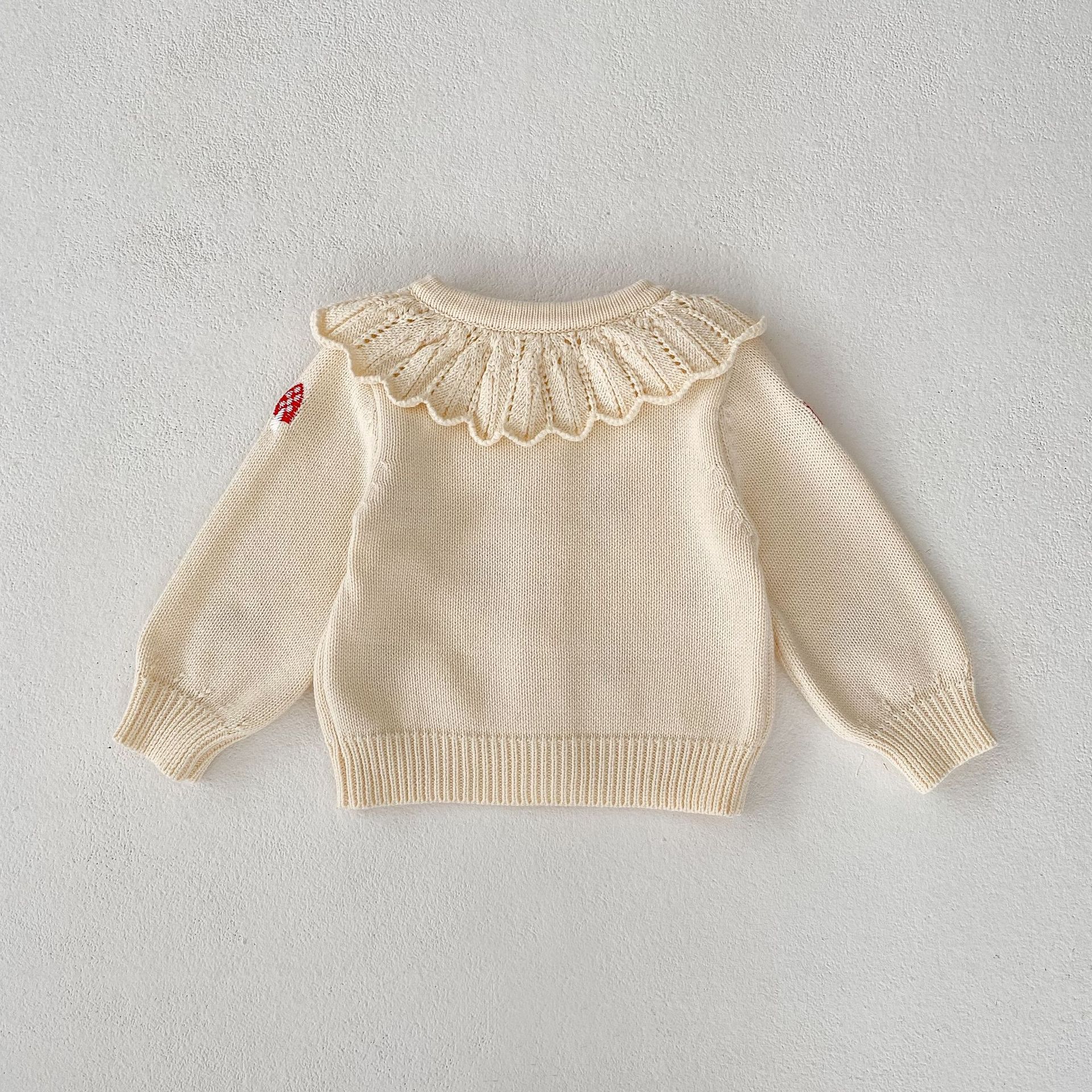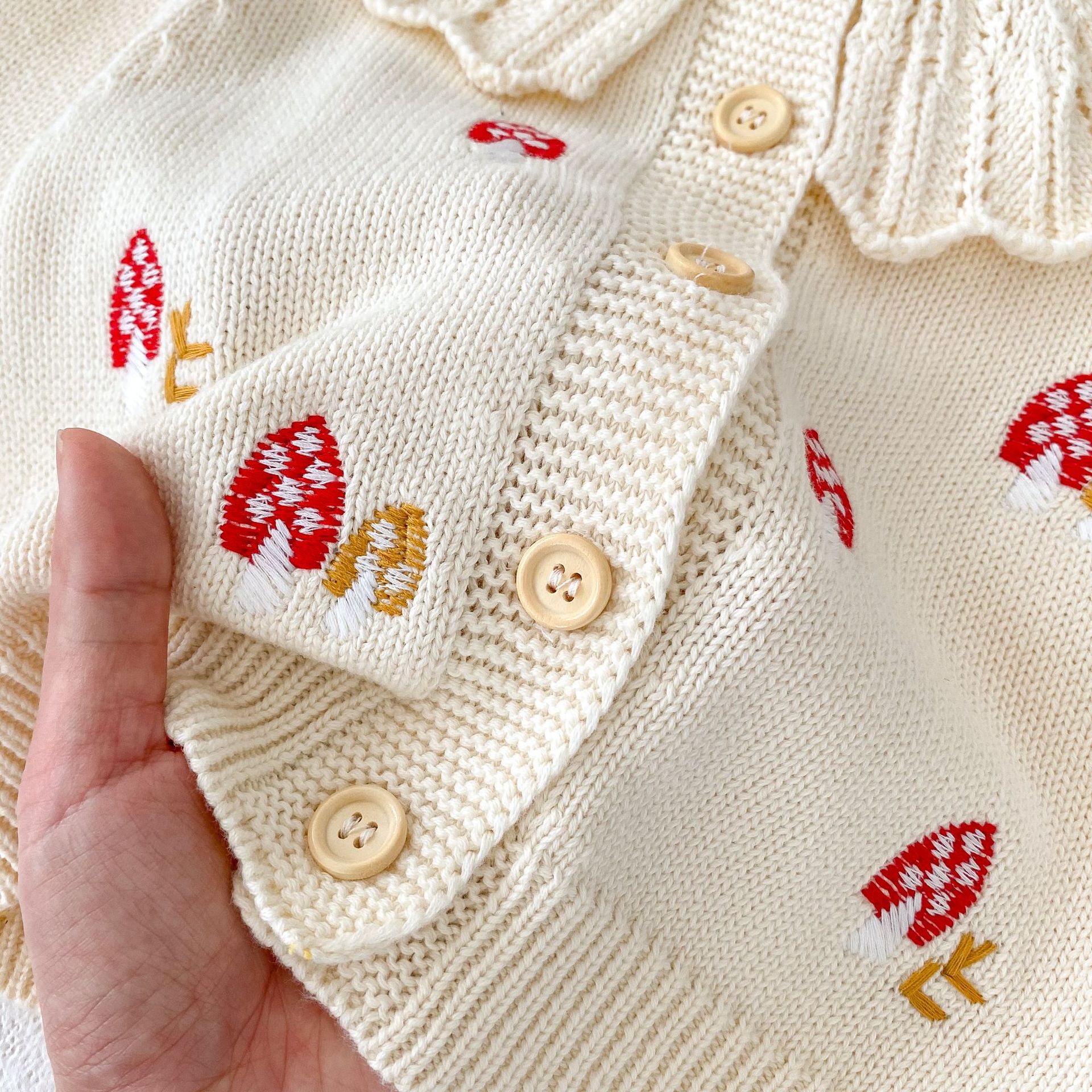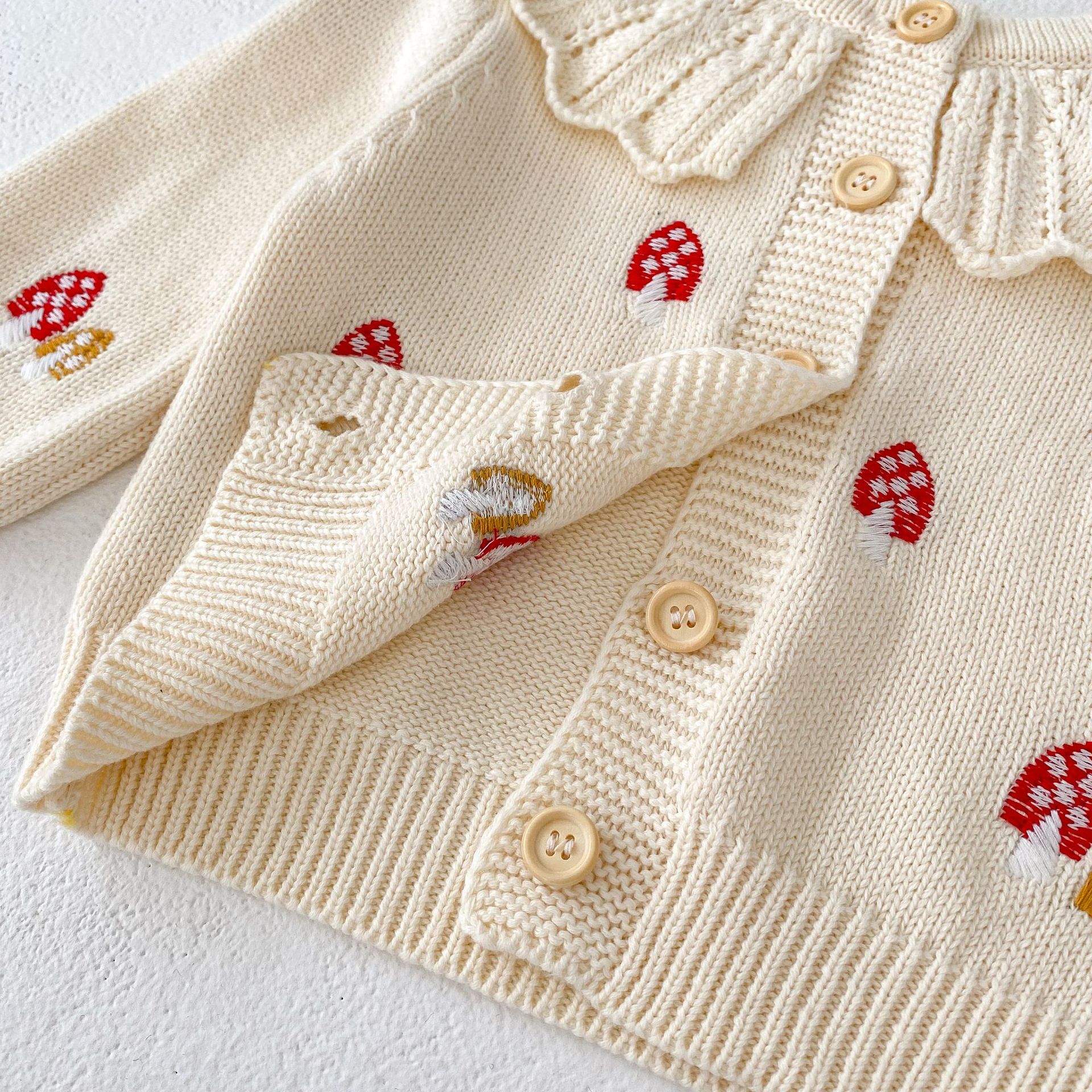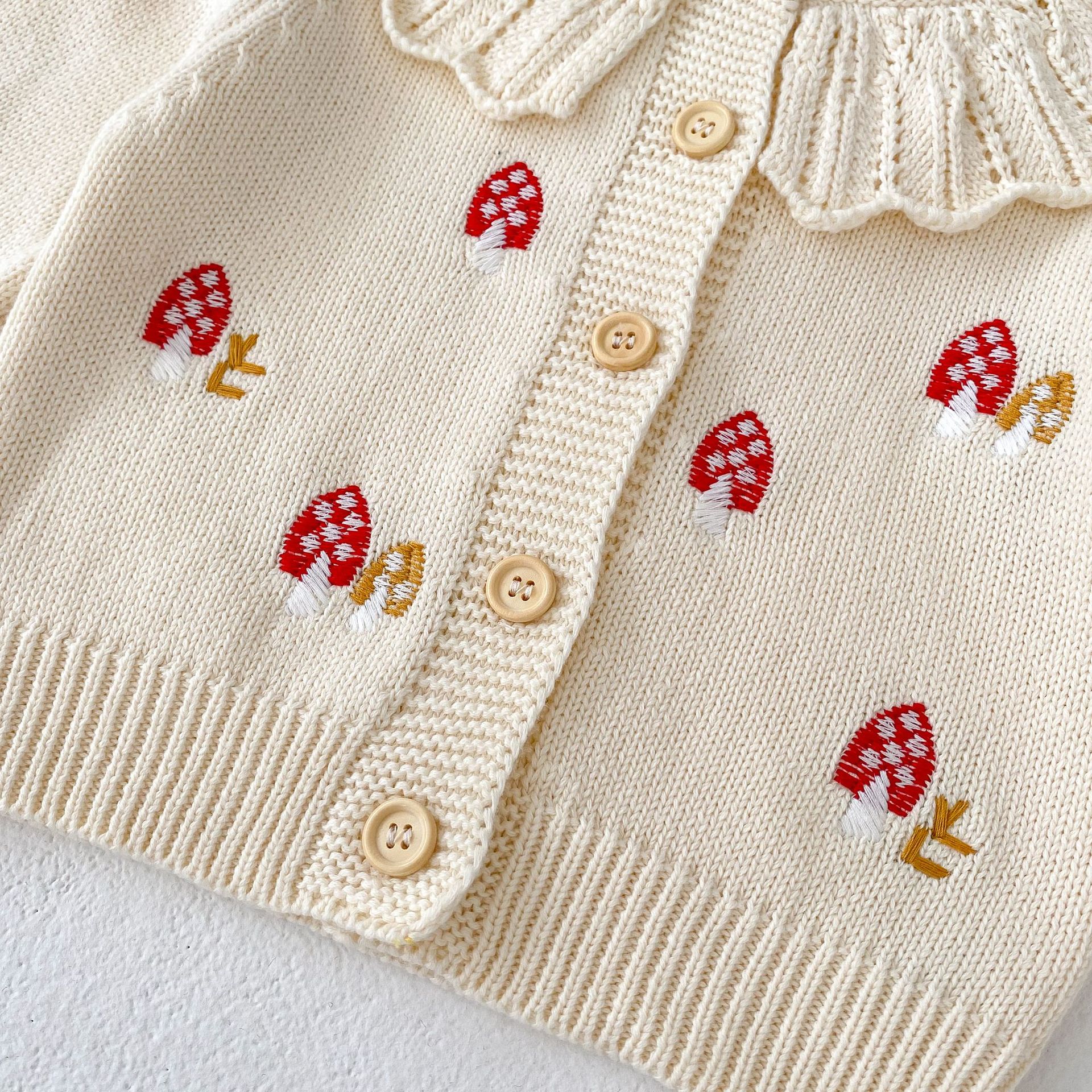 2025 가을 의류 유아 및 어린이 여아 베이비 슈트 자수 연잎 칼라 니트 탑 + 서스펜더 2 피스 슈트스토어 가기