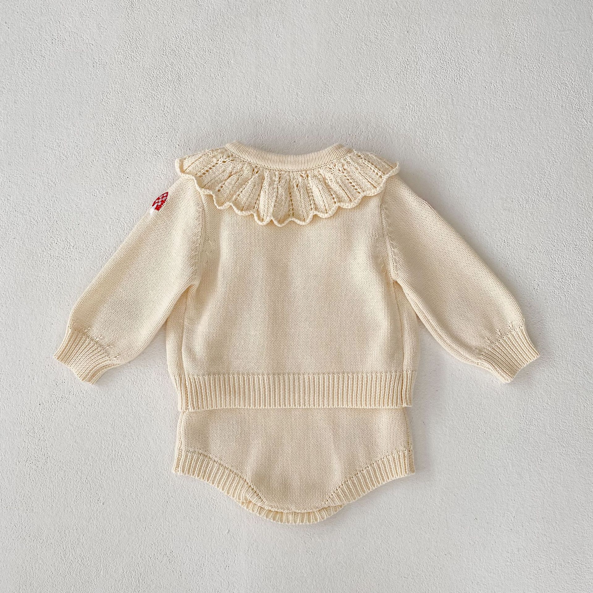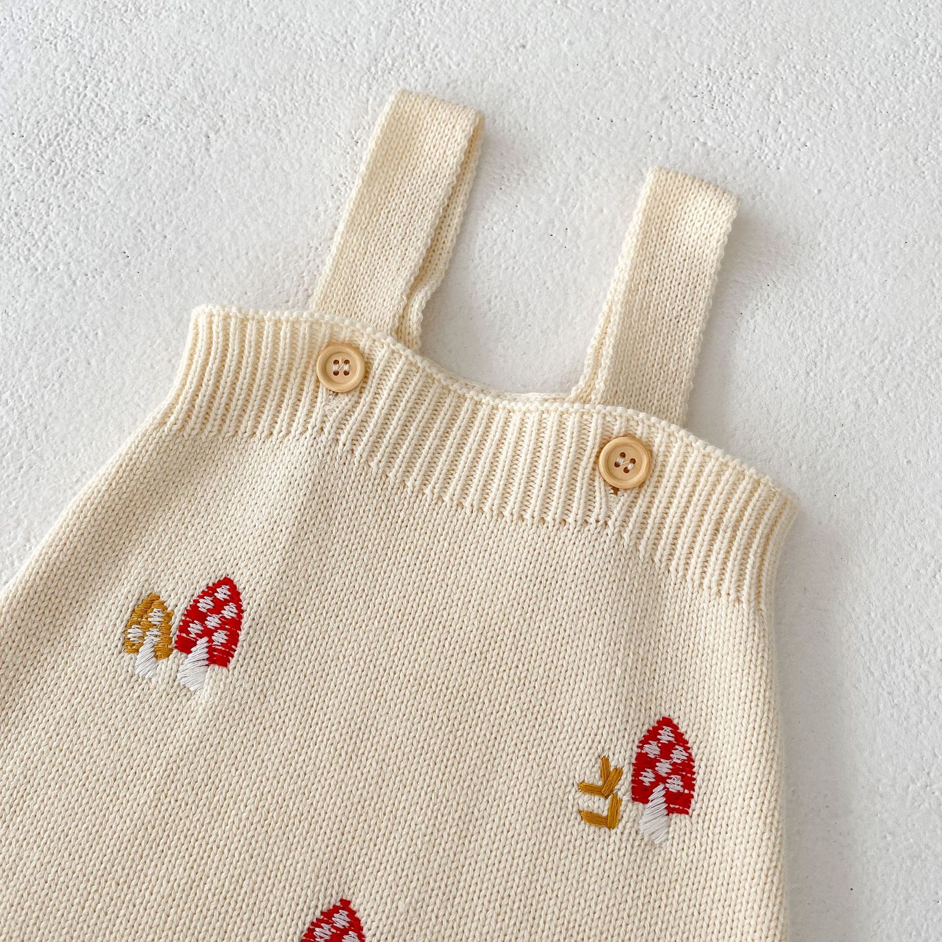 2025 가을 의류 유아 및 어린이 여아 베이비 슈트 자수 연잎 칼라 니트 탑 + 서스펜더 2 피스 슈트