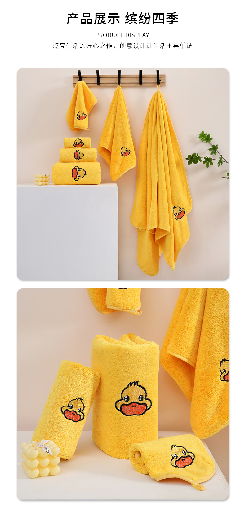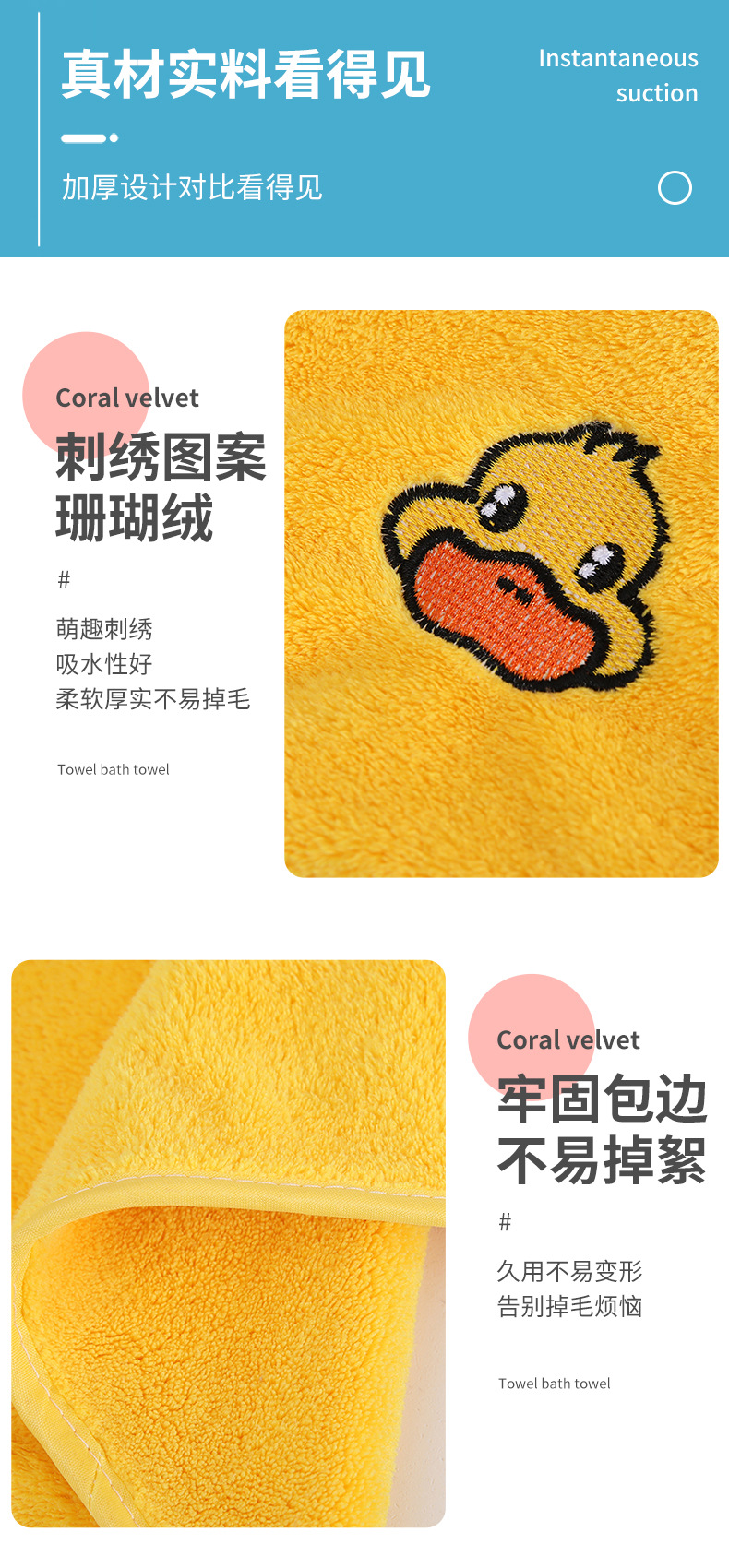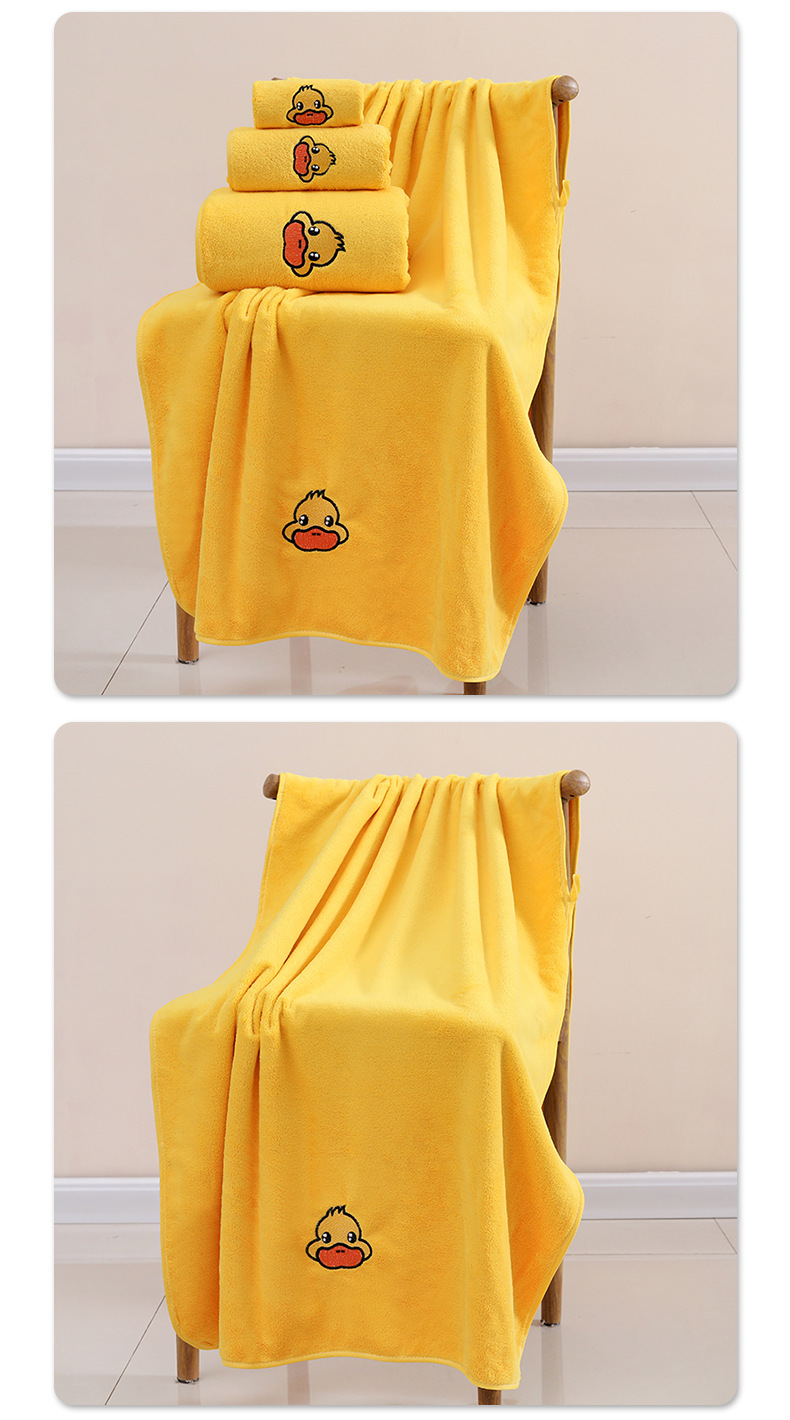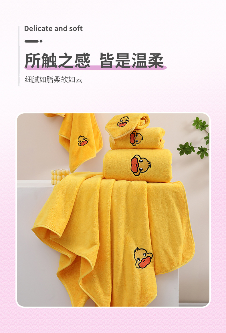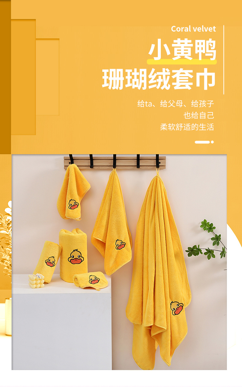 작은 노랑 오리 타월 3 종 세트 신테두리 산호 양털 가정용 흡수성 성인 어린이 만화 페이스 타월 도매스토어 가기