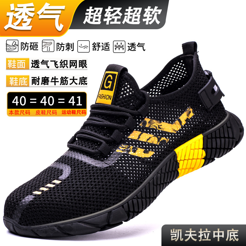 남성용 노동 보호 신발, 파손 방지, 펑크 방지, 플라이 직조, 통기성, 내마모성, 탈취제, 경량 보호 작업 안전 신발, 국경 간 편안함스토어 가기