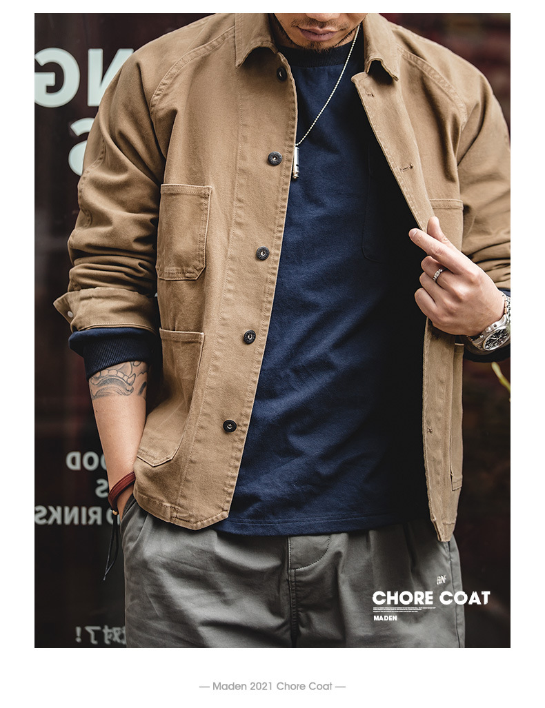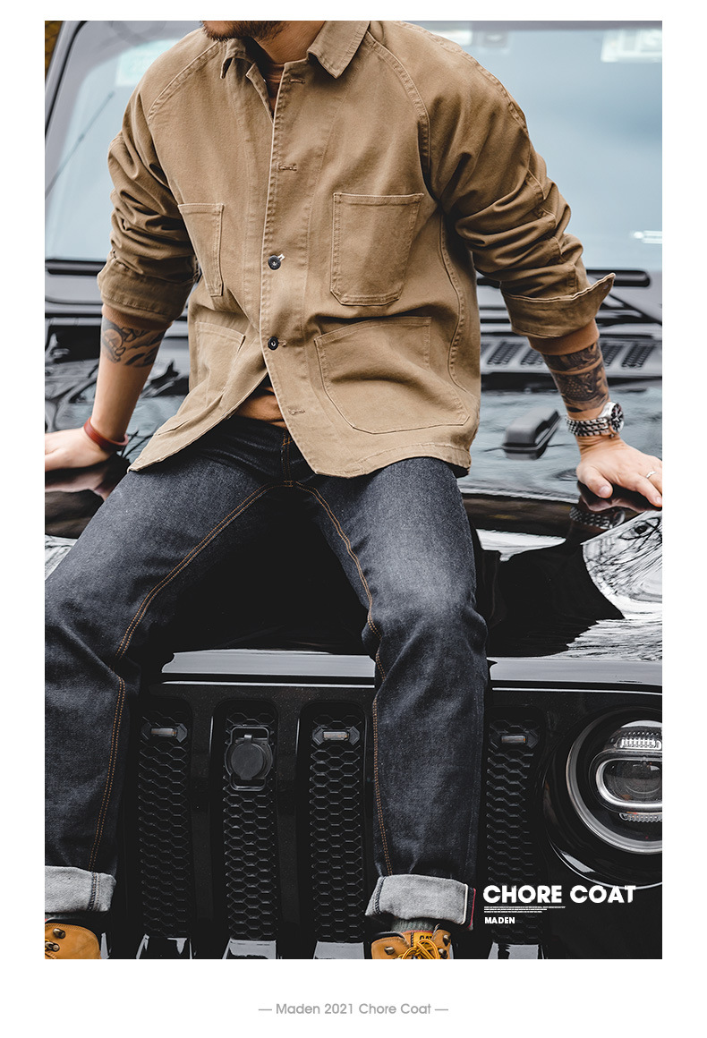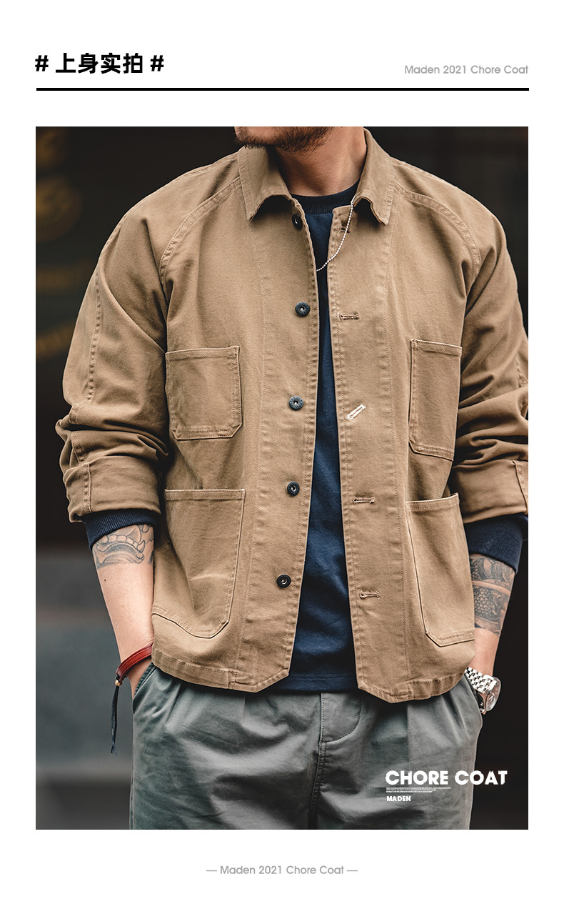 매든 프록 아메리칸 빈티지 파리 버튼 포 포켓 자켓 라펠 아미 카키 빈티지 자켓 남성