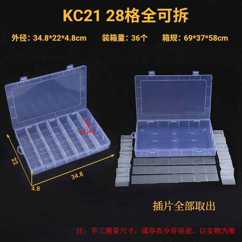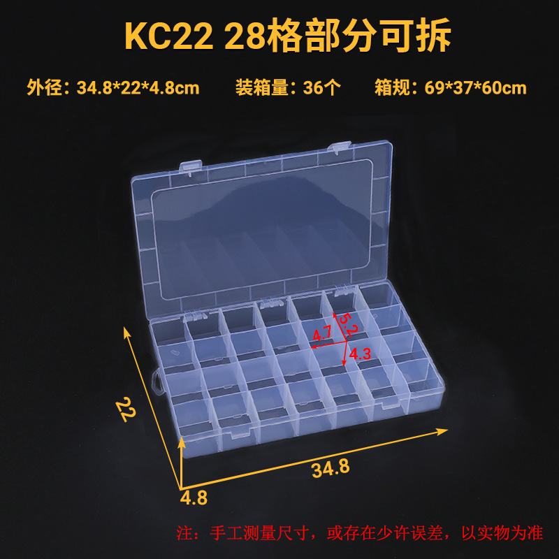 완전 분리 가능한 28 격자 부분 분리 가능한 28 격자 고정 27 격자 투명 플라스틱 상자 반지 귀걸이 예비 부품 저장 상자스토어 가기