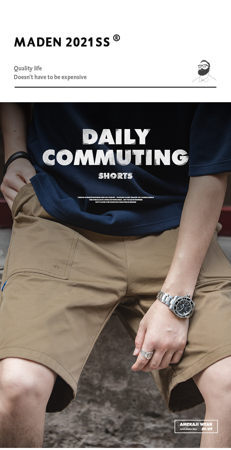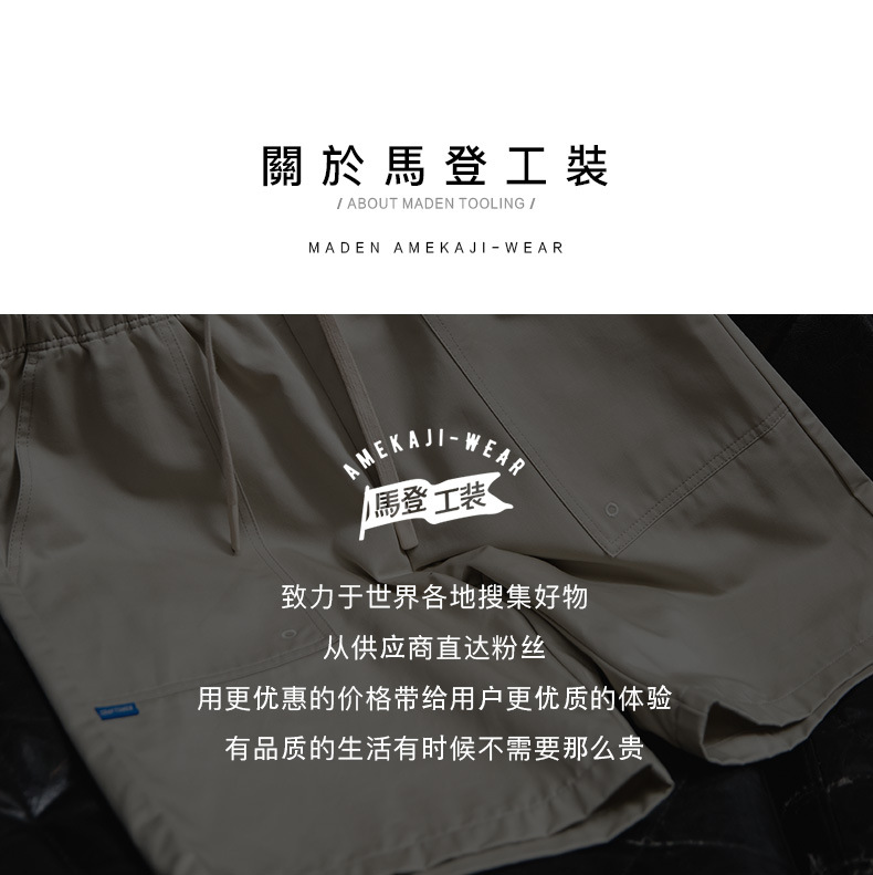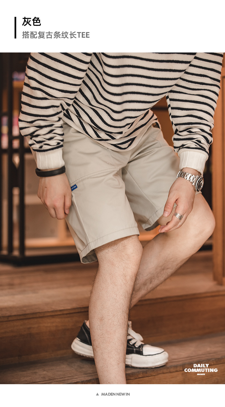Madden Workwear 프렌치 레트로 반바지 신축성 있는 허리 아메리칸 스타일 캐주얼 루즈 스트레이트 비치 바지 남성 여름스토어 가기
