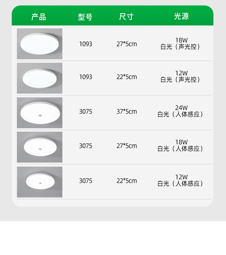 • 3075 백색 인체 유도-27cm-18W 백색 빛