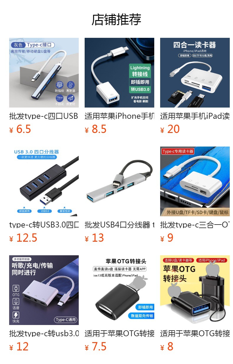 Apple 휴대폰 태블릿 1-4 HUB 허브에 적합한 도매 typec-usb3.0OTG 확장 도크스토어 가기