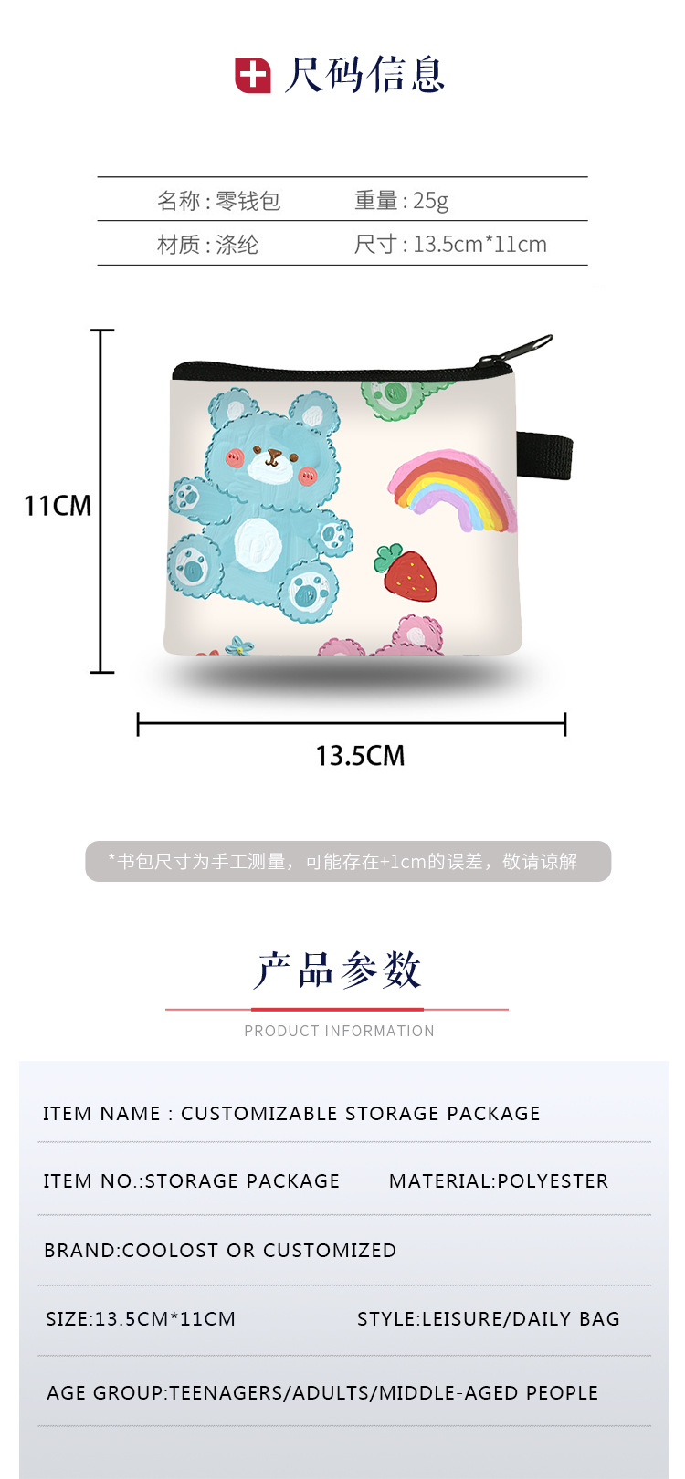 2025년 신상품 크로스보더 레인보우 베어 귀여운 어린이 동전 지갑 초등학생 만화 가방 트렌디 남녀 공용 수납 가방스토어 가기