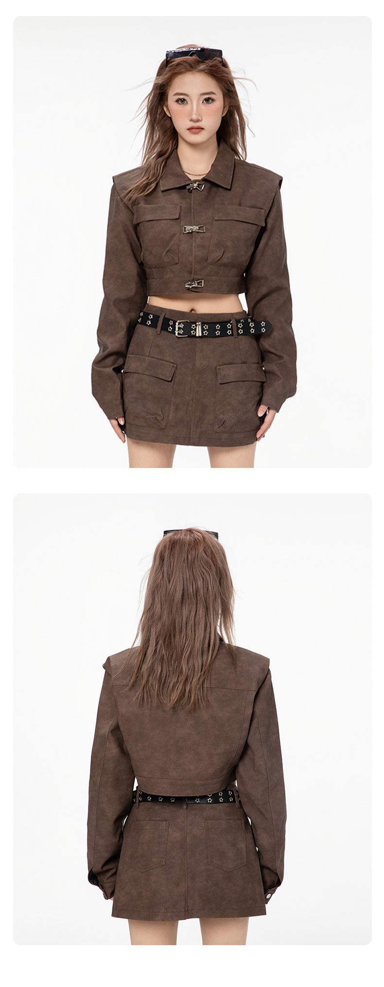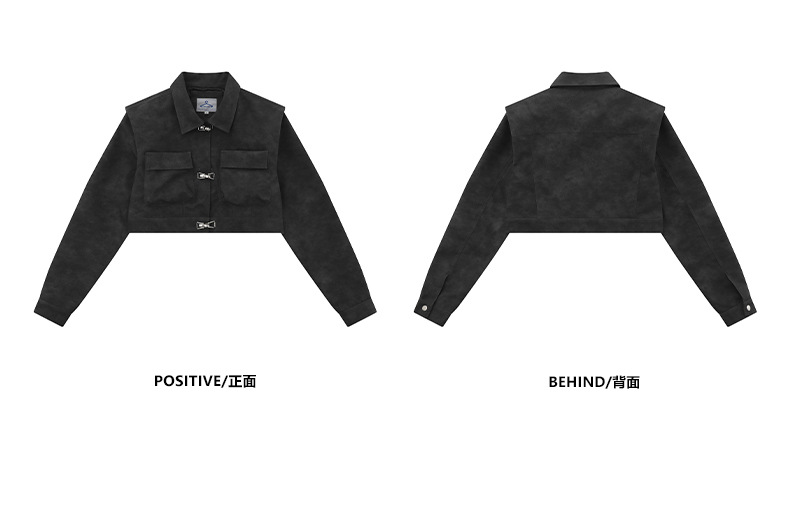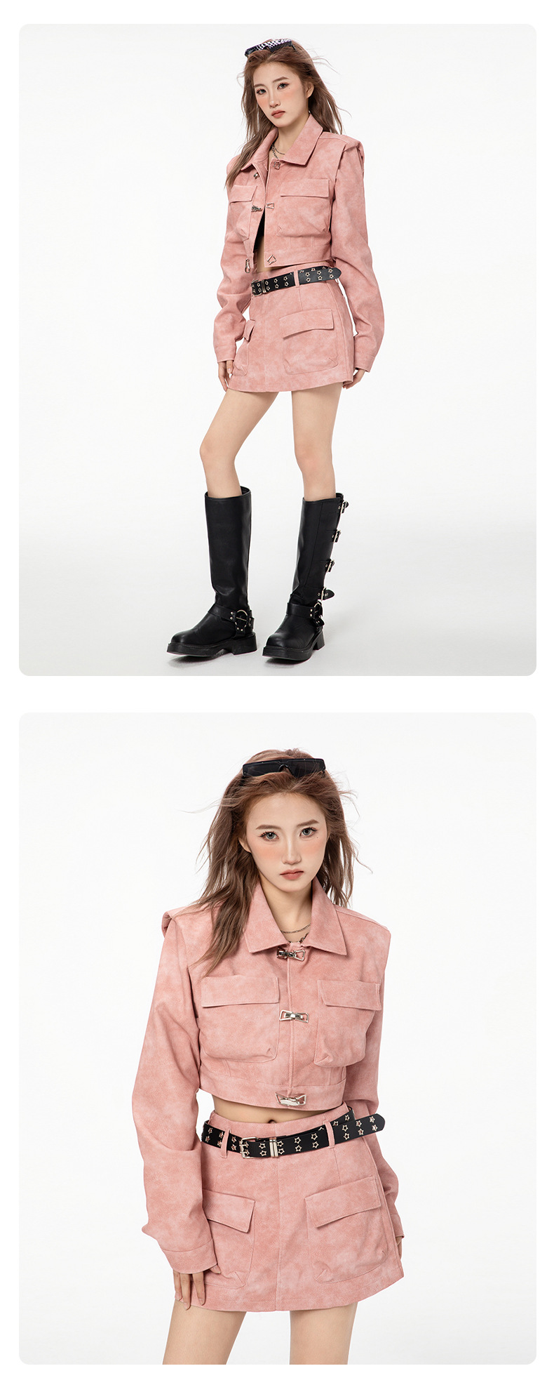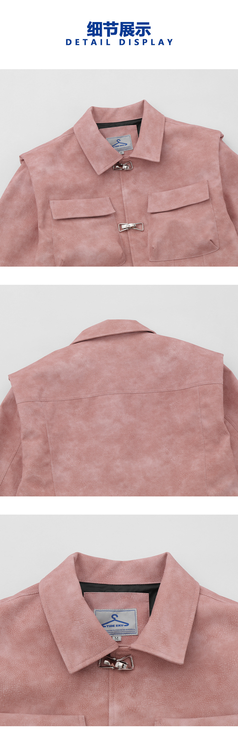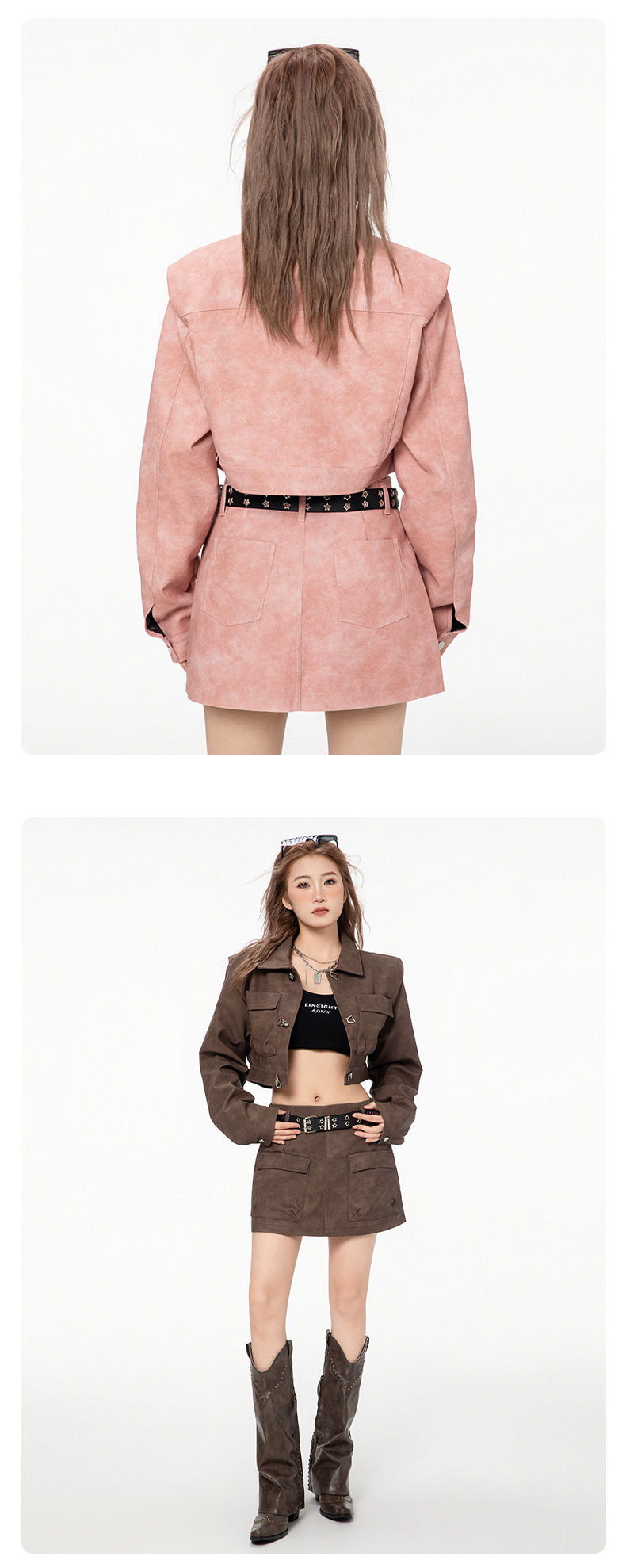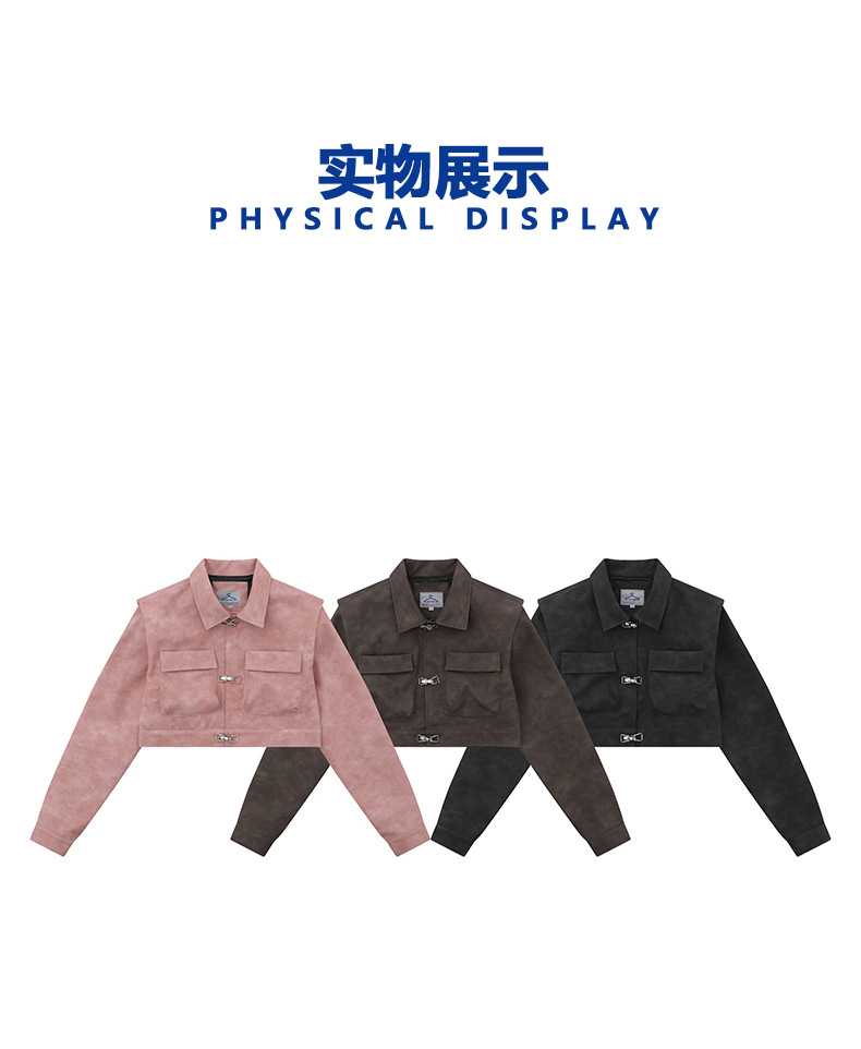 TIDEEEKU 여성복 | 단색 옷깃 가죽 짧은 코트 여성의 새로운 PU 가죽 작업복 패션 겉옷 재킷스토어 가기
