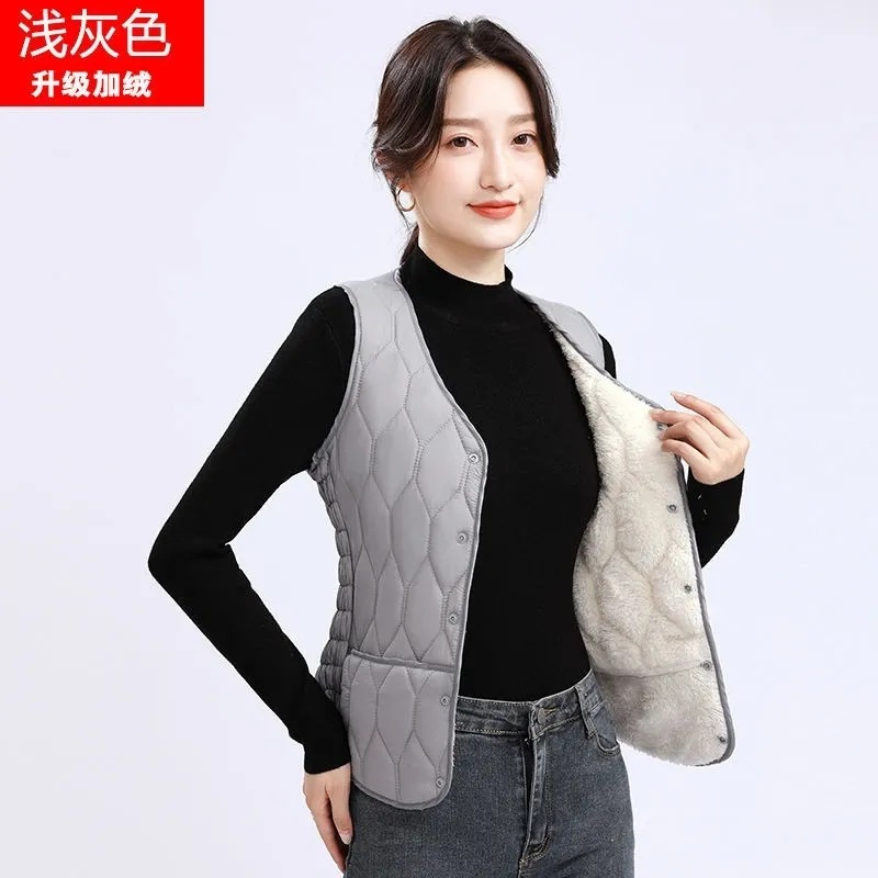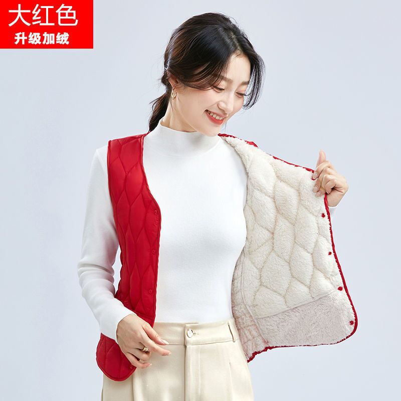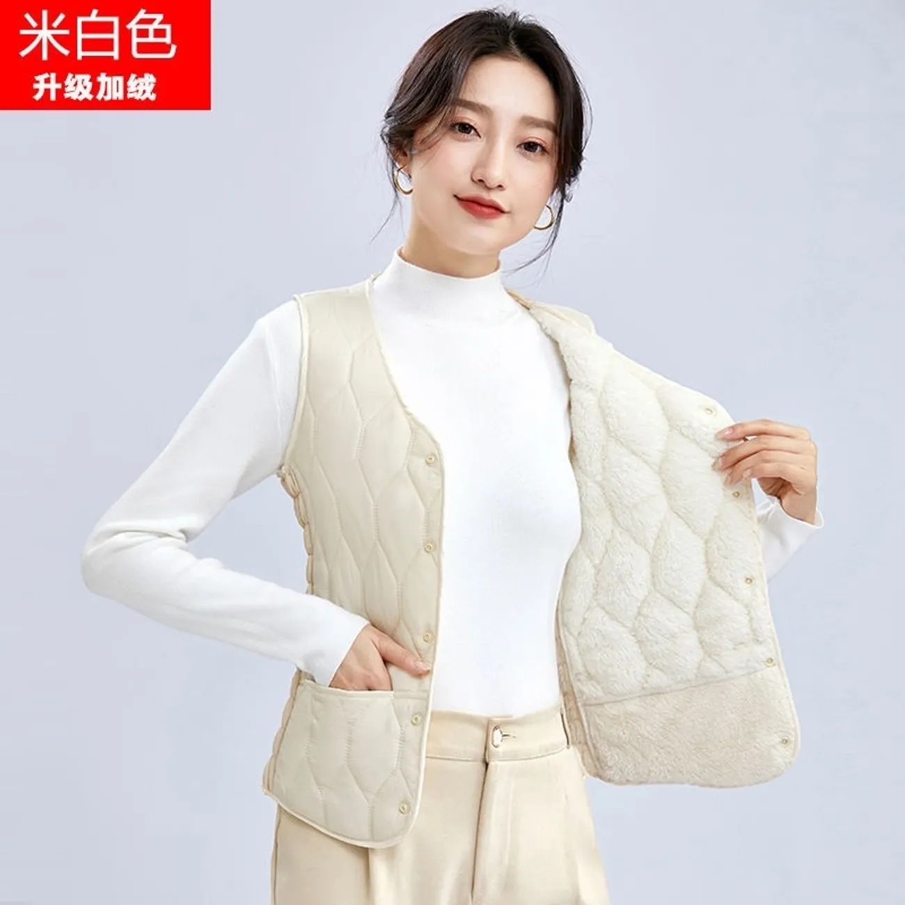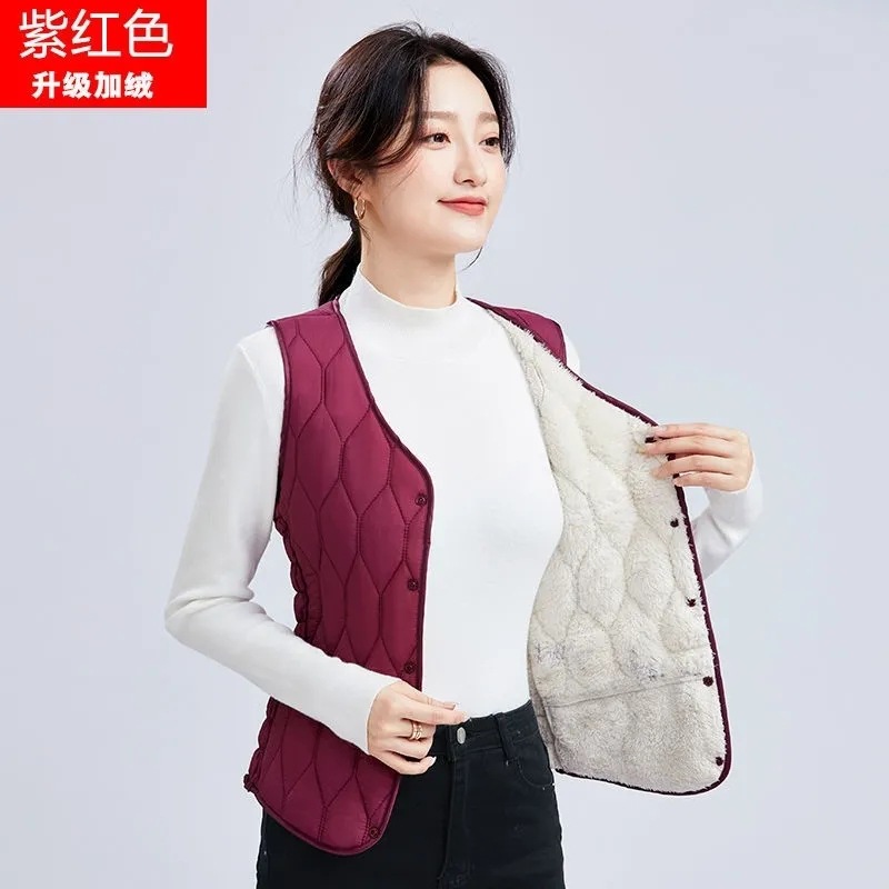 2025년 신상 양털 두꺼운 벨벳 조끼 여성용 가을 겨울 짧은 스타일 슬림핏 조끼 따뜻한 이너웨어 조끼스토어 가기