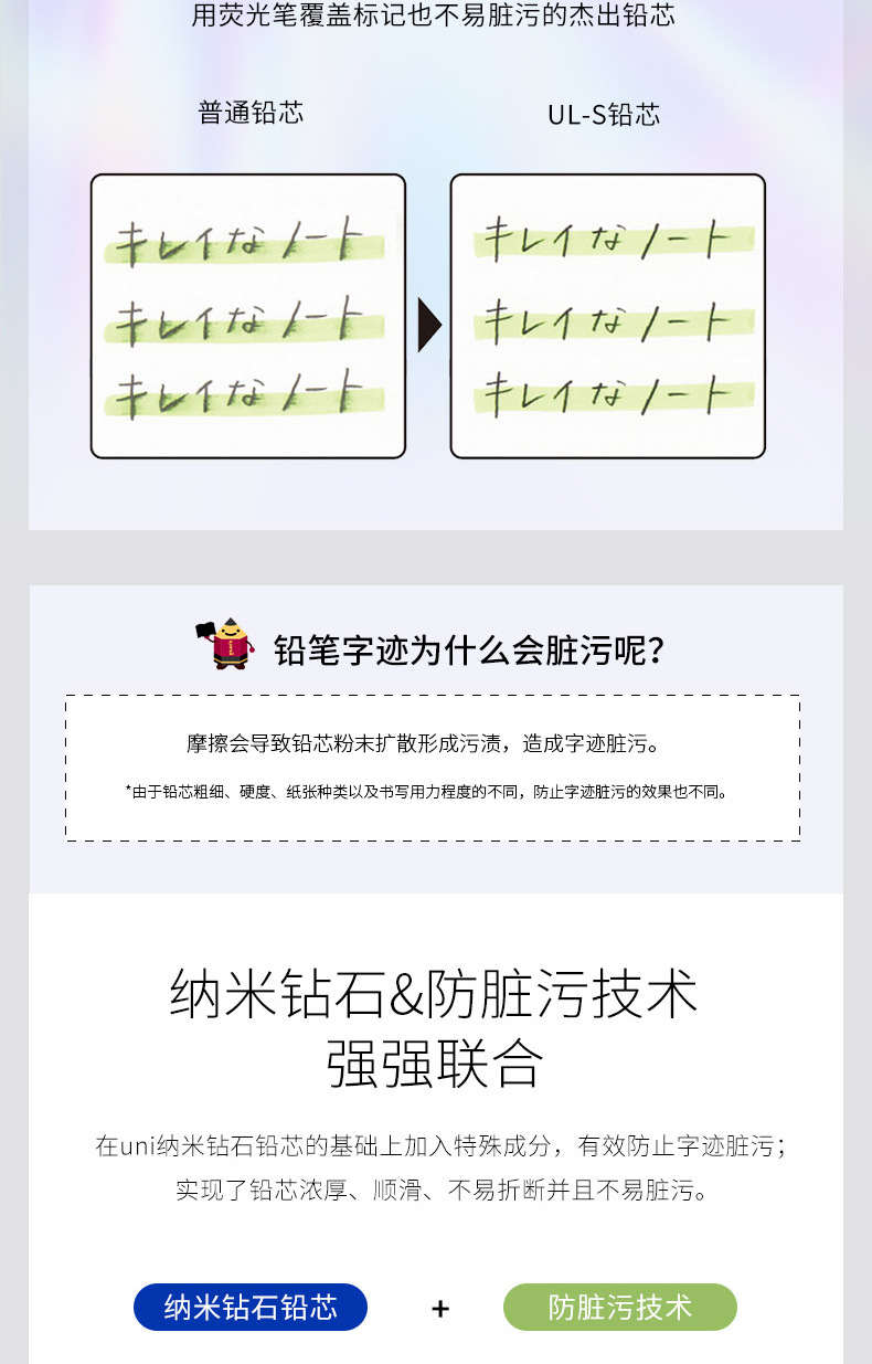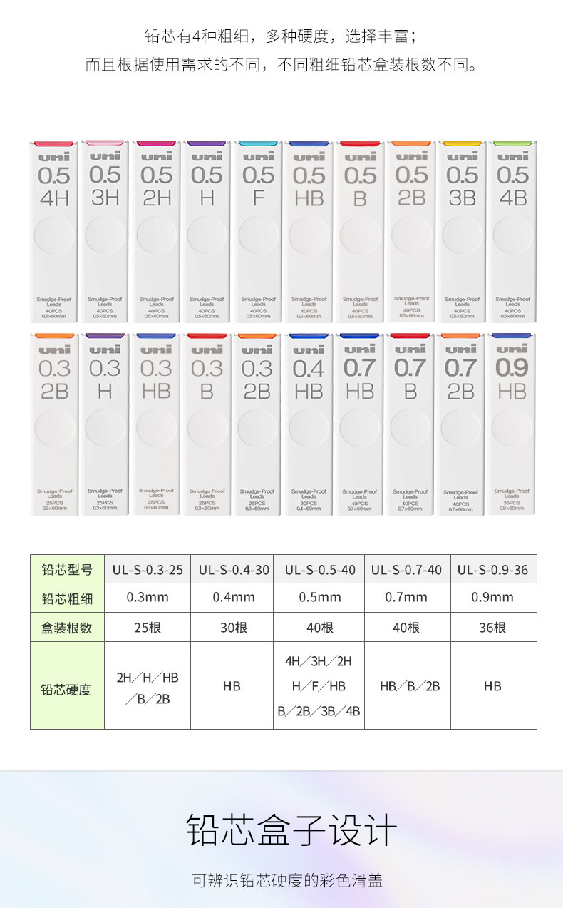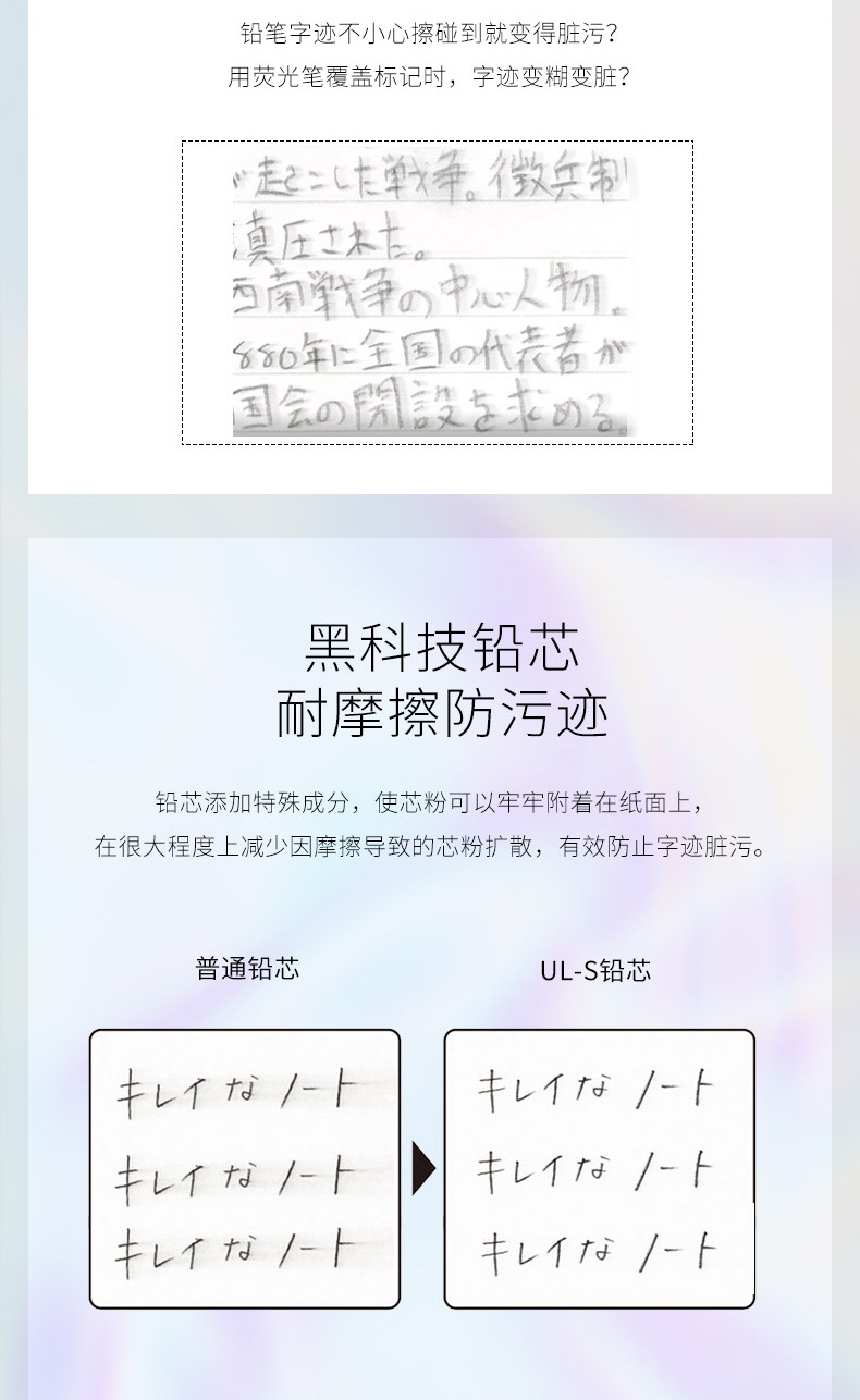 일본 uni Mitsubishi UL-S 안티 문질러 더러운 리드 코어 스머지 증거 두꺼운 검은 색 안티-더러운 안티-더러운 자동 리드
