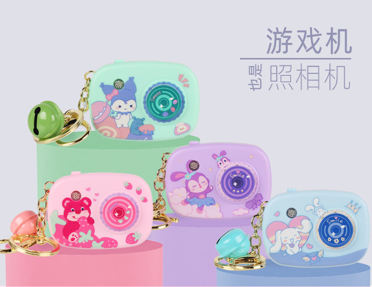 새로운 창조적 인 발광 카메라 게임기 미니 전자 게임기 귀여운 만화 열쇠 고리 펜던트 선물
